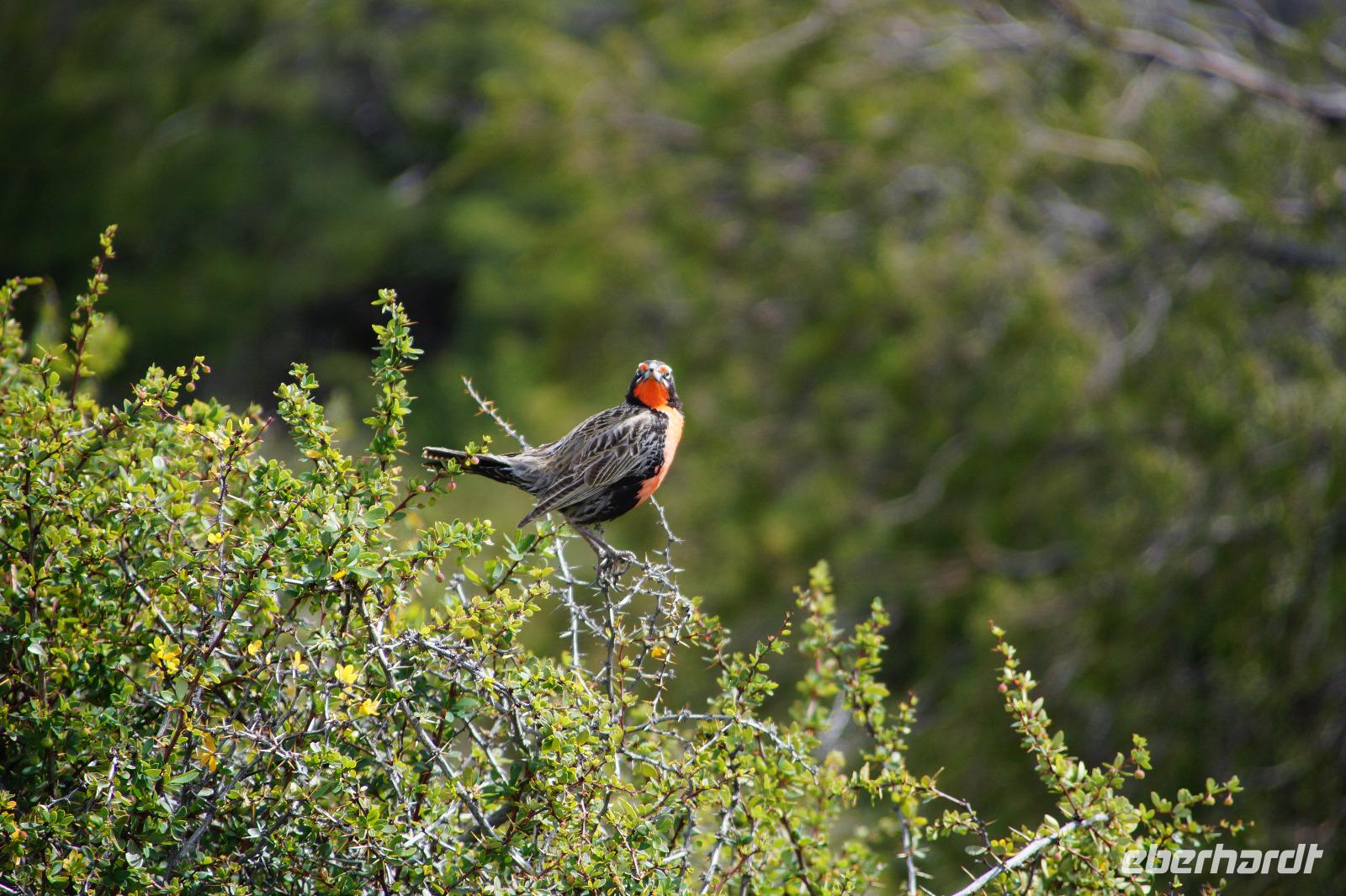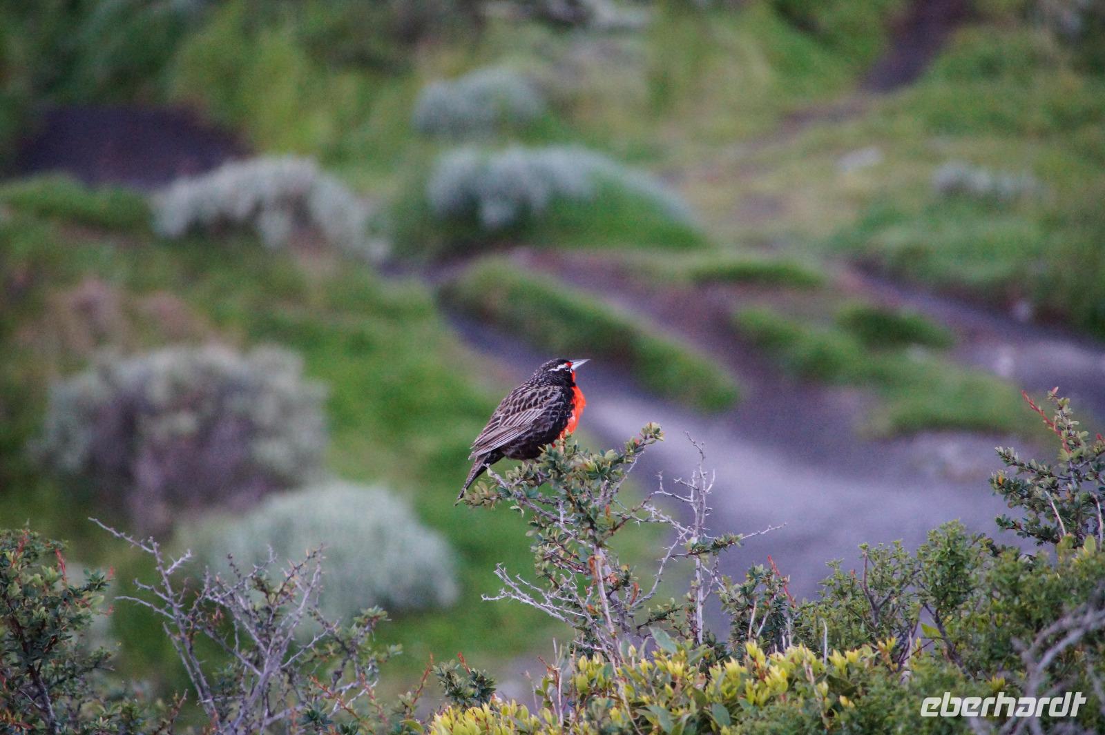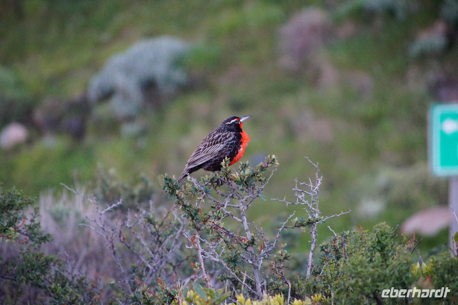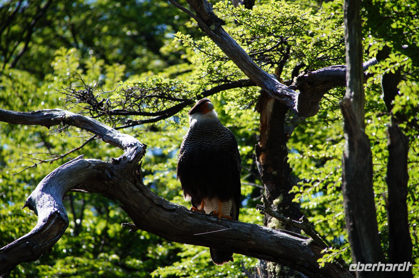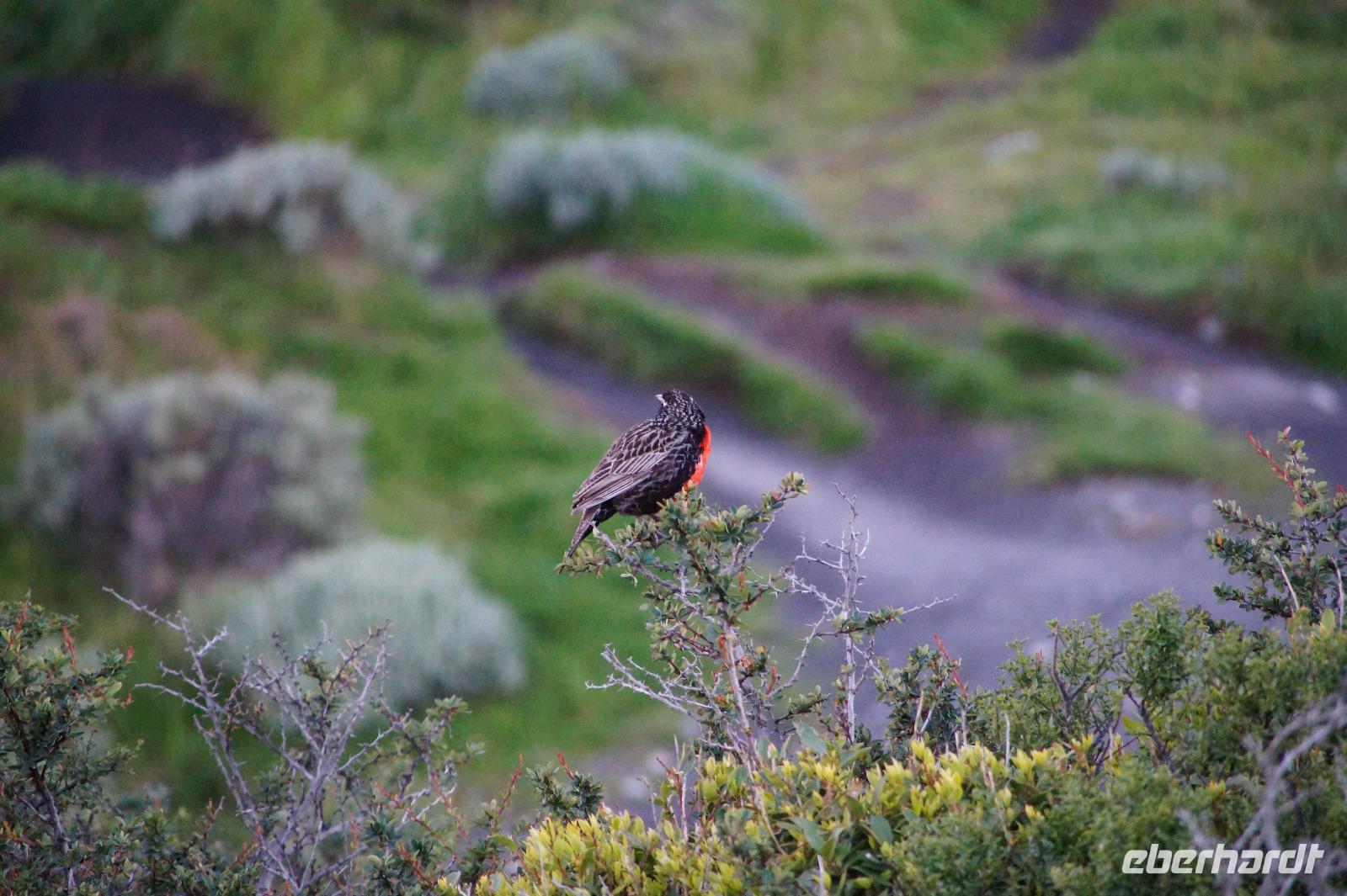 Vom Postamt am Ende der Bahnlinie aus starteten wir unsere Wanderung in Richtung der Lapataia-Bucht, einer Seitenbucht des Beagle Canals. Hier begegneten wir wieder unserem Specht, den wir schon auf unserer zweiten Wanderung gesehen hatten, ich persönlich habe zwei Männchen und ein Weibchen gesehen, Eli meinte, es handele sich um zwei Pärchen, die Männchen mit ihren scharlachroten Köpfen und die Weibchen mit ihren schwarzen Köpfen.