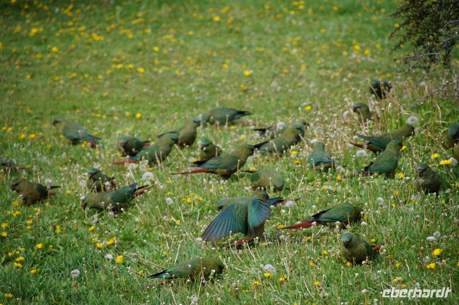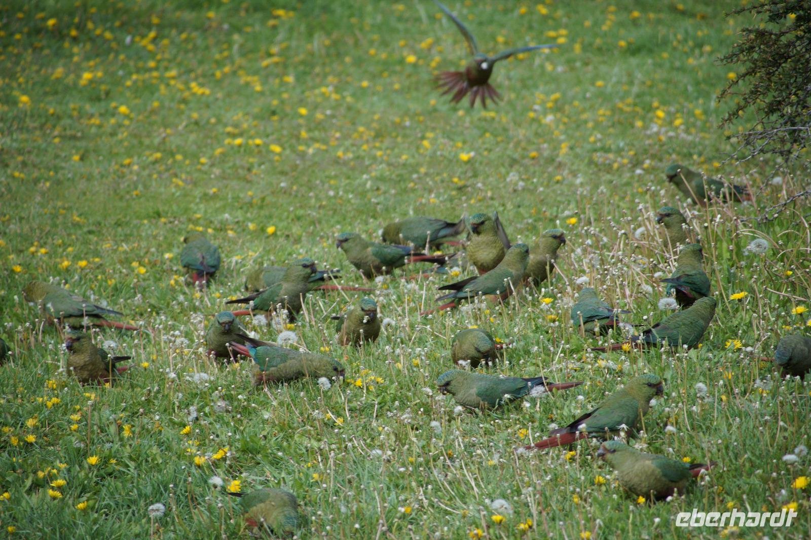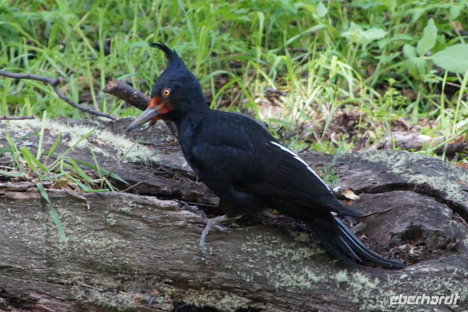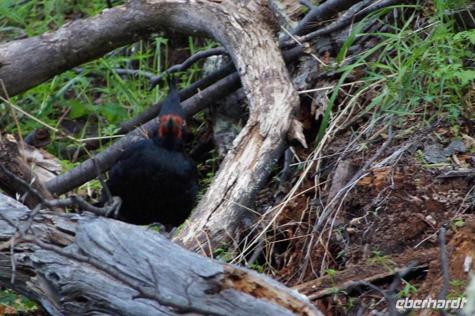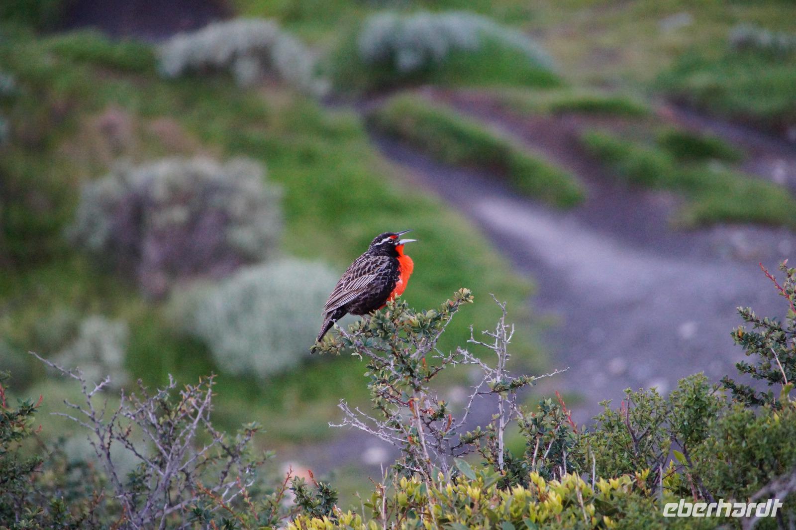 Vom Postamt am Ende der Bahnlinie aus starteten wir unsere Wanderung in Richtung der Lapataia-Bucht, einer Seitenbucht des Beagle Canals. Hier begegneten wir wieder unserem Specht, den wir schon auf unserer zweiten Wanderung gesehen hatten, ich persönlich habe zwei Männchen und ein Weibchen gesehen, Eli meinte, es handele sich um zwei Pärchen, die Männchen mit ihren scharlachroten Köpfen und die Weibchen mit ihren schwarzen Köpfen.