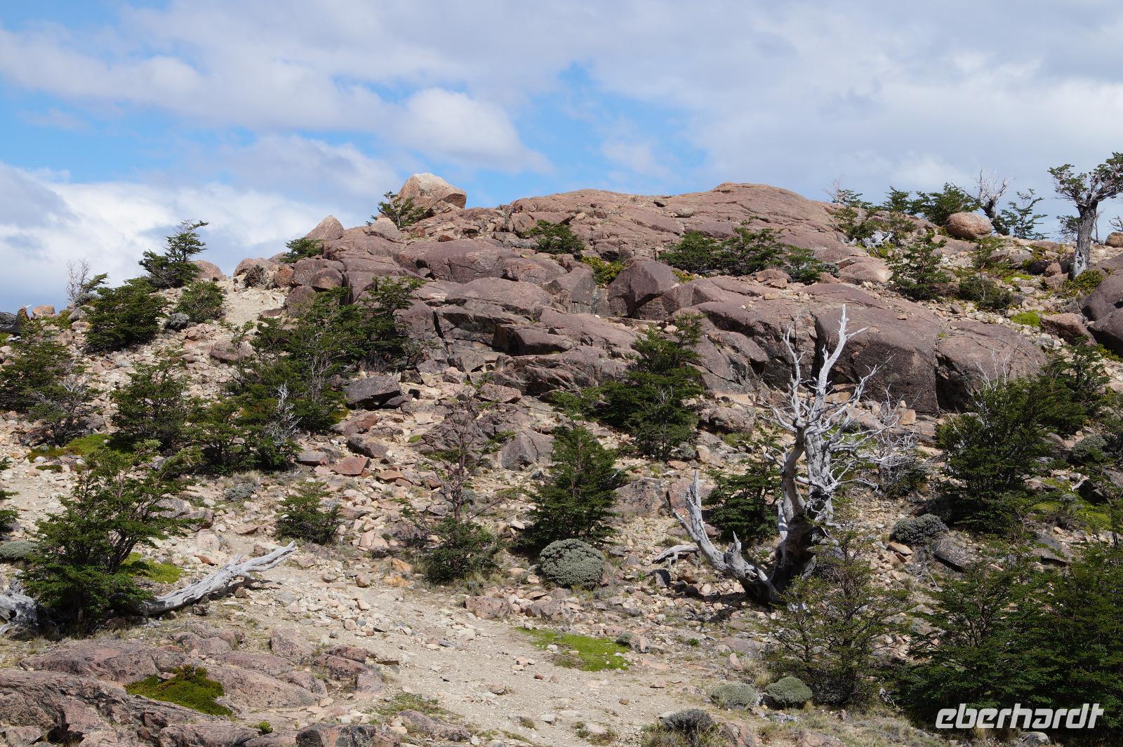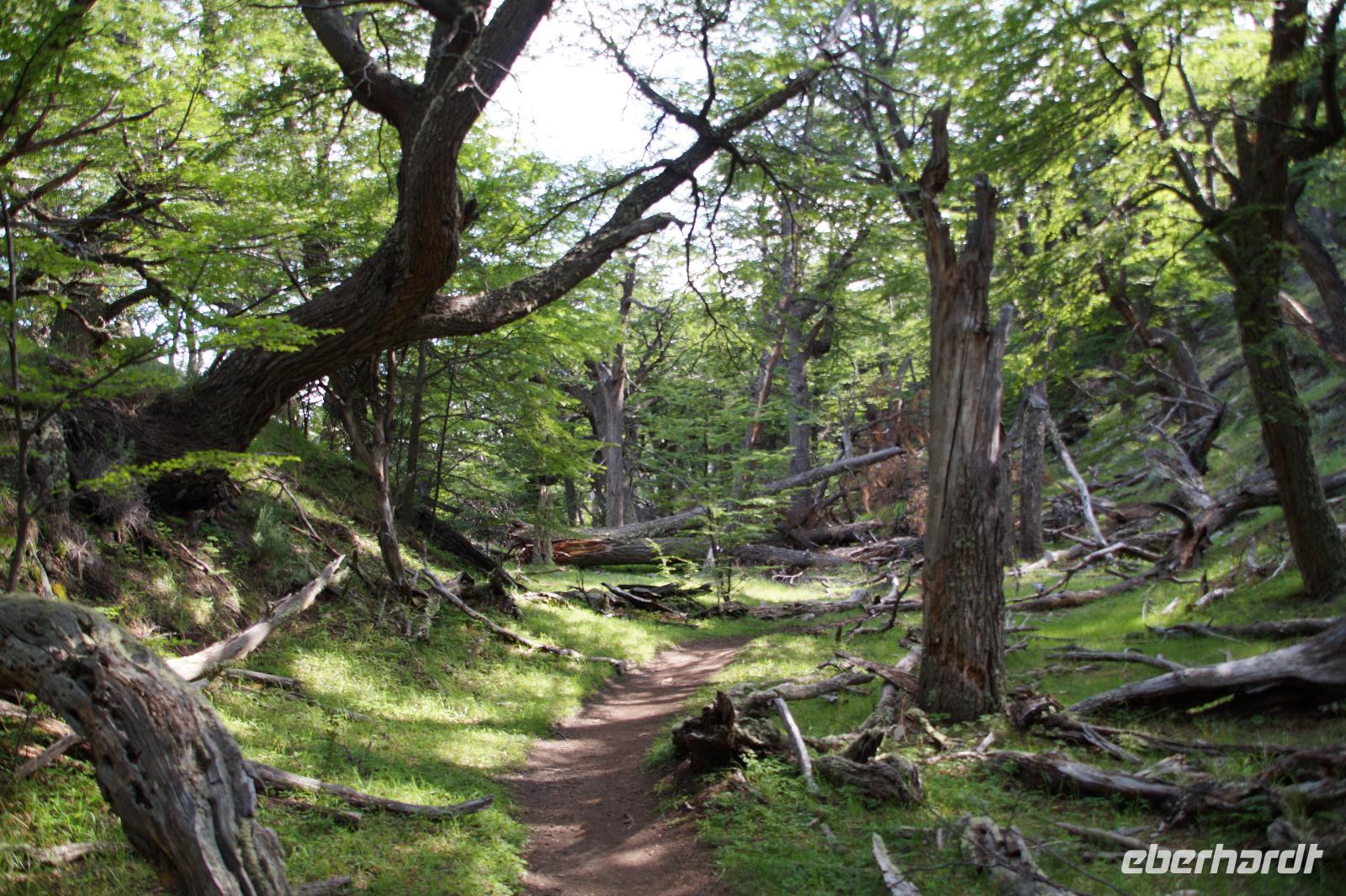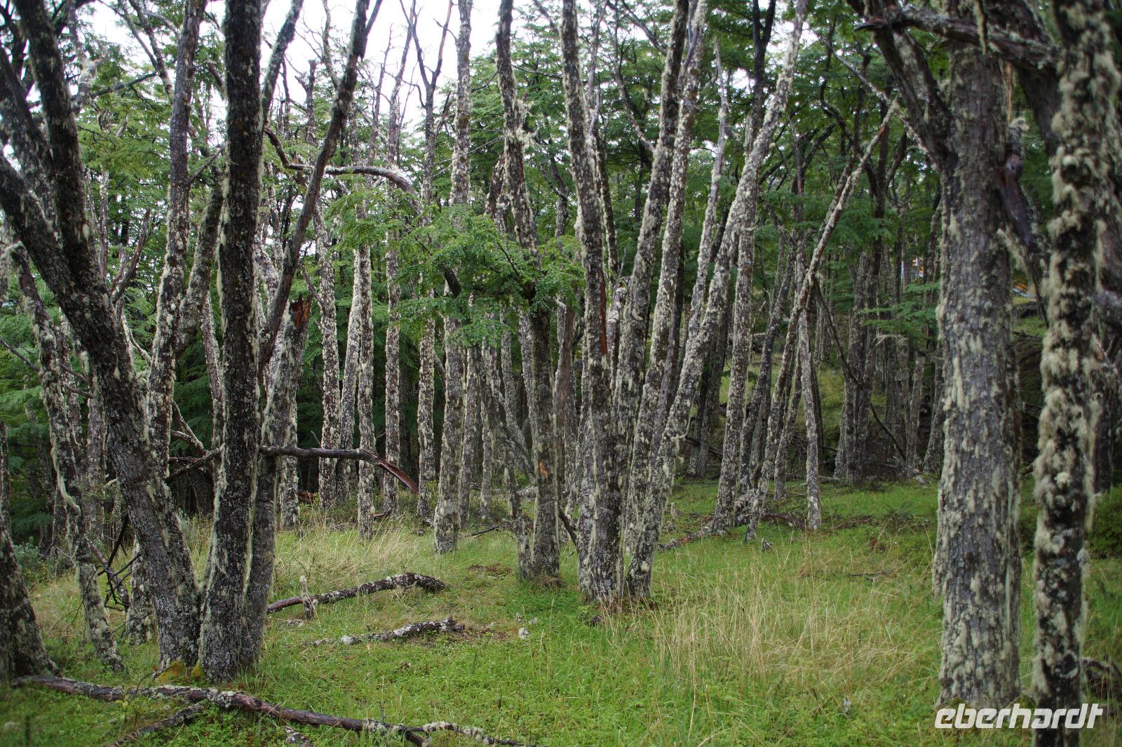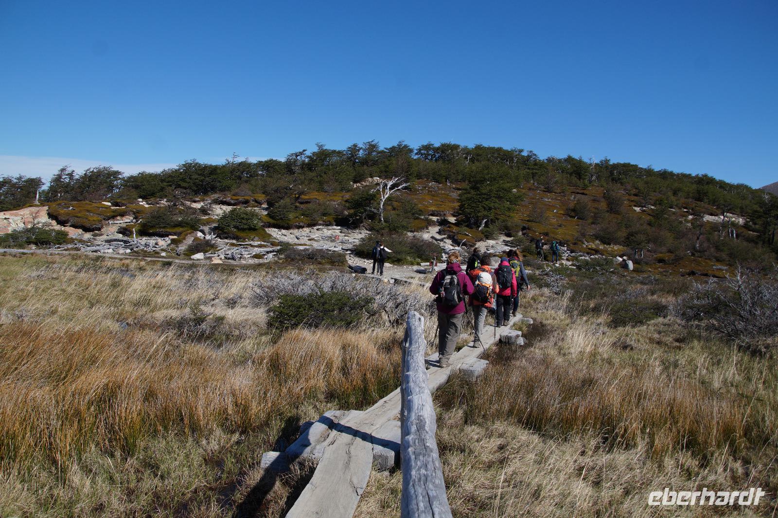 Drei End- oder Seitenmoränen waren zu überqueren, dazwischen Wälder aus Nothofagen (Süd- bzw. Scheinbuchen), Lenga und Ñirre.