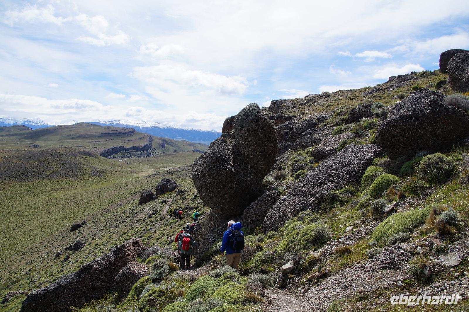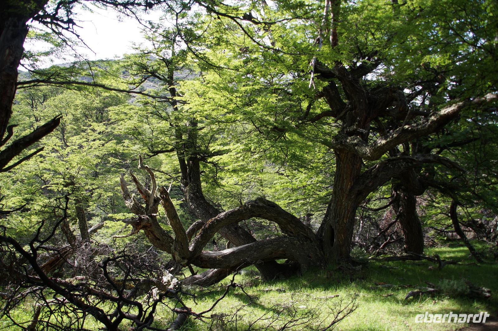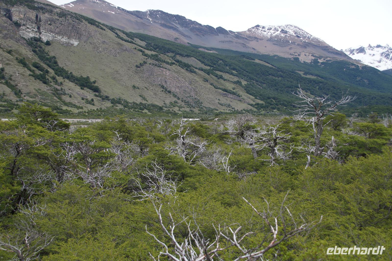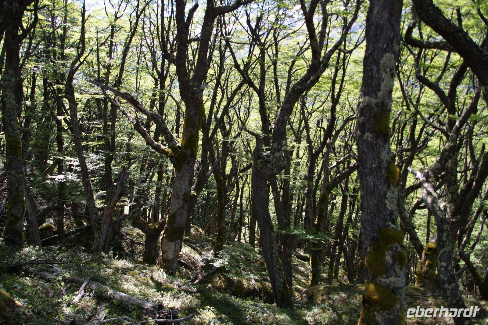 Drei End- oder Seitenmoränen waren zu überqueren, dazwischen Wälder aus Nothofagen (Süd- bzw. Scheinbuchen), Lenga und Ñirre.