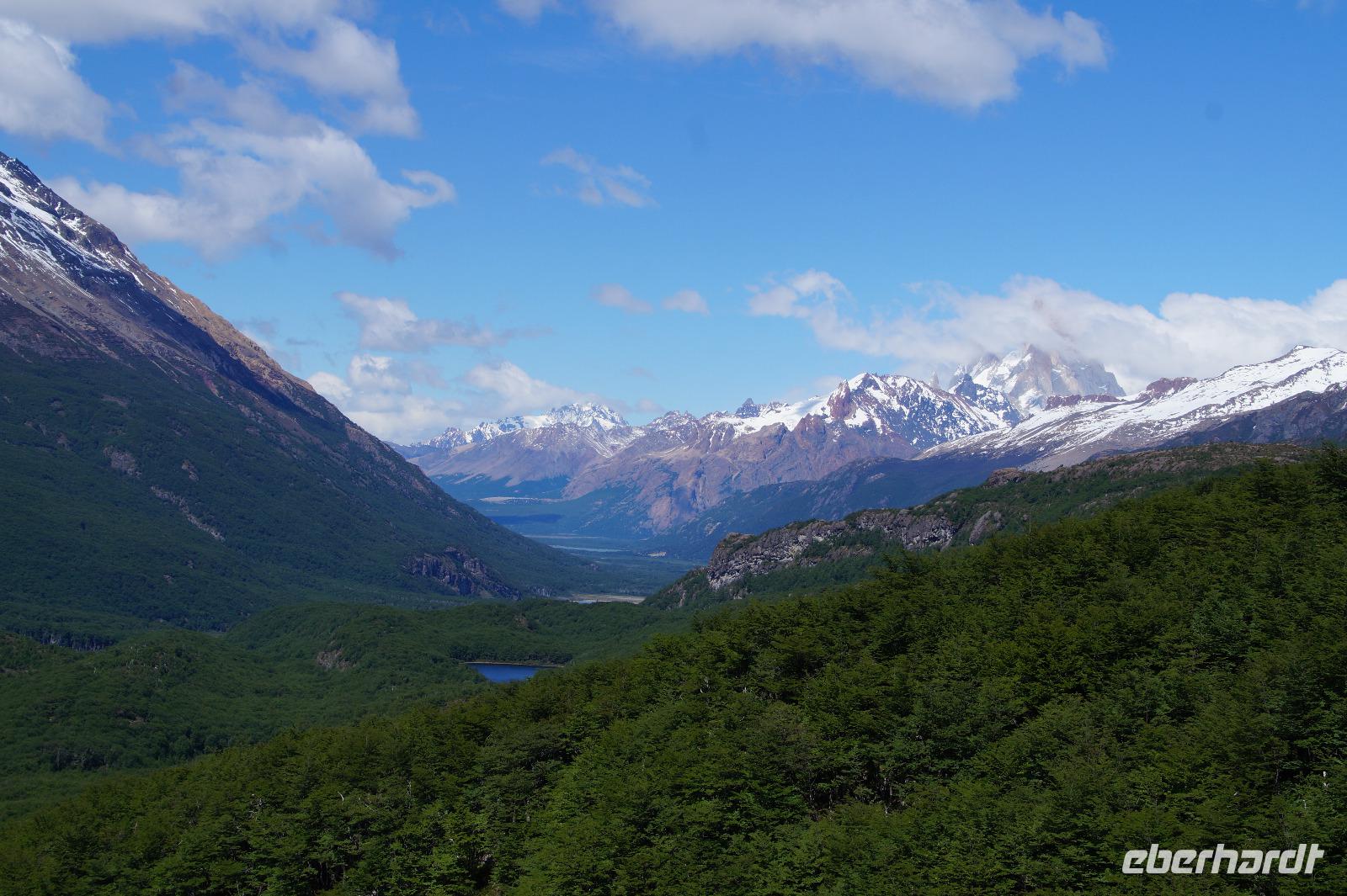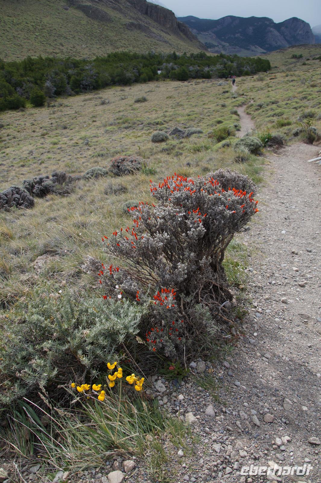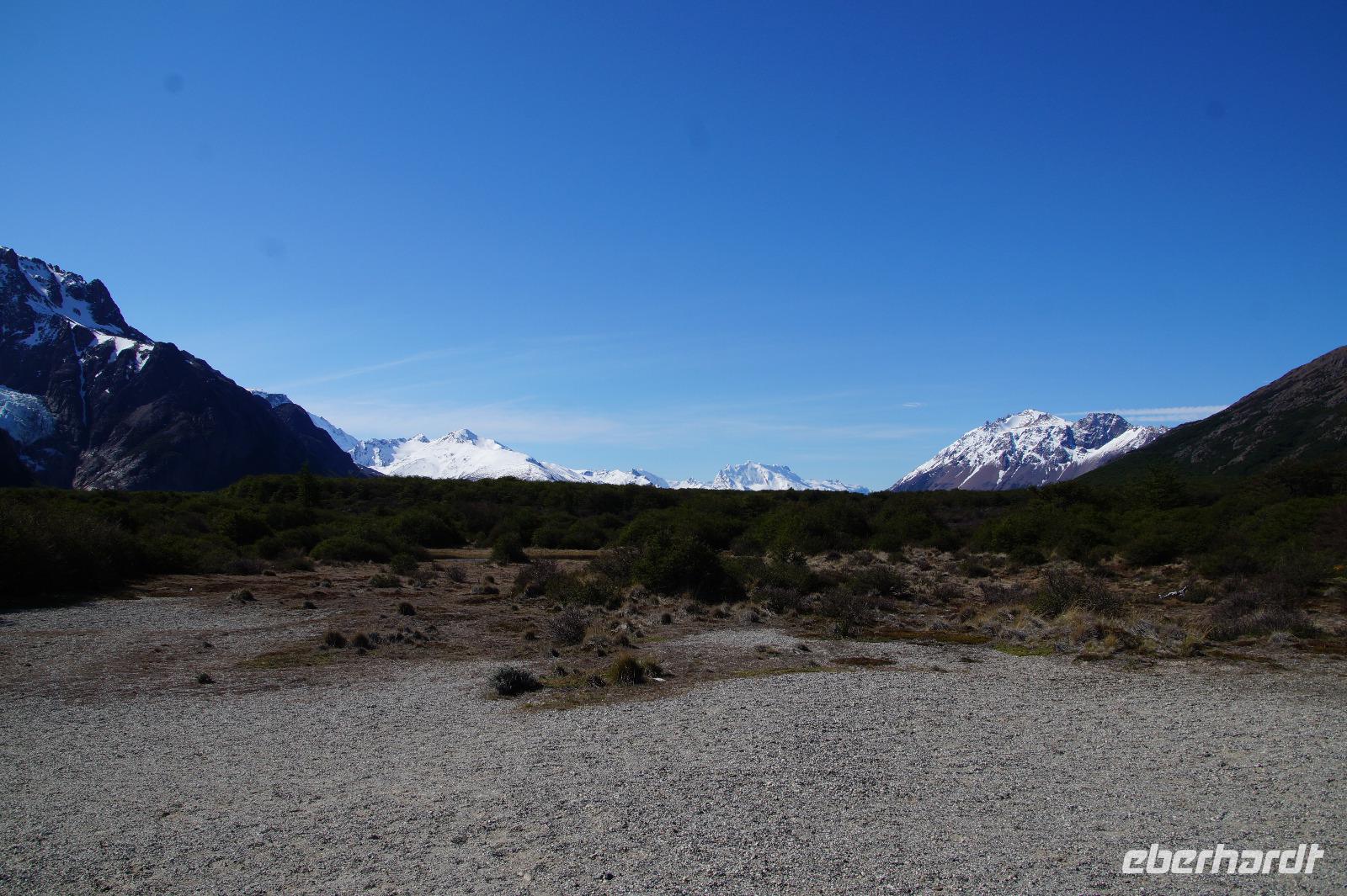 Schließlich erreichten wir wieder das Basislager Poincenot und gingen nun über Heide und Moore zurück nach El Chaltén, vorbei am Caprisee auf 778 m NN, bis wir schließlich das auf 400 m NN liegende Dorf erreichten.