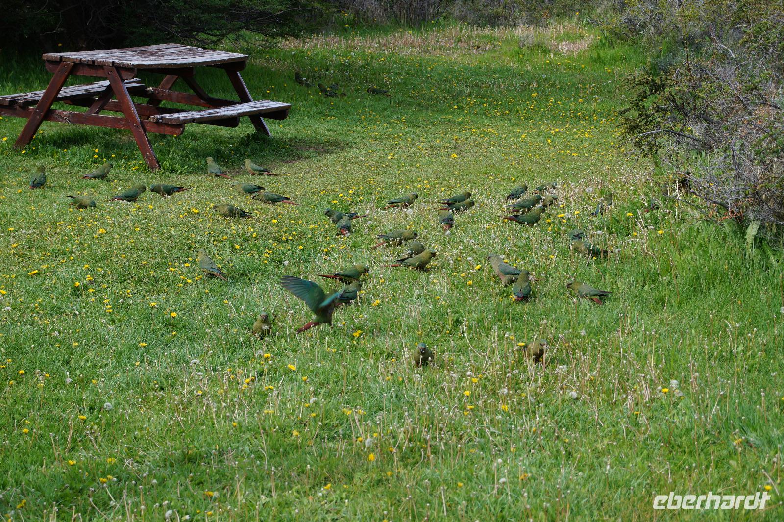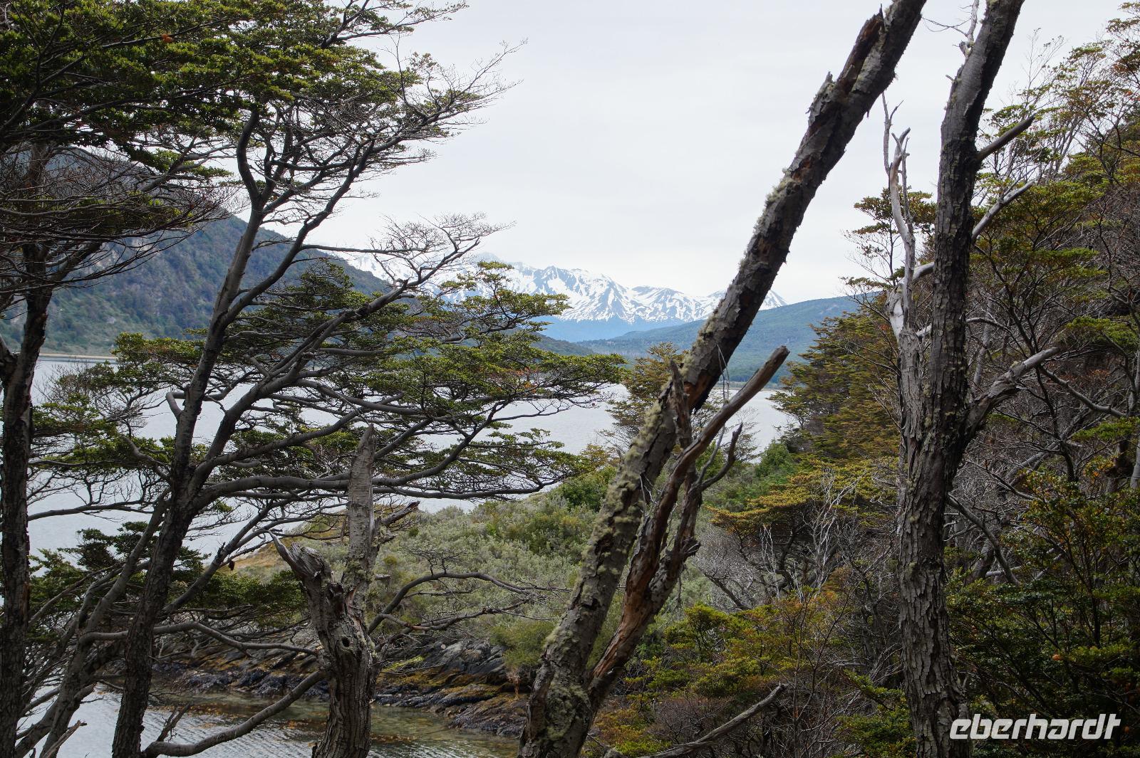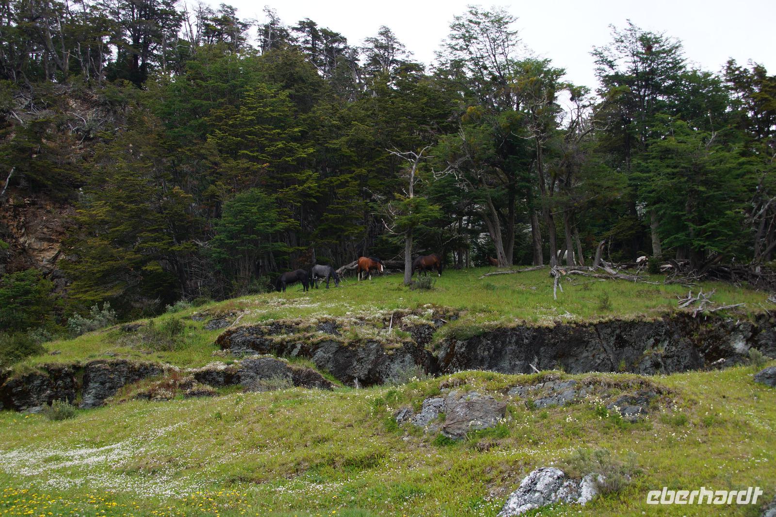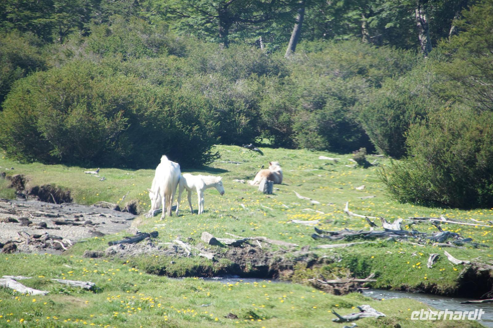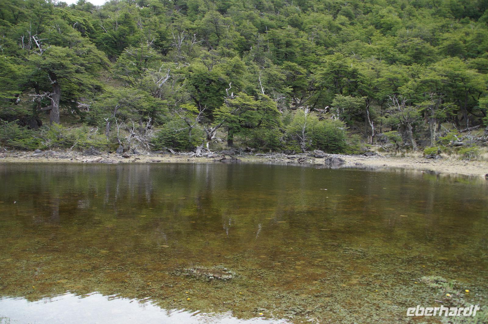 Richtung Süden wurde die Steppe allmählich wieder von Nothofagen-Wäldern (Lenga, Ñirre und Coihue) abgelöst und wer genau hinschaute, sah auch die ersten Biberdämme. Schön, möchte man denken, Biber. Aber weit gefehlt: Einen feuerländischen Biber gibt es nicht, die Baumnager sind 1946 aus Kanada hier eingeführt worden, um die Pelzindustrie anzukurbeln. Und wie so oft, wenn man ein fremdes Tier in ein neues Ökosystem einführt, kann das neue Ökosystem mit dem Tier nichts anfangen. Der Damm- und Burgenbauer legte ganze Nothofagenwälder um und wurde kaum bejagt, denn aufgrund der anderen Ernährung wurden die Tiere zwar viel größer als ihre in Kanada zurückgebliebenen Artgenossen, aber ihr Fell auch lang und stränig, überhaupt nicht das, was die Pelzindustrie suchte. Die Abschussprämien für die Biber, die ganzjährig bejagt werden dürfen, lohnen kaum der Mühe und so erleidet der feuerländische Biber keinerlei Bejagungsdruck durch Menschen oder Fressfeinde. Pumas gibt es auf Feuerland nicht (mehr).