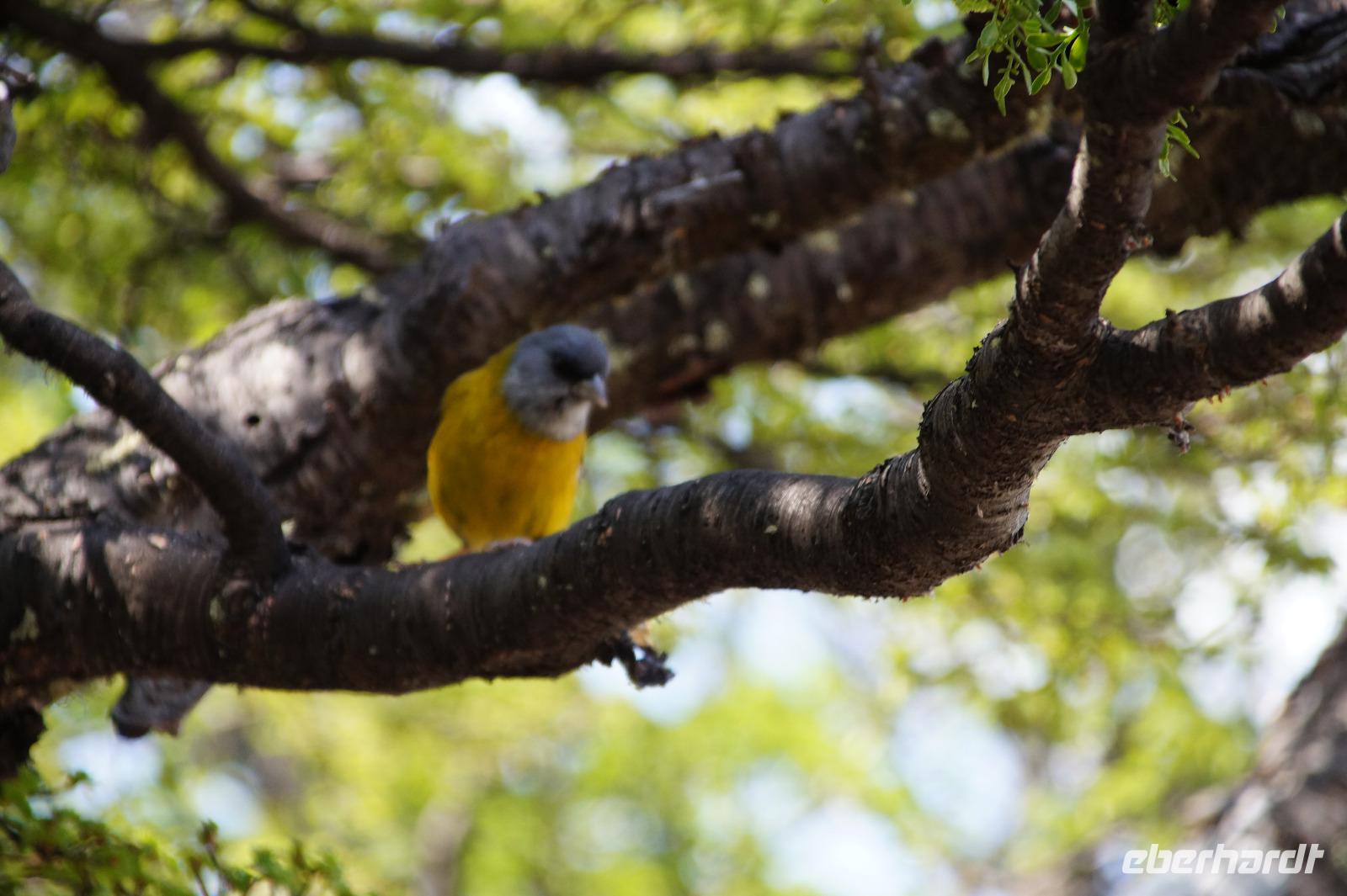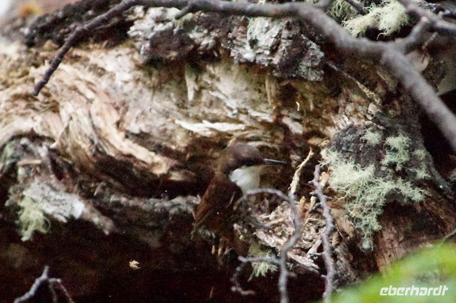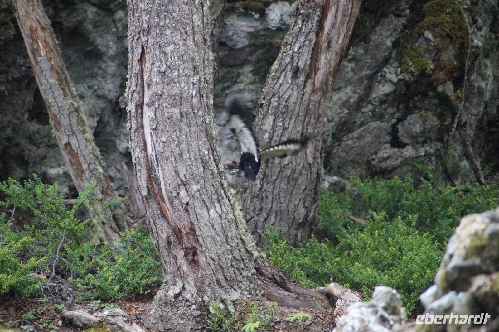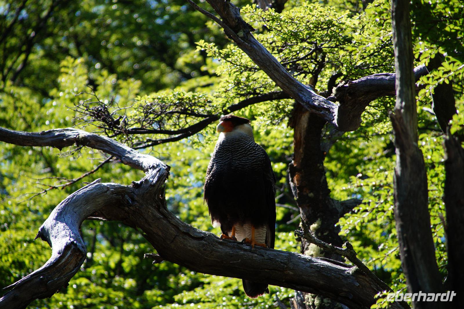 Entlang des Río de la Vueltas fuhren wir zur Hostería del Pilar, wo unsere erste richtige Wanderung (auf 450 m NN) startete. Entlang des Río Blanco, den wir aber nur zu Anfang zu Gesicht bekamen, wanderten wir, das Fitz Roy-Massiv vor Augen, los. Neben Finken und kleineren Vögeln sahen wir auch ein Spechtweibchen, welches sich bei seiner Nahrungssuche überhaupt nicht von uns stören ließ. Auch eine Gruppe von drei Männchen wurde gesehen, aber dieses Glück hatte nicht jeder. Kurze Zeit später räumte ein Baumläufer die Ritzen einer umgestürzten Südbuche aus, um zwischen den Splittern des verrottenden Baumes, den in die Ritzen gefallenen Ästchen und Blättchen seine proteinreiche Nahrung zu finden.
