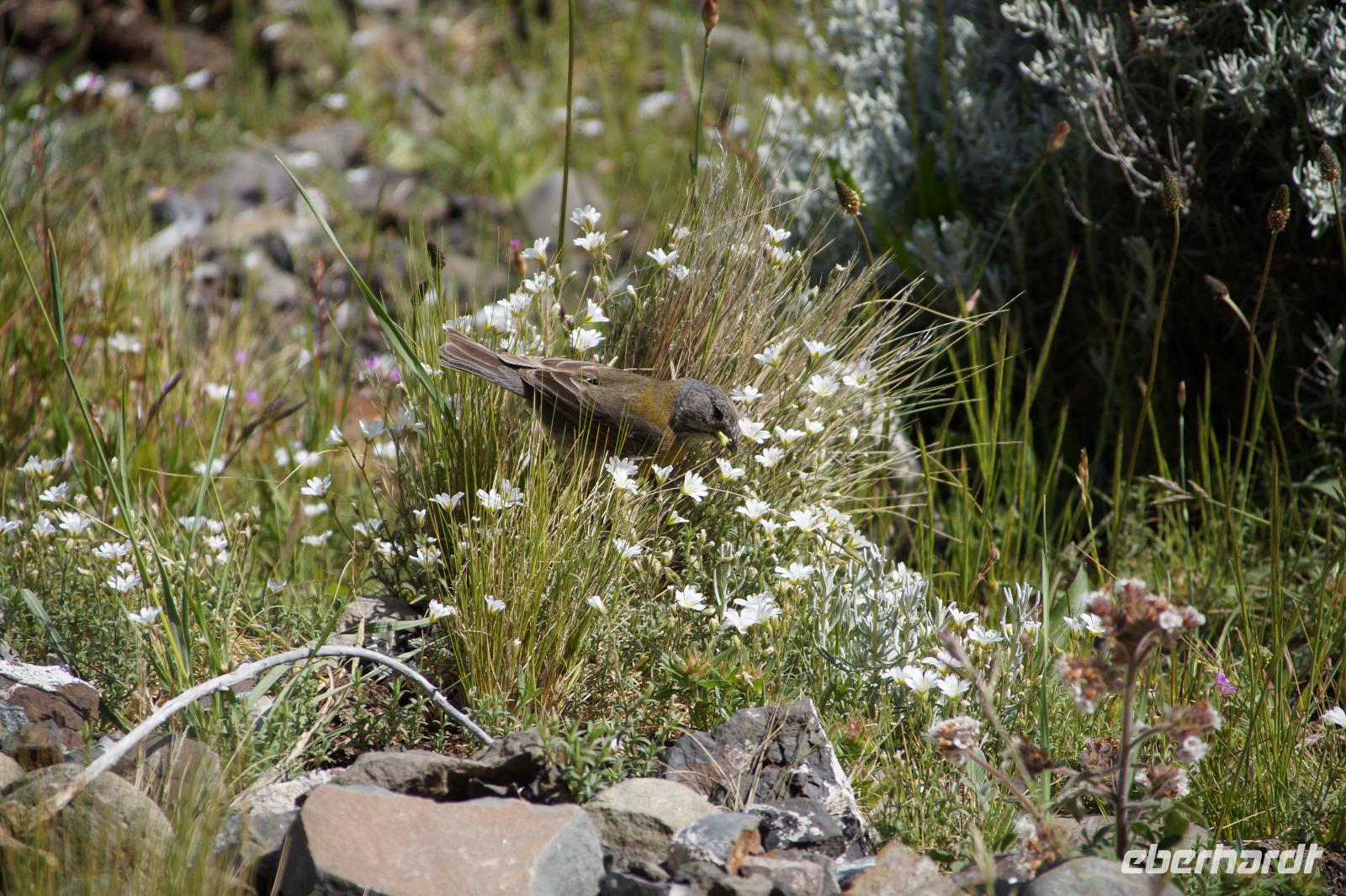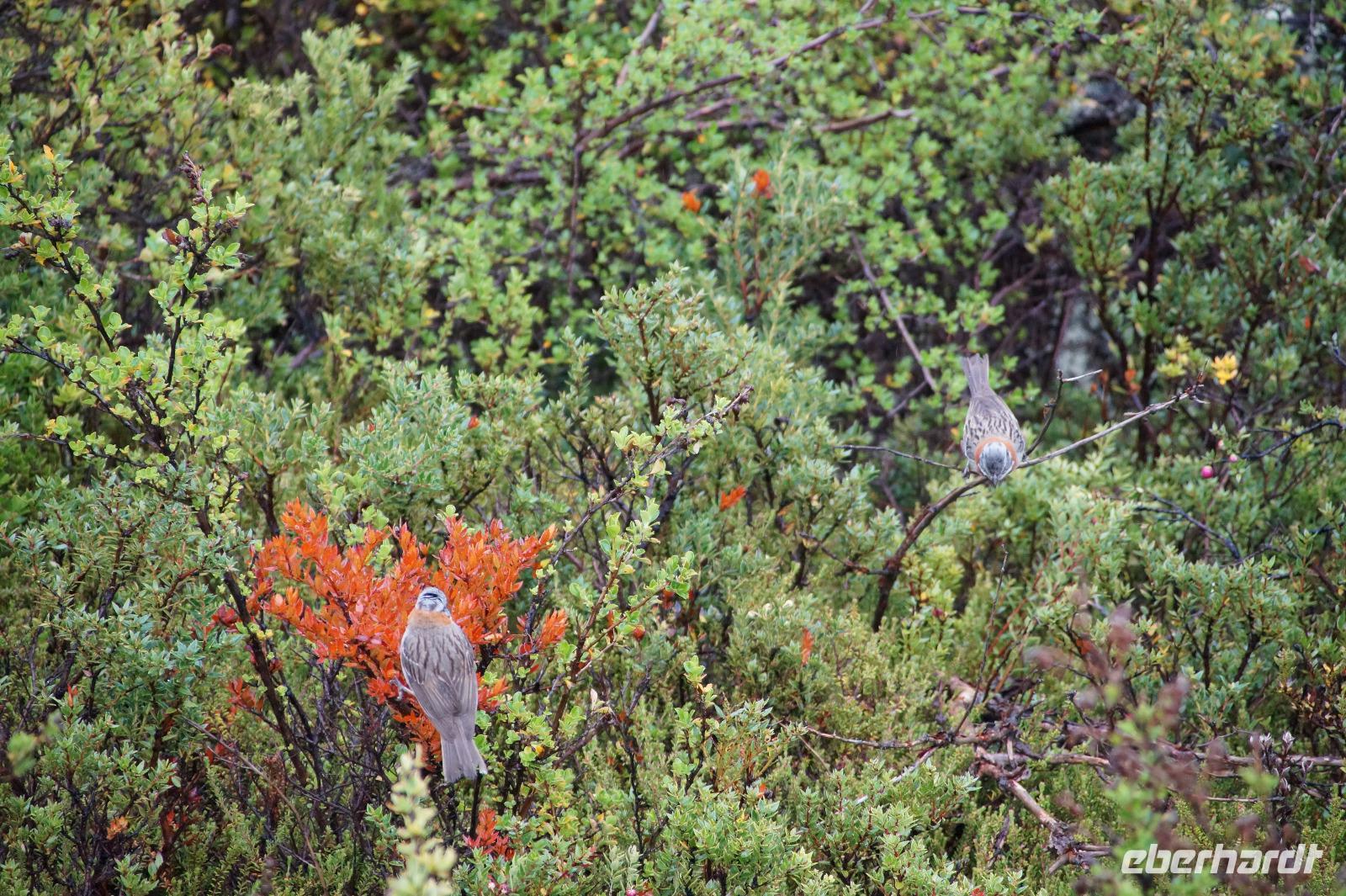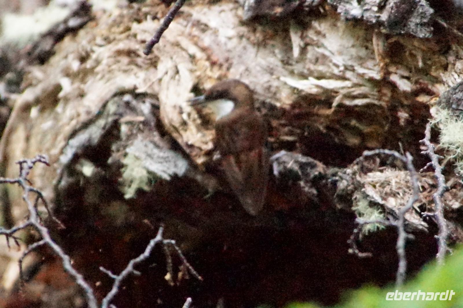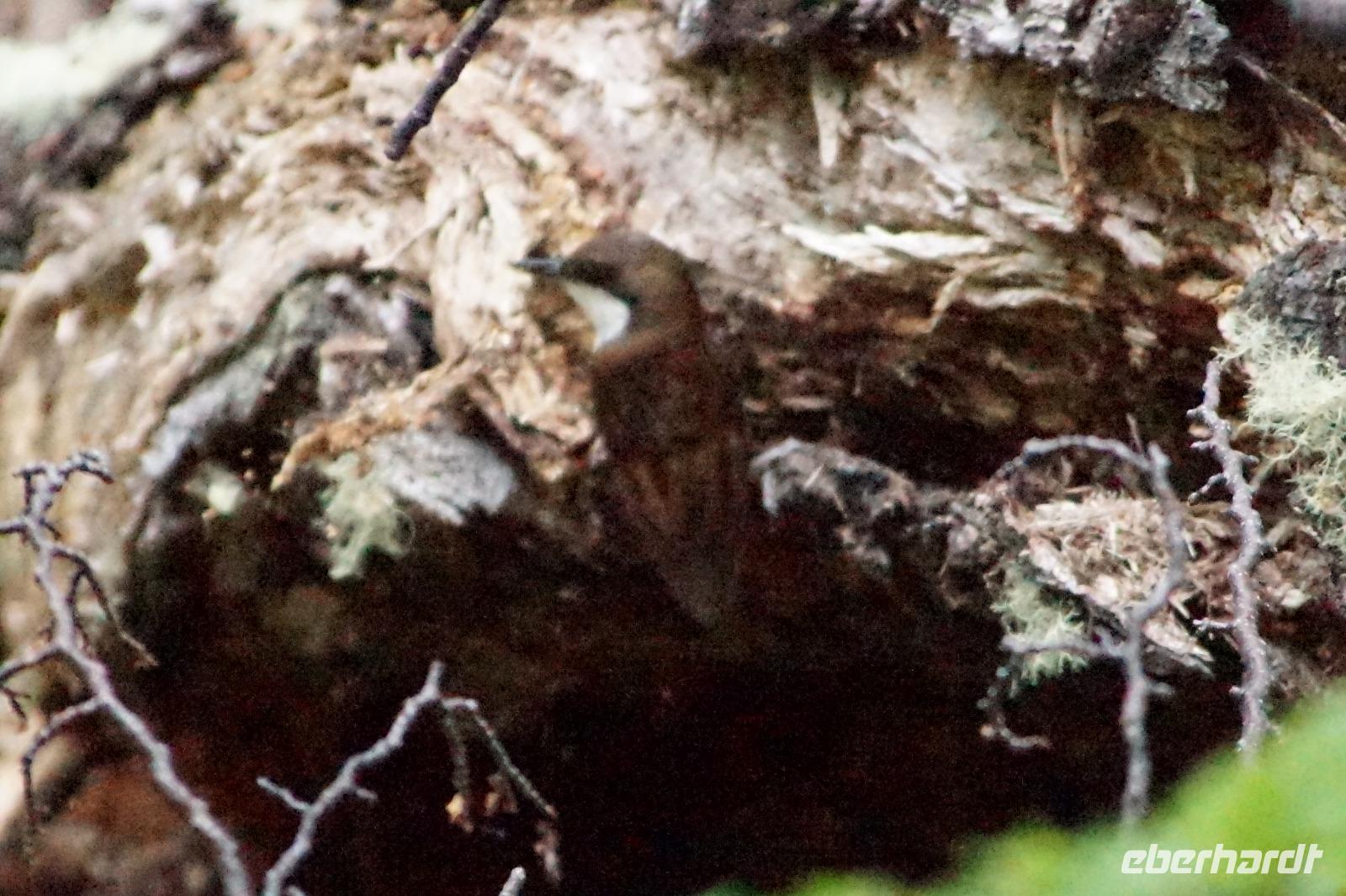 Entlang des Río de la Vueltas fuhren wir zur Hostería del Pilar, wo unsere erste richtige Wanderung (auf 450 m NN) startete. Entlang des Río Blanco, den wir aber nur zu Anfang zu Gesicht bekamen, wanderten wir, das Fitz Roy-Massiv vor Augen, los. Neben Finken und kleineren Vögeln sahen wir auch ein Spechtweibchen, welches sich bei seiner Nahrungssuche überhaupt nicht von uns stören ließ. Auch eine Gruppe von drei Männchen wurde gesehen, aber dieses Glück hatte nicht jeder. Kurze Zeit später räumte ein Baumläufer die Ritzen einer umgestürzten Südbuche aus, um zwischen den Splittern des verrottenden Baumes, den in die Ritzen gefallenen Ästchen und Blättchen seine proteinreiche Nahrung zu finden.