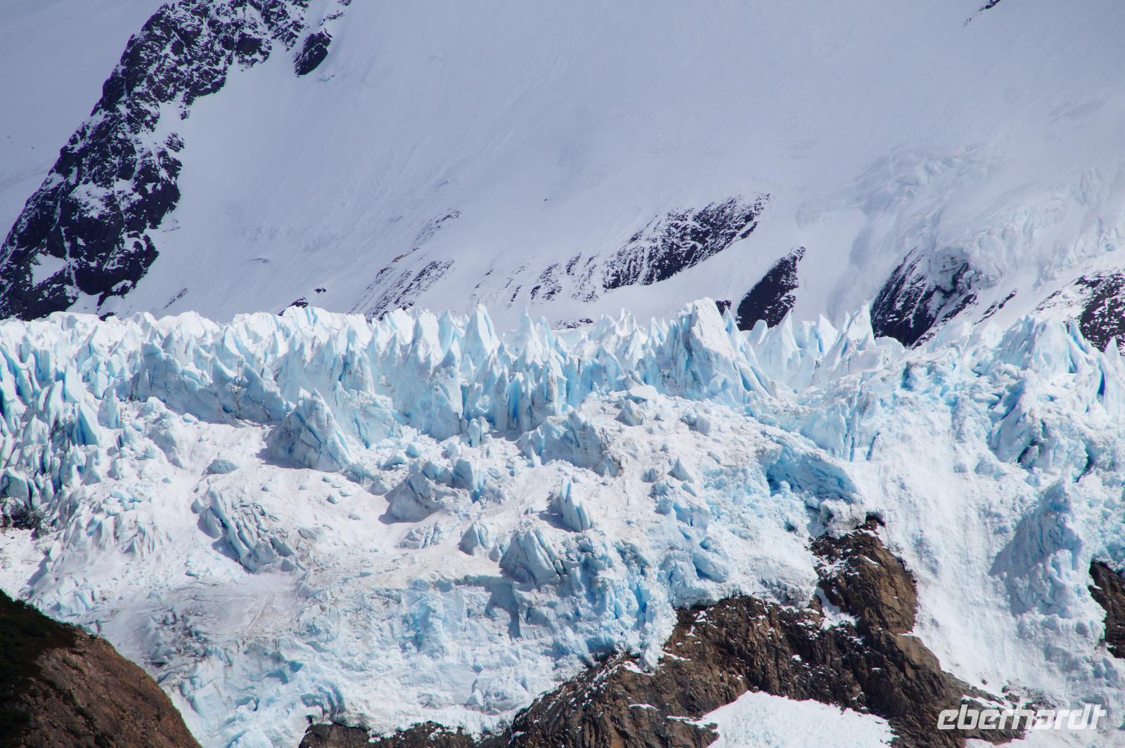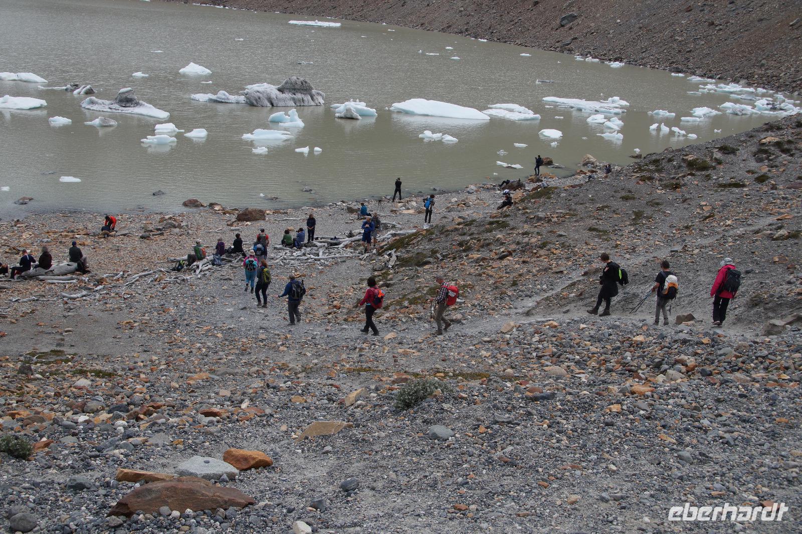 Er wirkt aus demselben Grund, wegen dessen ihn der Klimawandel nicht tangiert imposanter als der Viedmagletscher (den wir allerdings nur aus beträchtlicher Entfernung zu Gesicht bekamen, aus ca. 60 bzw. ca. 25 km Entfernung), der eigentlich der größere und mächtigere der beiden ist.