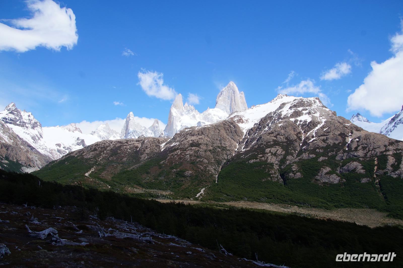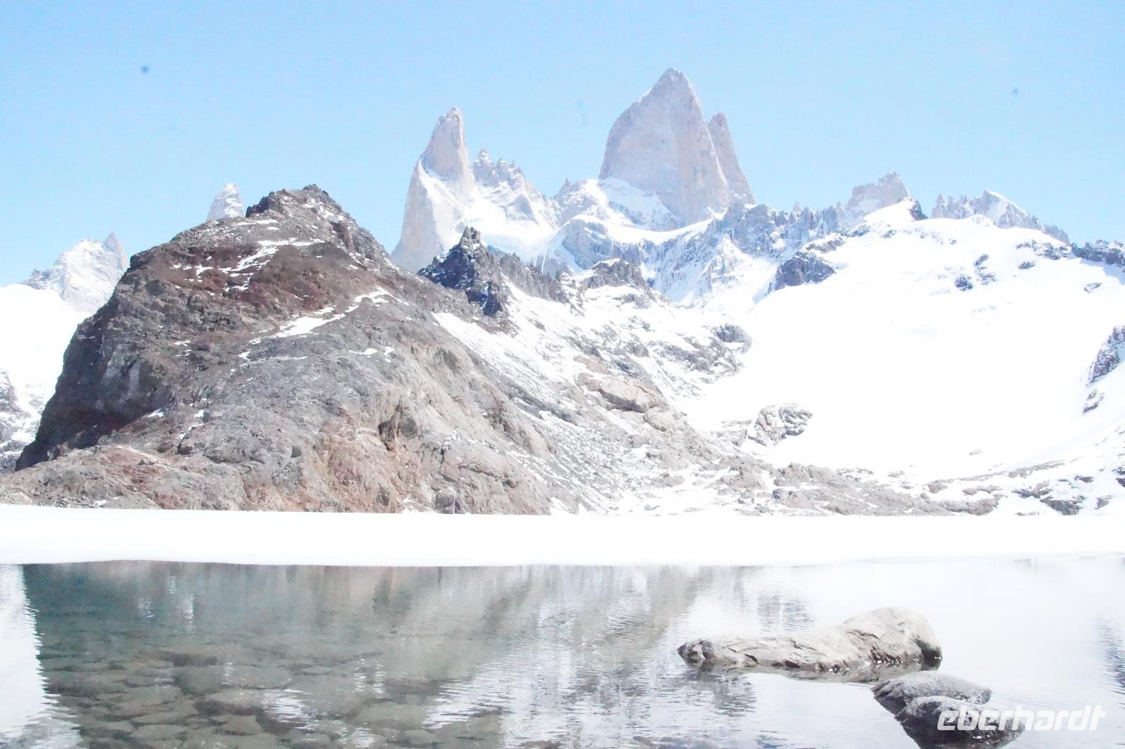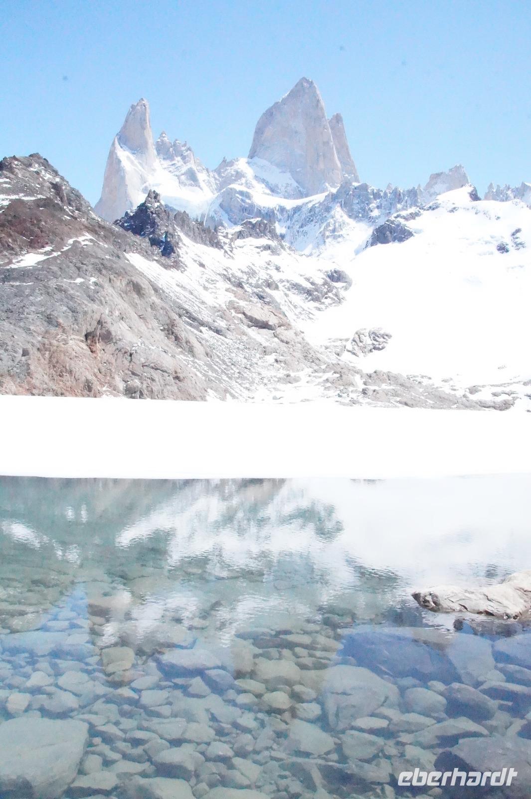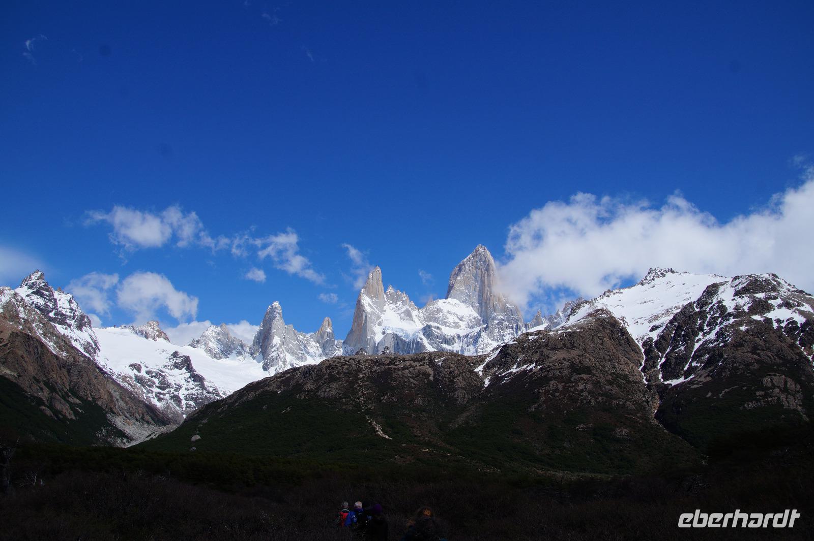 Dennoch: Es war zwar anstrengend, aber wir hatten ein riesiges Glück mit dem Wetter und einen klaren Blick auf den Fitz Roy, der seinem indianischen Namen Chaltén (~ ‚der Rauchende') zu unserer Freude heute mal keine Ehre machte.