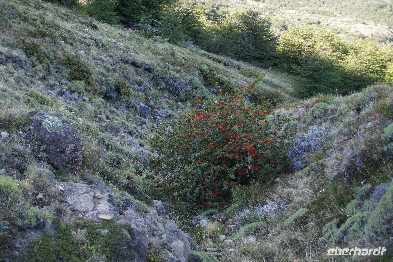 Auf dem Weg dorthin sahen wir unsere ersten Notros (chilenischer Feuerbusch), die uns noch bis Feuerland begleiten würden.