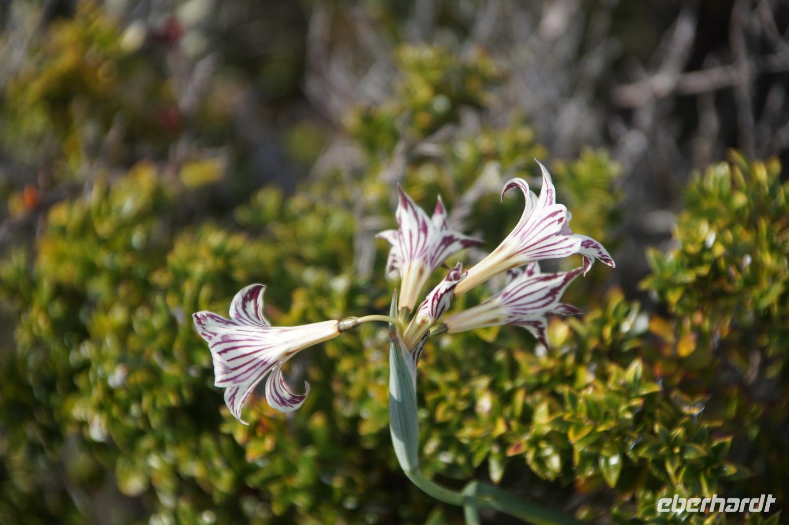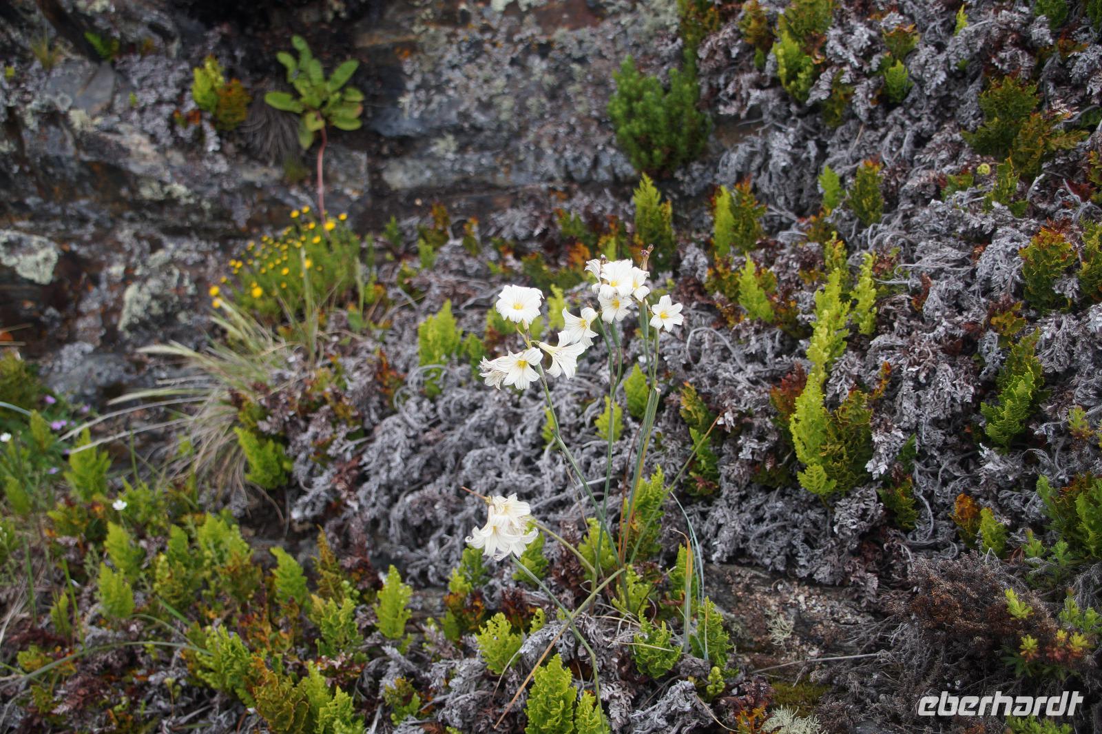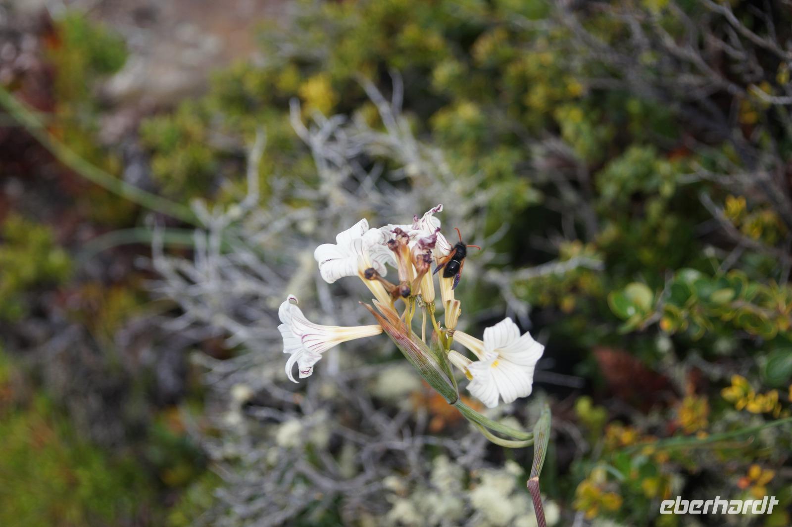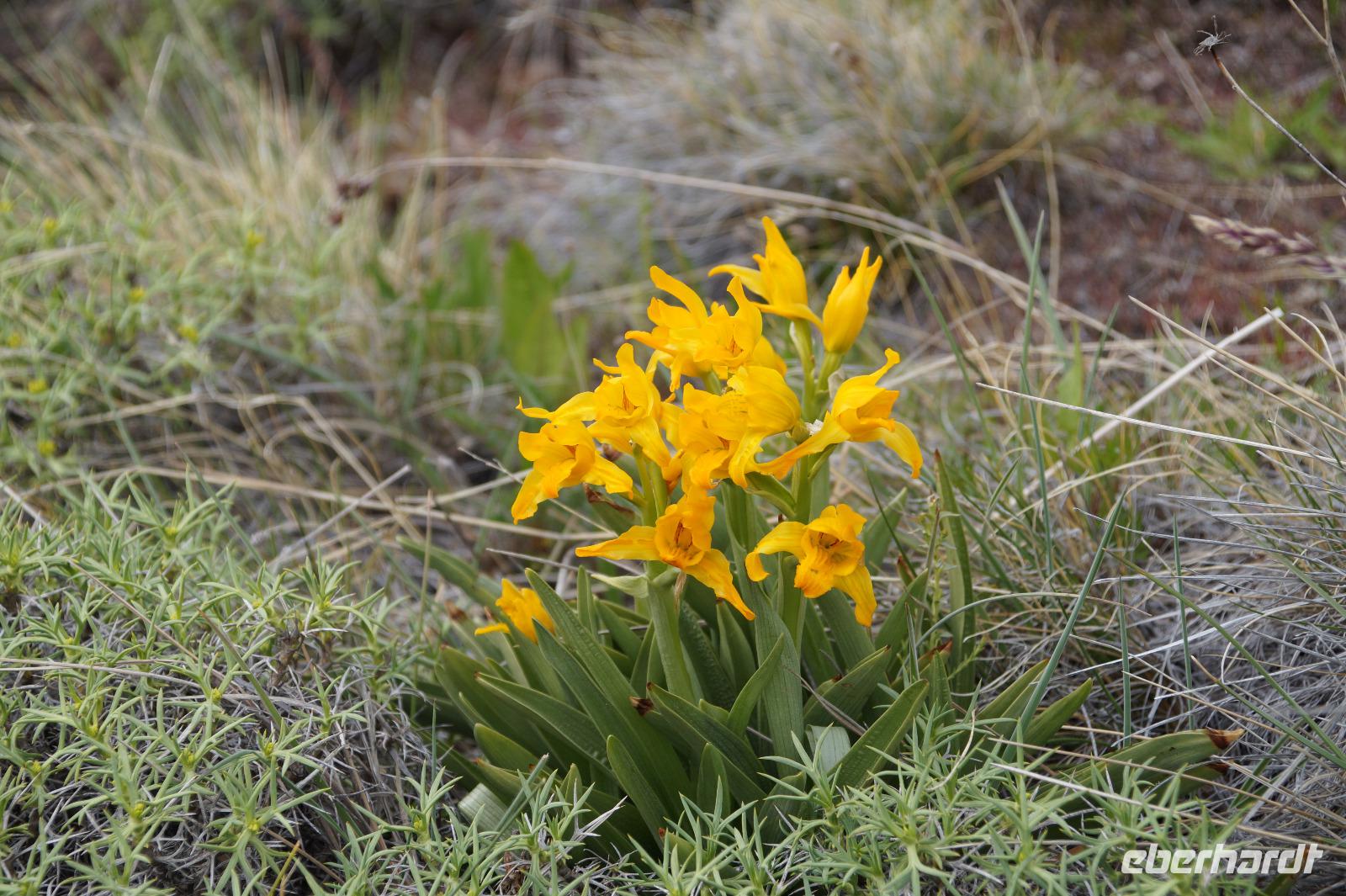 Uns war der Ausstieg auf "H" von der Morgengruppe als "speziell" angekündigt worden, er hatte tatsächlich einen Hauch von Abenteuer. Das Boot machte an dem Felsen fest und wir mussten vom Boot den Felsen hinaufklettern, da das Boot allenfalls leicht schwankte, war das nicht so schwer, wie wir Landratten zum Teil nervös waren. Zunächst begaben wir uns zum höchsten Punkt der Insel, in ihrem Südteil gelegen, dann marschierten wir zu dem Querbalken des H und von dort wieder zurück zum Boot, den Nordteil der Insel betraten wir gar nicht. Wer mochte konnte unterwegs ein paar Steife Scheinbeeren (Chauras) pflücken, aber viel Ausbeute war nicht zu machen, dazu hätte man wohl den Trampelpfad verlassen müssen, was natürlich - und zu Recht! - verboten war.