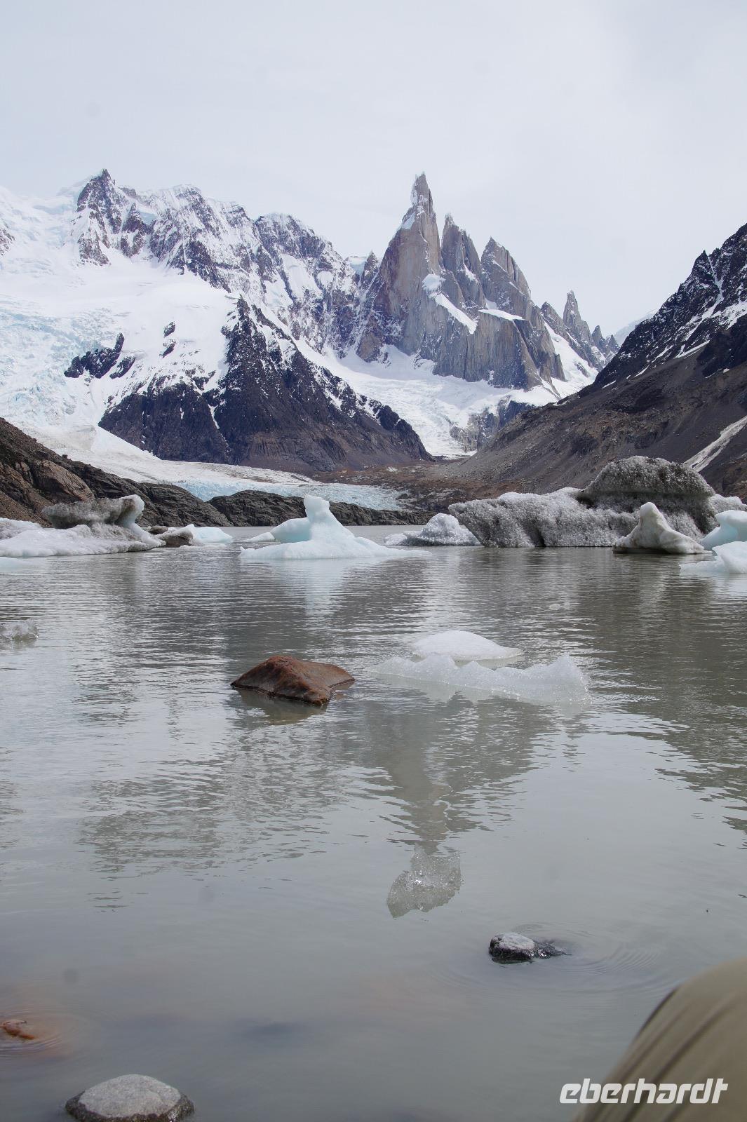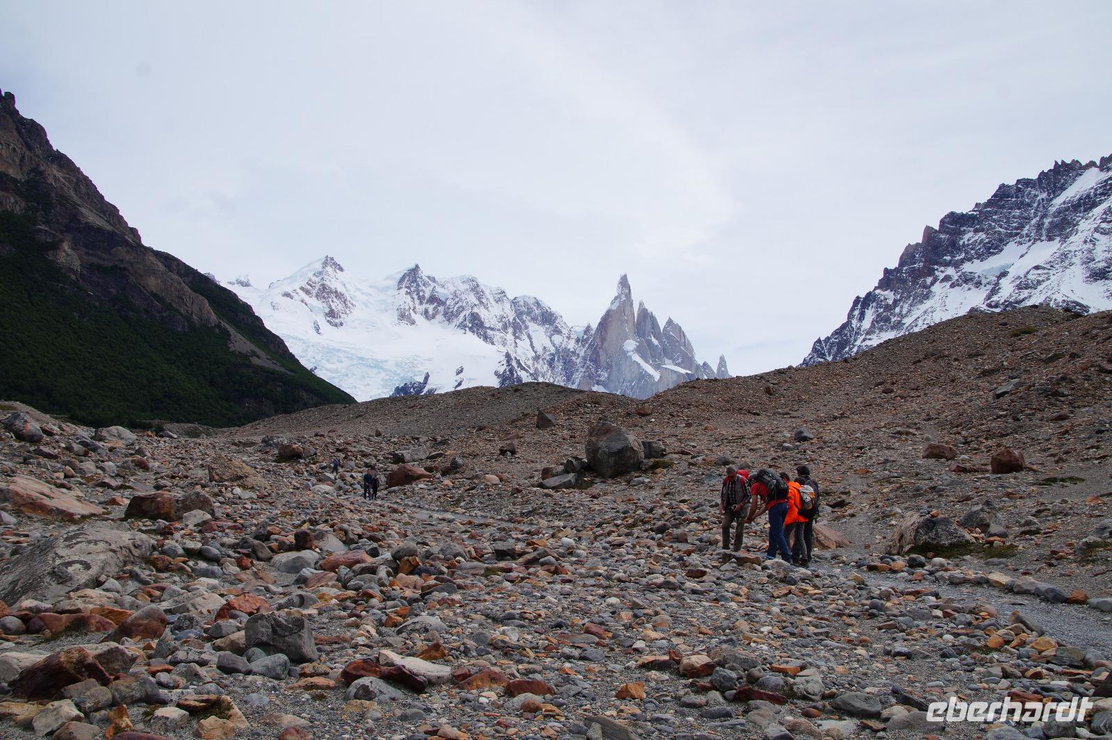Heute waren der Cerro Torre und die gleichnamige Laguna unser Ziel. Unser Weg führte uns über das Gletschergeschiebe am Rand des Río Fitz Roy, der sich aus der Laguna Torre ergießt.