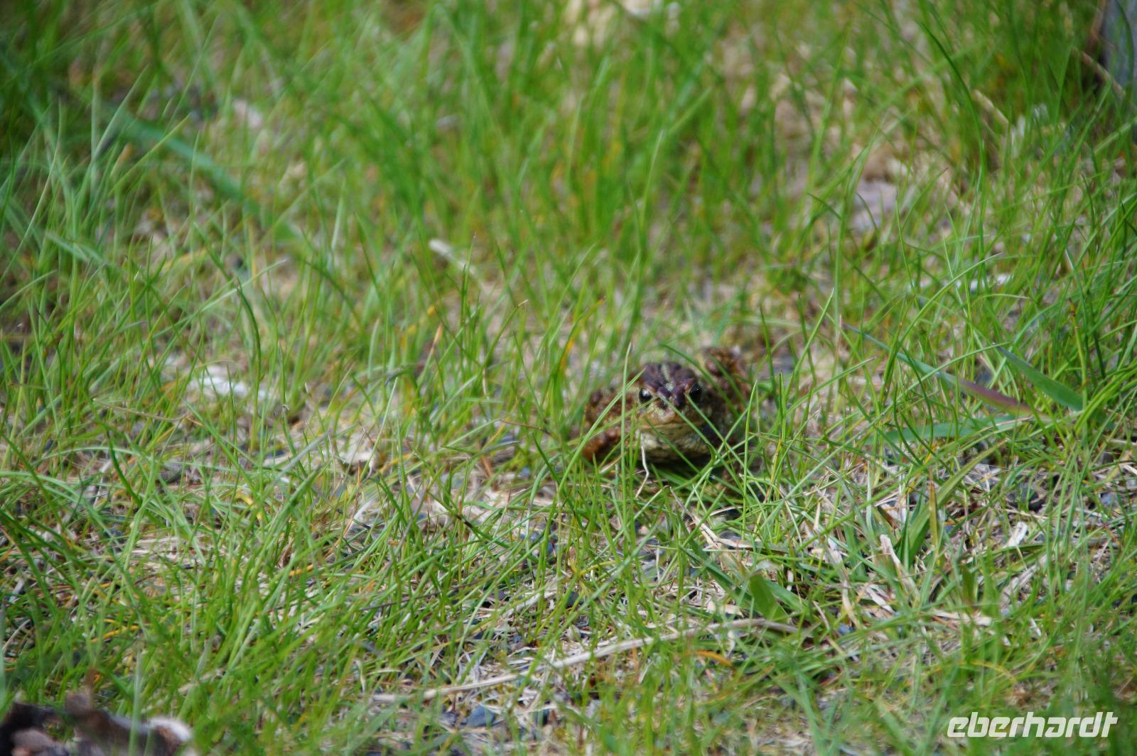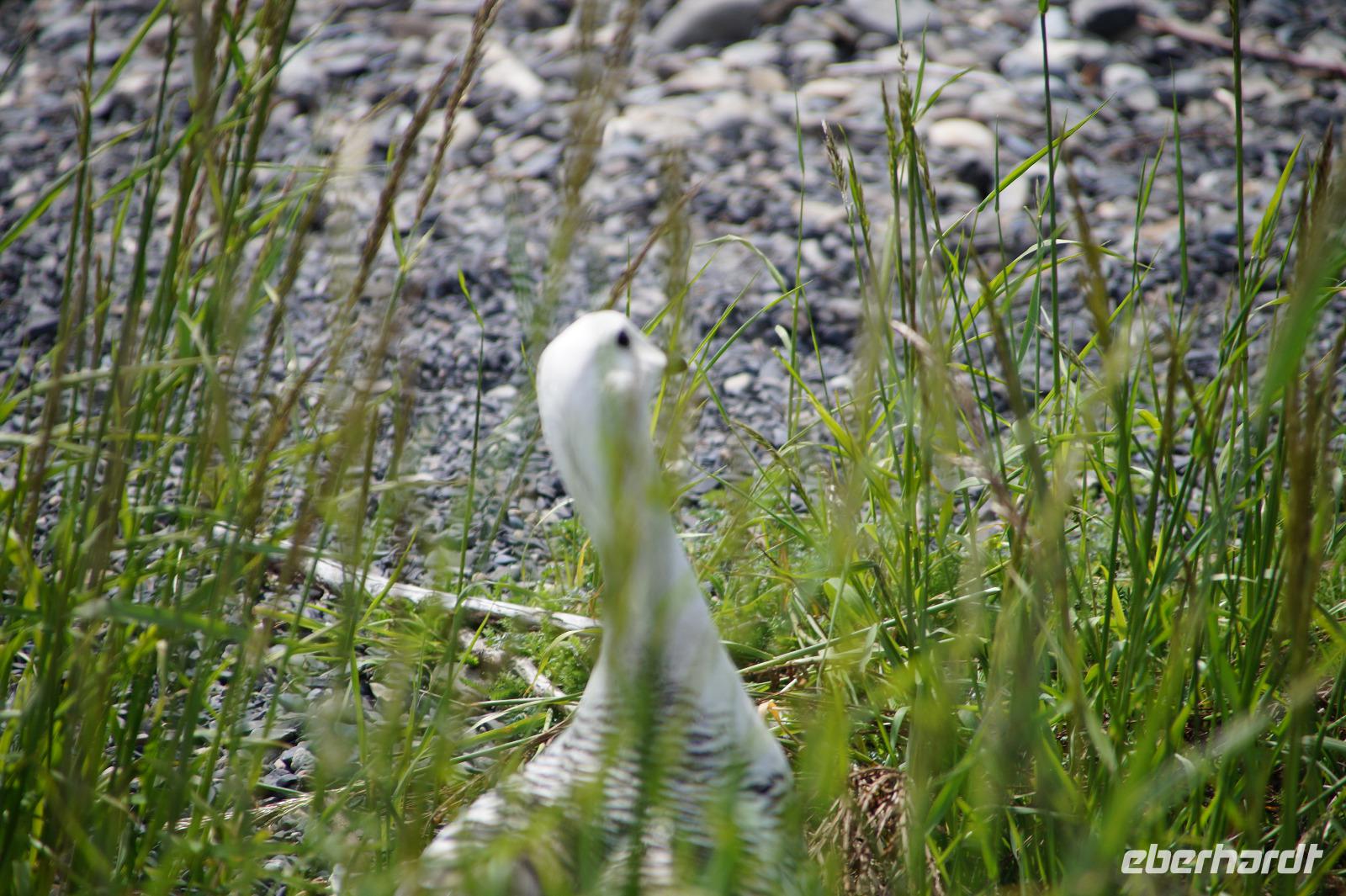 Unsere Annäherung an das Schild weckte seine Aufmerksamkeit, es schüttelte wie ein empörter Mensch über die Störung seiner Ruhe seinen Kopf, „also nee, immer diese lärmenden Menschen", stand auf und stapfte beleidigt davon.