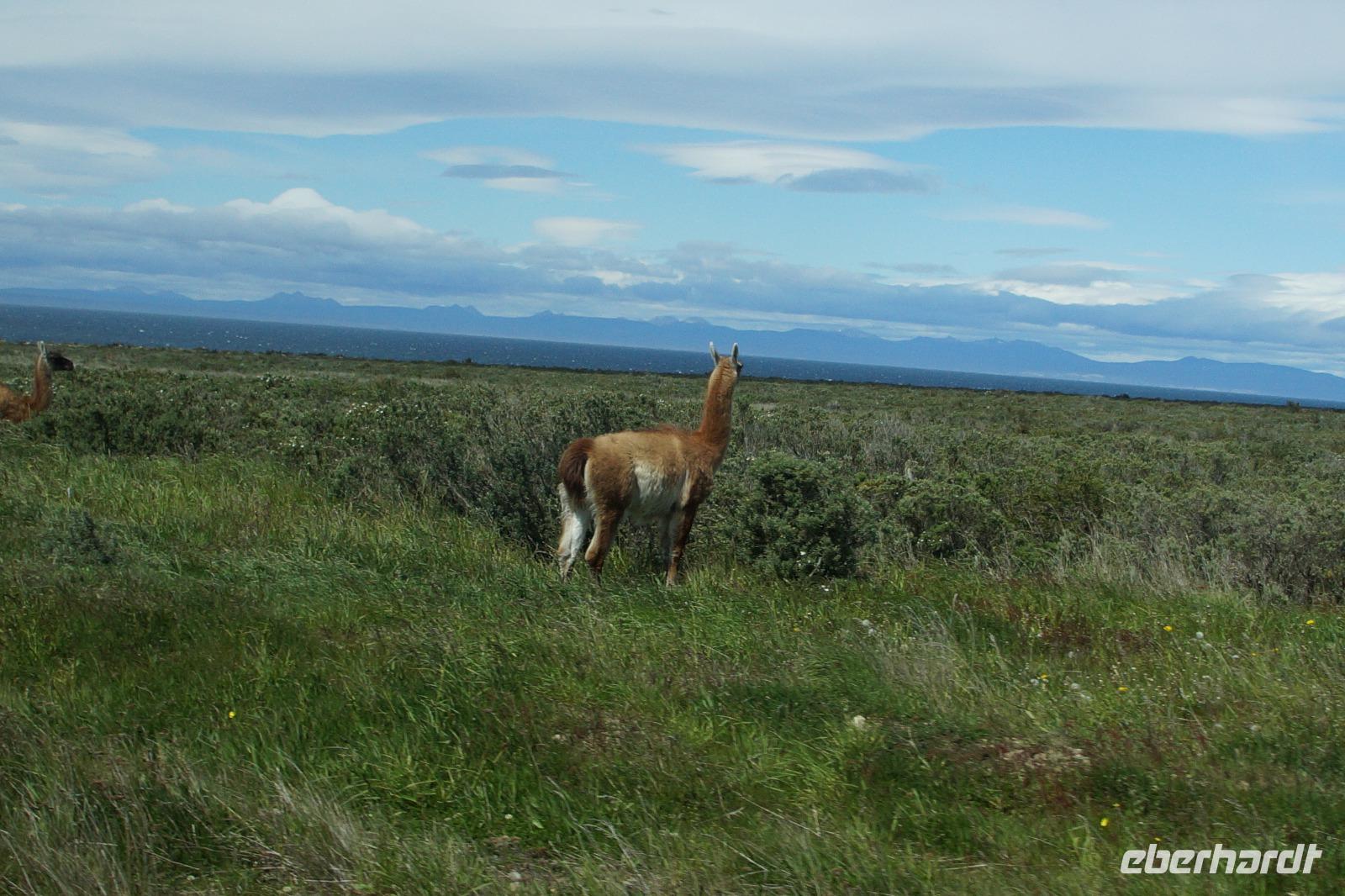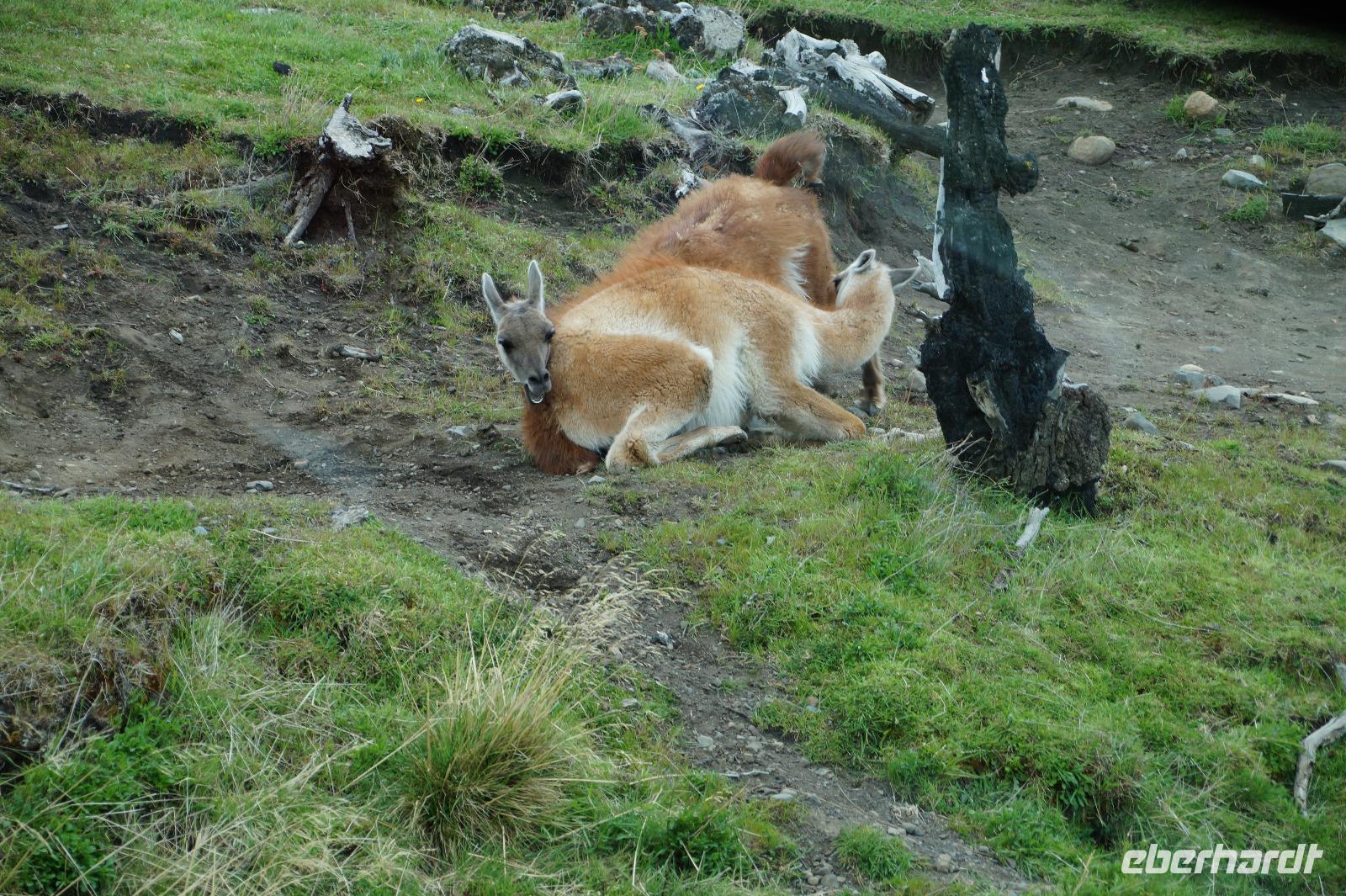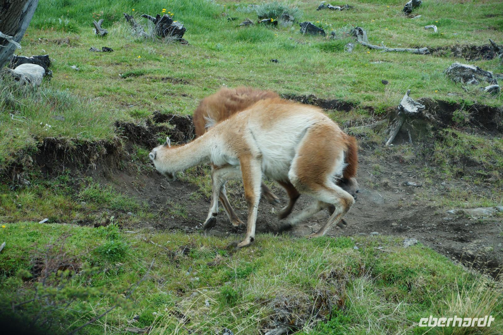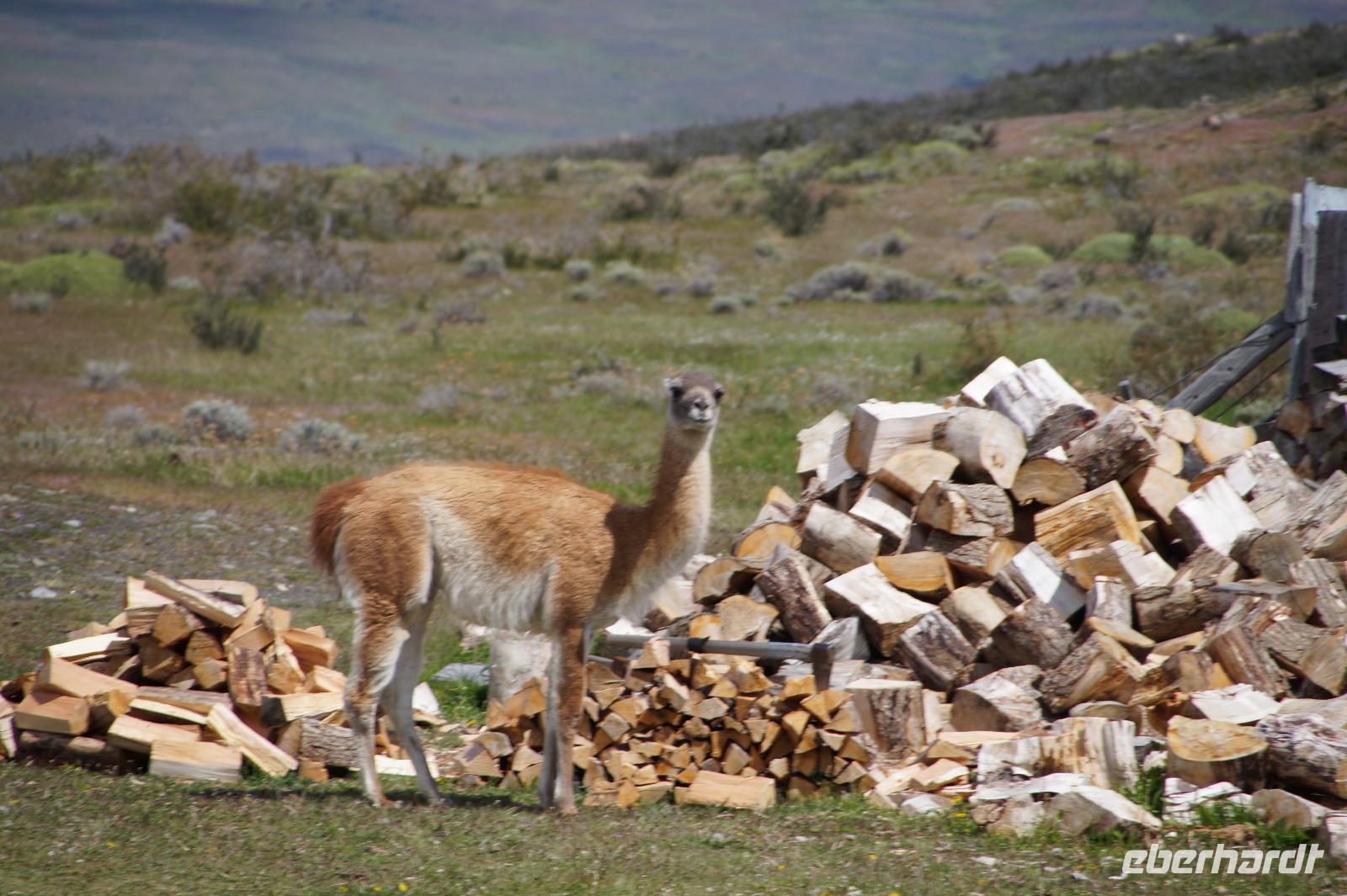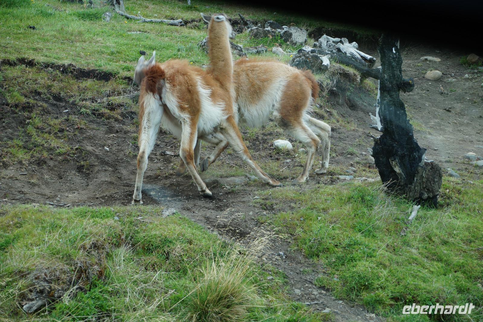 Am Zaun kreuzen die Guanacos zwischen Estancia und Park und genau das erlebten wir, als einige Guanacos, anstatt vor uns zu flüchten uns nur kurz sondierten, als Menschen wohl für harmlos erachteten und in unserer Anwesenheit den Zaun überquerten.