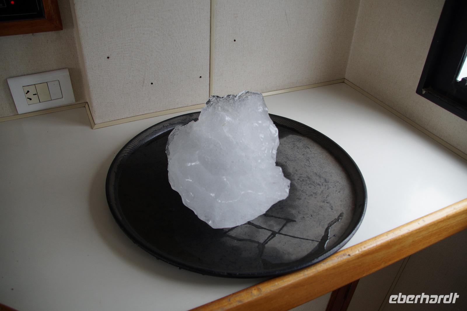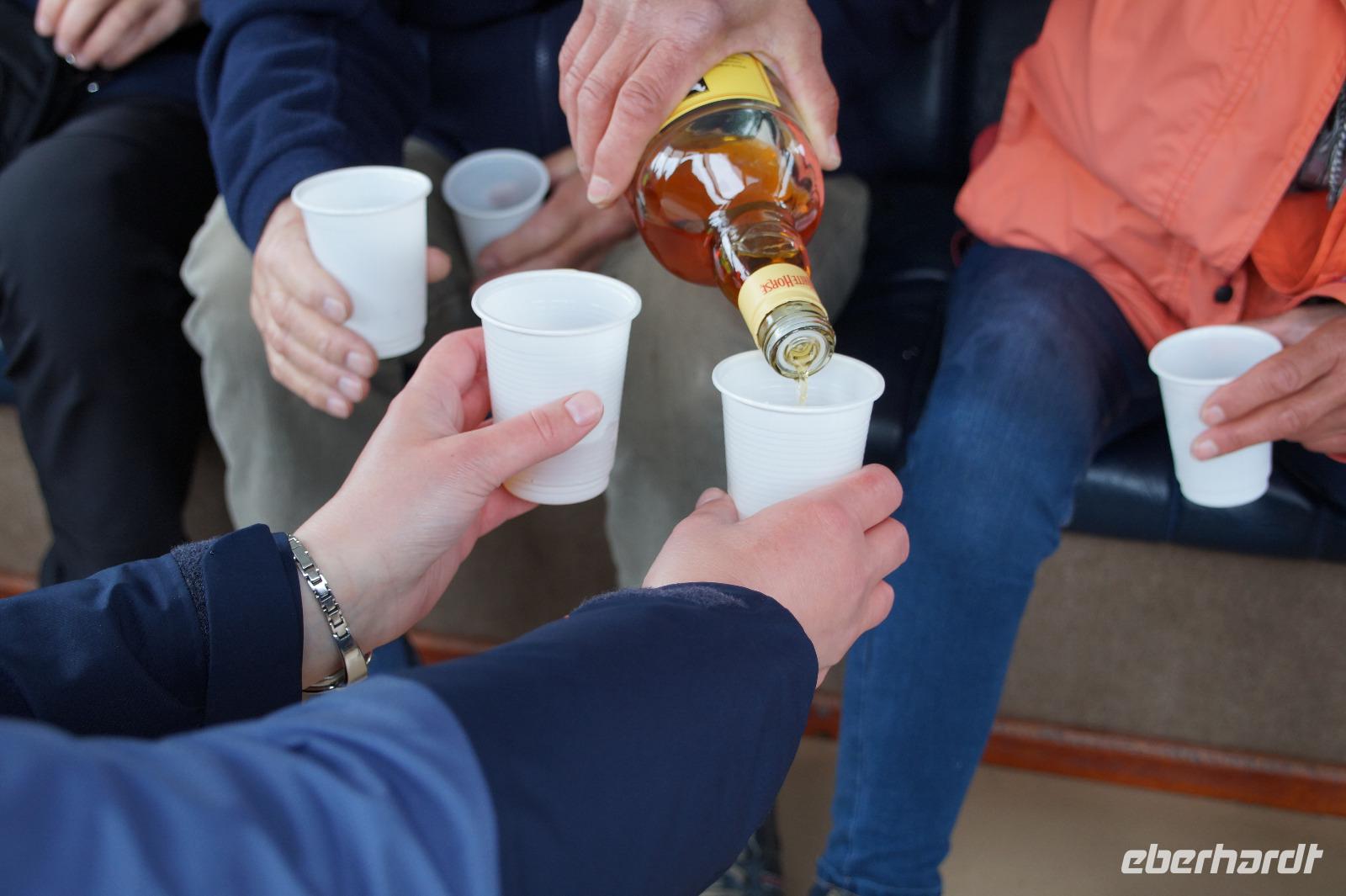 Am Nachmittag fuhren wir mit dem Boot näher an den Gletscher heran und ließen uns von der Crew Gletschereis heranholen. Dieses Eis, das ein geschätztes Alter von fünf- bis siebenhundert Jahren hatte, seitdem es als Schneeflocke auf die Gipfel der umliegenden Berge fiel, füllten wir in unsere Becher, die wir verteilt hatten und dazu gab es einen schottischen Blend, davon waren selbst überzeugte Single Malt-Trinker und Whisky-nicht-mit-Eis-Panscher begeistert.