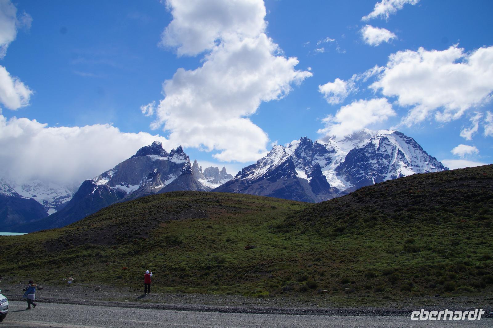 Durch die argentinische Steppe fuhren wir der chilenischen Grenze entgegen. Unser Ziel war der Torres del Paine-Nationalpark. Wer noch Obst im Gepäck hatte, musste es jetzt verzehren (oder vernichten), denn Chile achtet sehr darauf, dass keine keimtragenden tierischen und pflanzlichen Produkte eingeführt werden. Es liegt durch Wüsten, Berge und Meer von allen anderen Ländern getrennt, so dass sich das durchführen lässt.