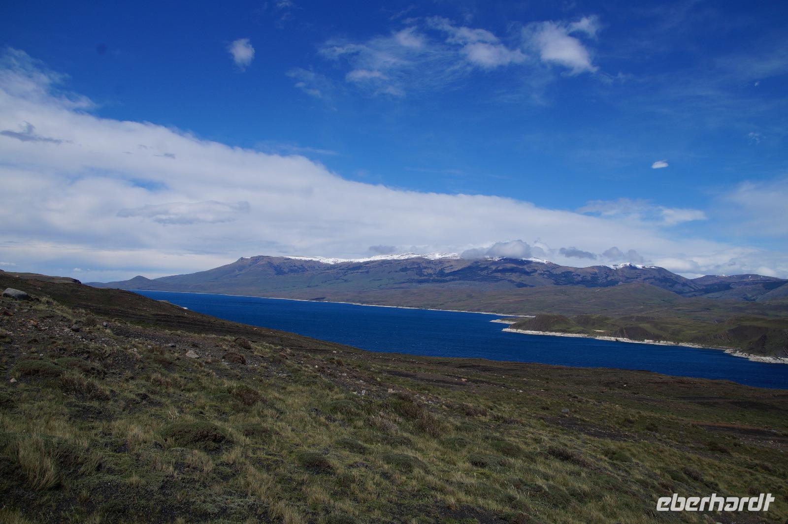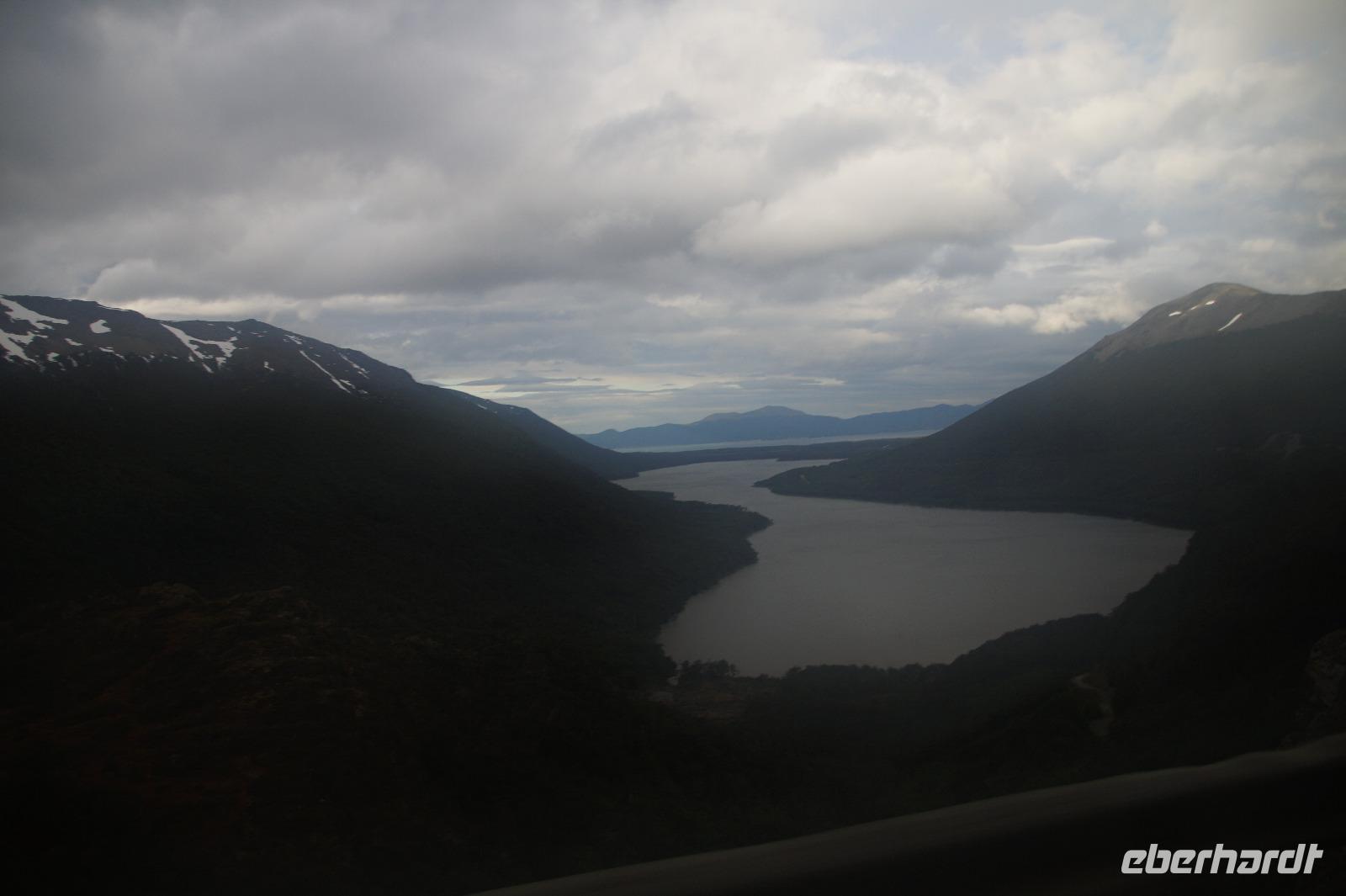 Nach der Wanderung fuhren wir bis zum Lago Roca. Der Lago Roca ist ein See mit drei Namen: einem argentinischen, einem chilenischen und einem indianischen. Roca war ein argentinischer Präsident, der lange als Militär tätig war und mit äußerster Brutalität die patagonische Steppe eroberte. Deshalb ist bei der indianischstämmigen Bevölkerung der Name Roca überaus unbeliebt, in einer Zeremonie "tauften" sie den See in Lago Acigami um. Die Chilenen haben den See, der zum größten Teil auf chilenischem Staatsgebiet liegt, nach ihrem Präsidenten Lago Errázuriz benannt. Da der See aber praktisch nur von Argentinien aus zu erreichen und die indianische Umbenennung in Laco Acigami nicht offiziell anerkannt ist, findet man ihn am leichtesten unter seinem argentinischen Namen Roca.