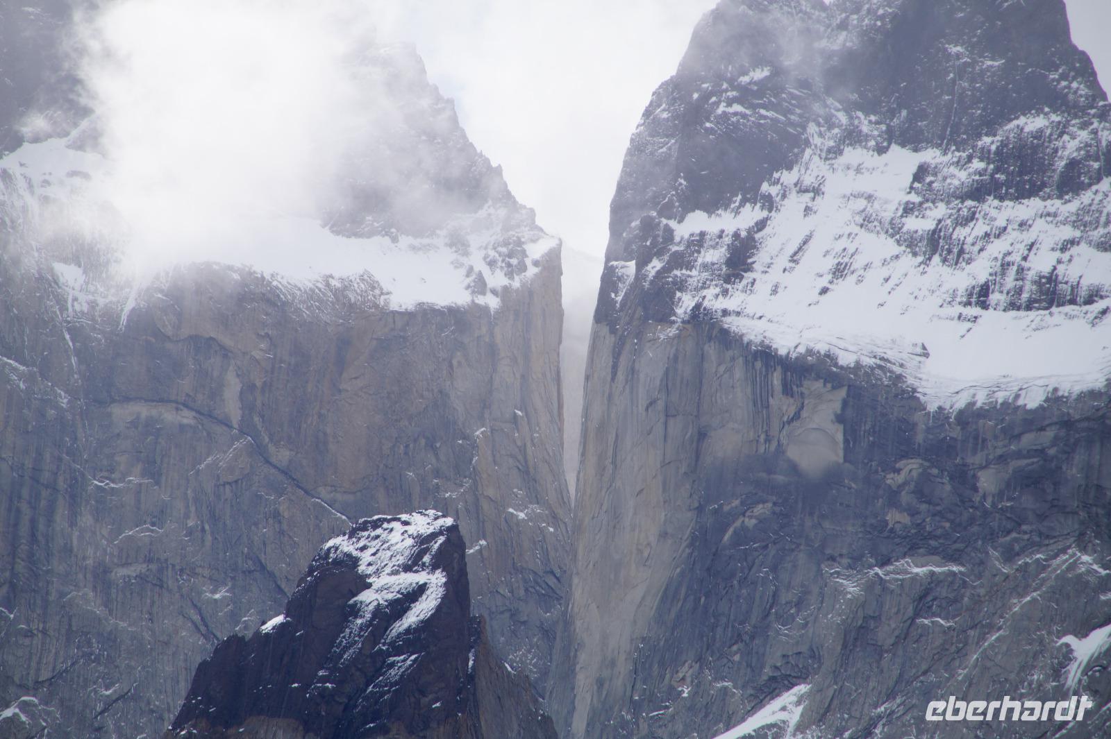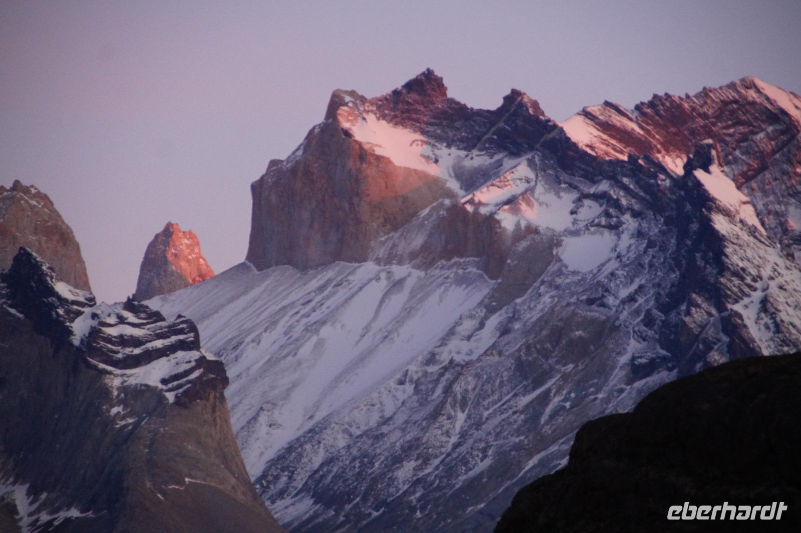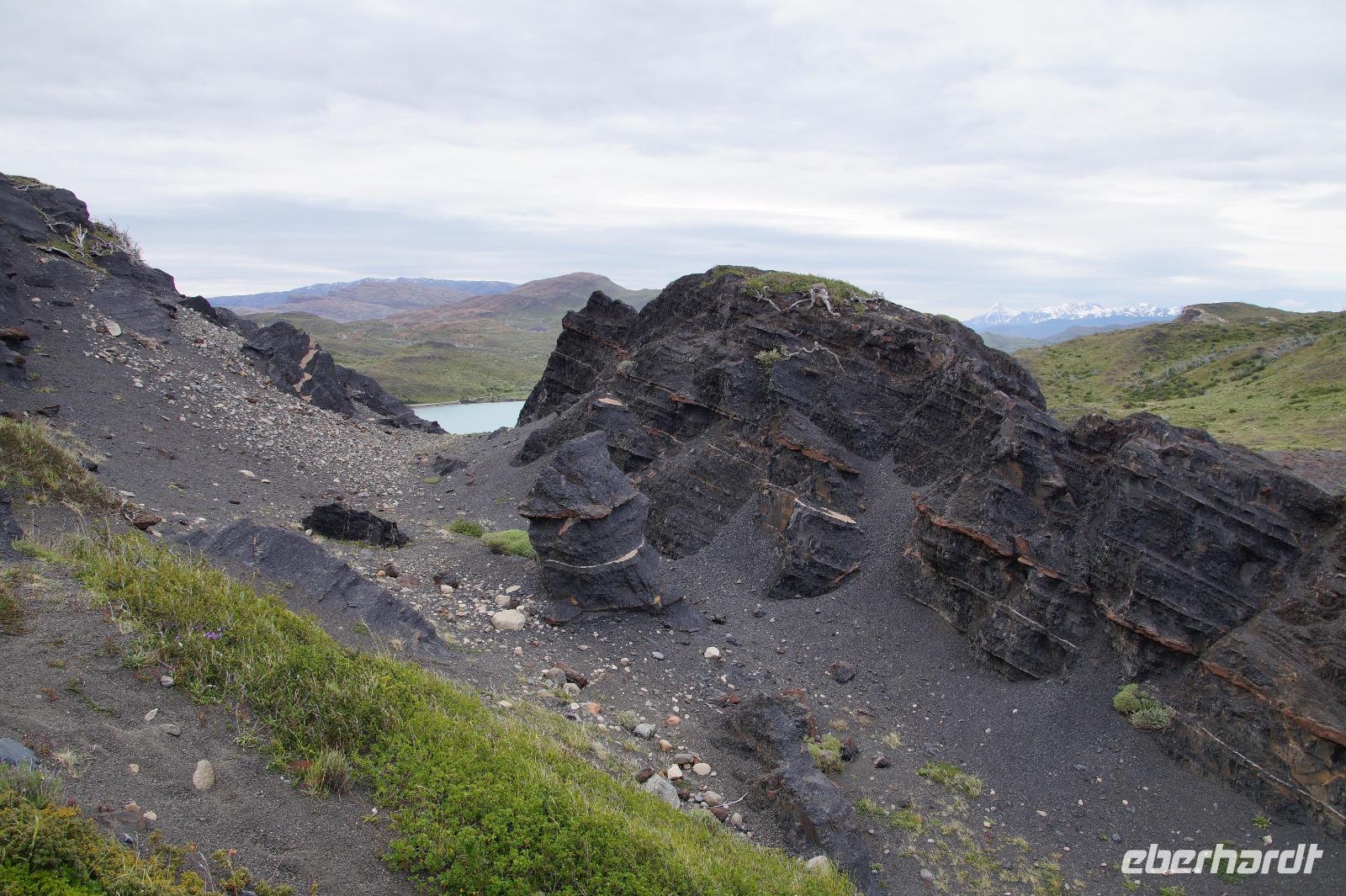 Am Salto Grande erklärten Pancho und Eric uns, dass das Torres del Paine-Massiv unabhängig von den Anden entstanden sei und das Zustandekommen seiner verschiedenen Farben. Unter dem Massiv liegt eine Magmakammer, welche die Torres del Paine nach wie vor anhebt.