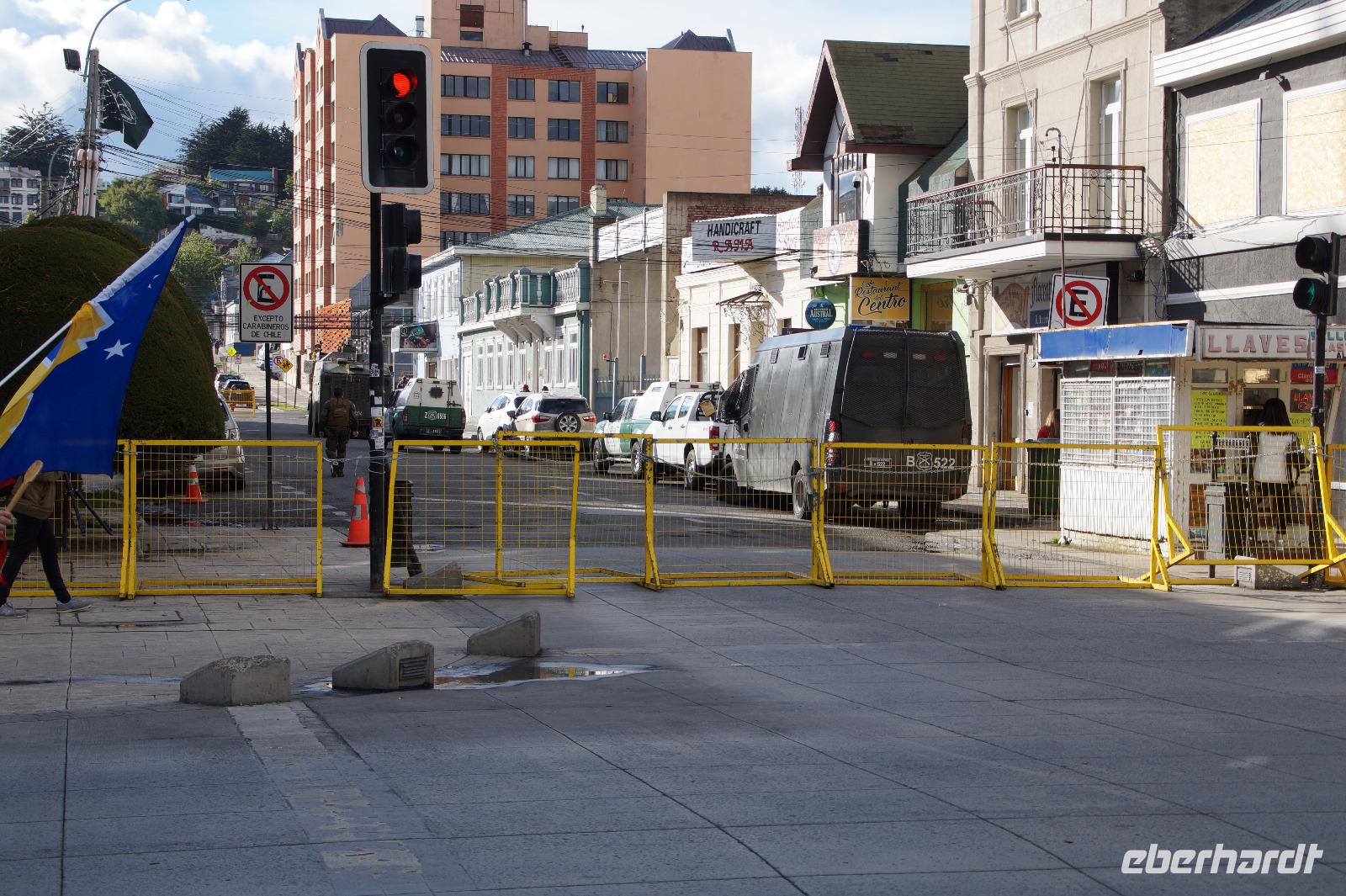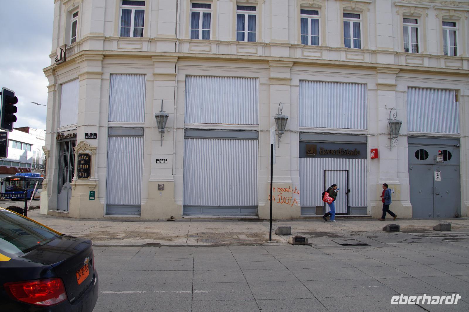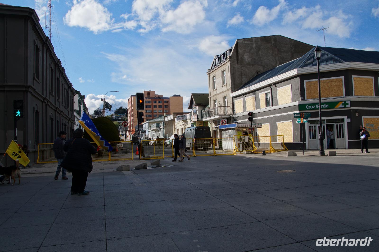 Anschließend fuhren wir nach Punta Arenas, wo wir uns in unserem Hotel einquartierten. Von den Protesten, die direkt vor unserem Hotel stattfanden, bekam die Mehrheit auch wegen des Abendessens kaum etwas mit, aber ein Zimmer lag ungünstig und so kam ein wenig des von der chilenischen Polizei eingesetzten Tränengases bis ins Hotelzimmer geströmt.