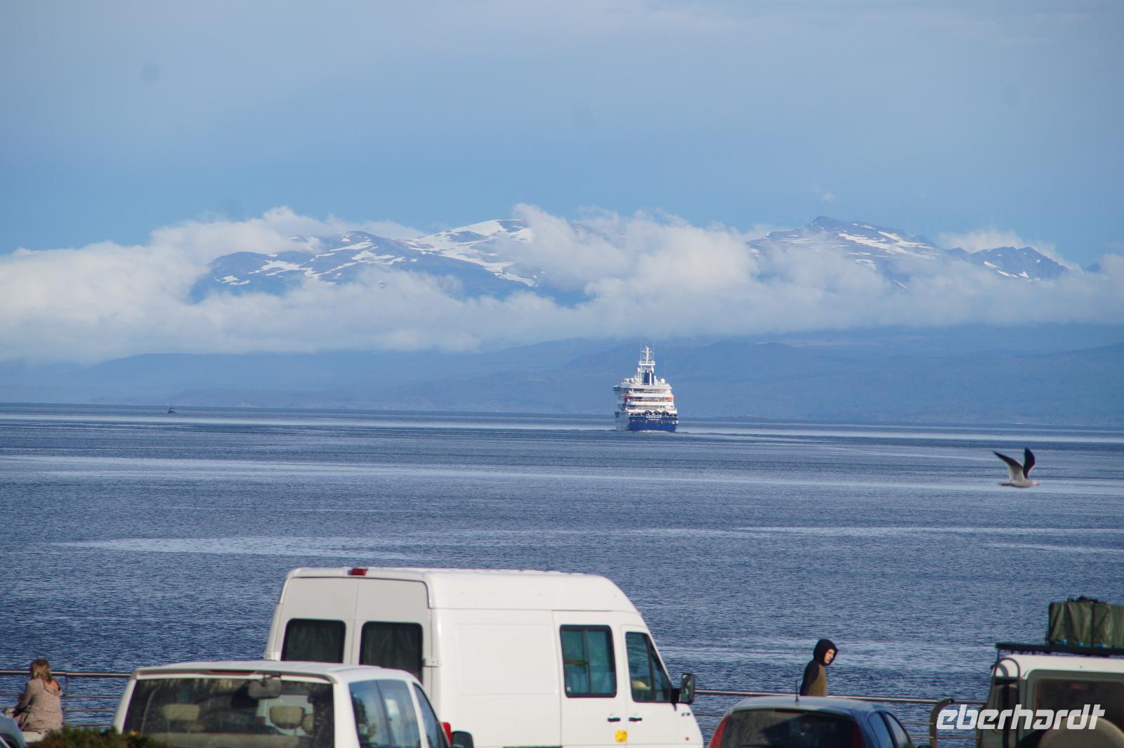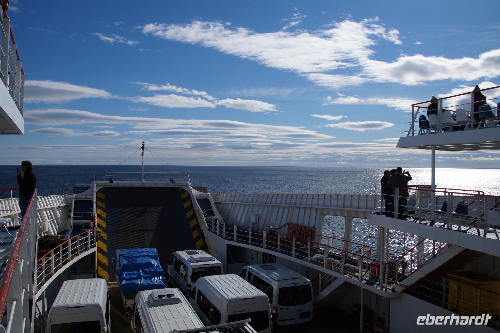 Am Morgen schifften wir auf die Fähre nach Feuerland ein.