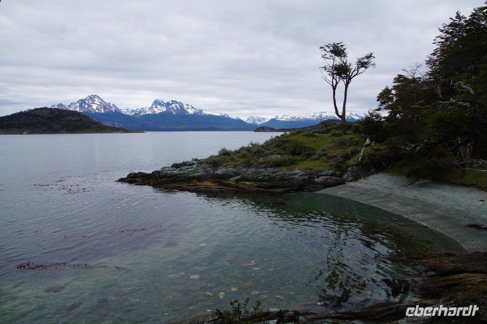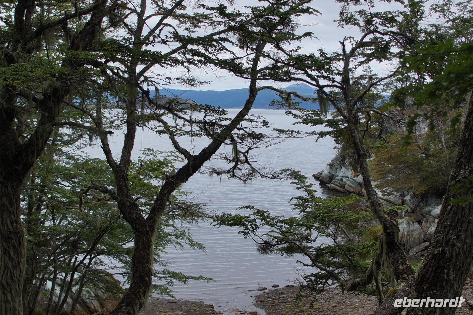 An diesem Tag ging es in zwei Gruppen nach "H". Richtig, "H". Auf Spanisch "A:tsche" ausgesprochen. H ist eine Insel im Beagle Canal. Vielleicht kann man das auch anders greifen: Es liegen da im Beagle Canal zwei überwucherte Felsen zwischen denen das Moränengeröll einen Strand bildet, der zwischen den beiden Inseln liegt, wie der Querbalken eines H.