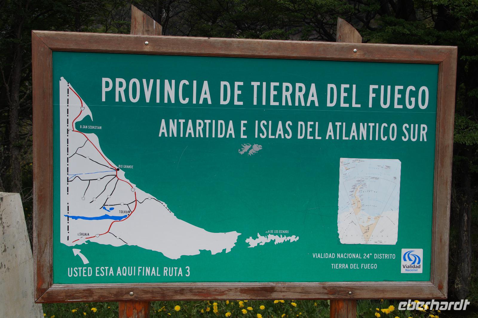 Nachdem wir von Pinguinen und Wind "genug" hatten, kehrten wir zum Bus zurück und setzten unsere Fahrt über die Tierra del Fuego fort und überquerten den 68. Längengrad, der auf Feuerland die Grenze zwischen Argentinien und Chile markiert.