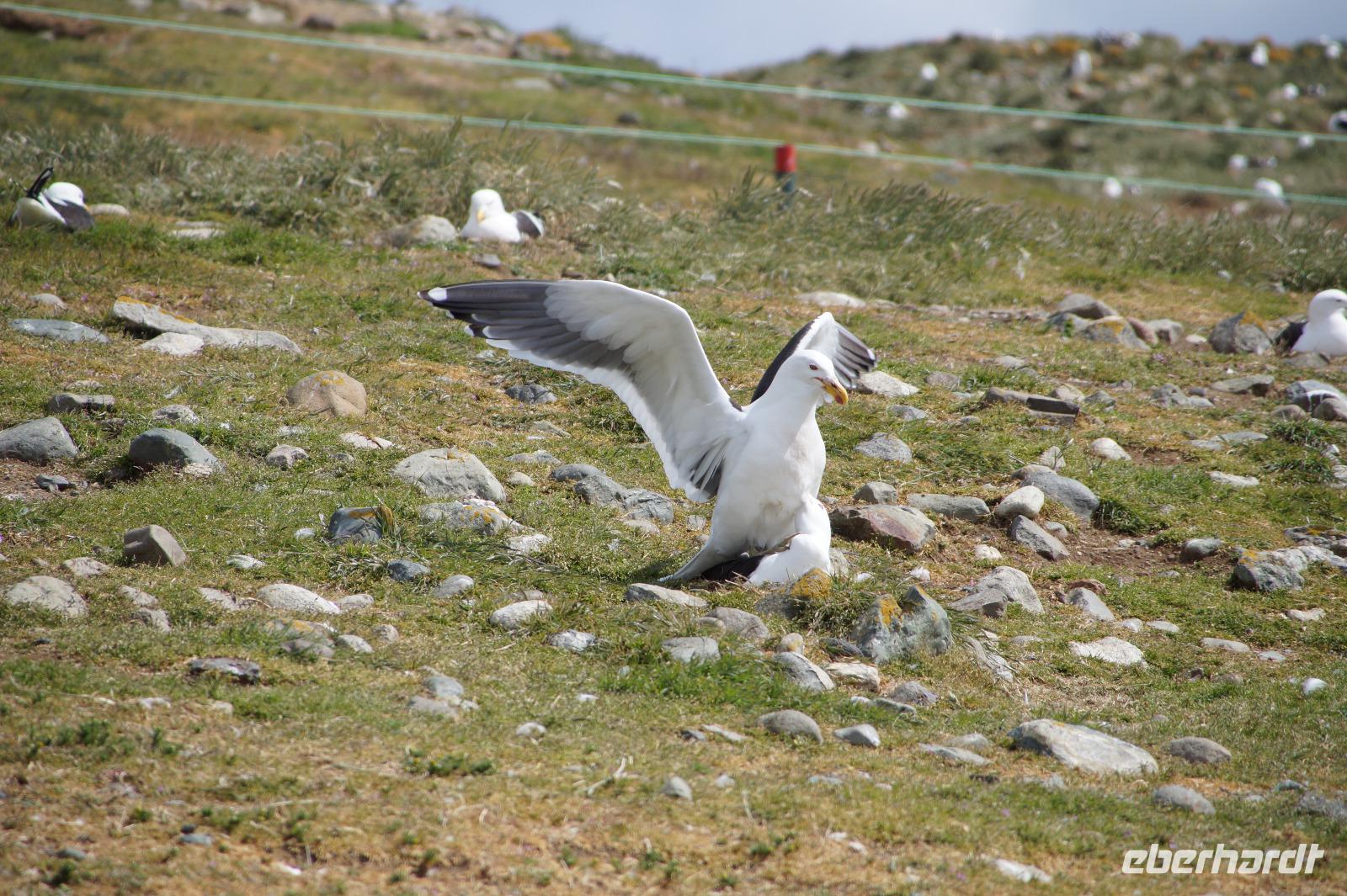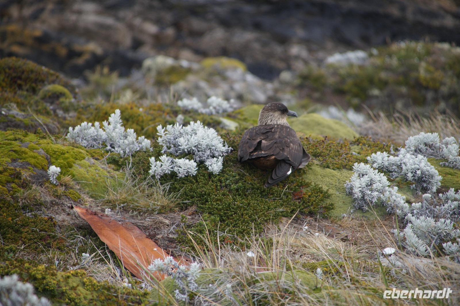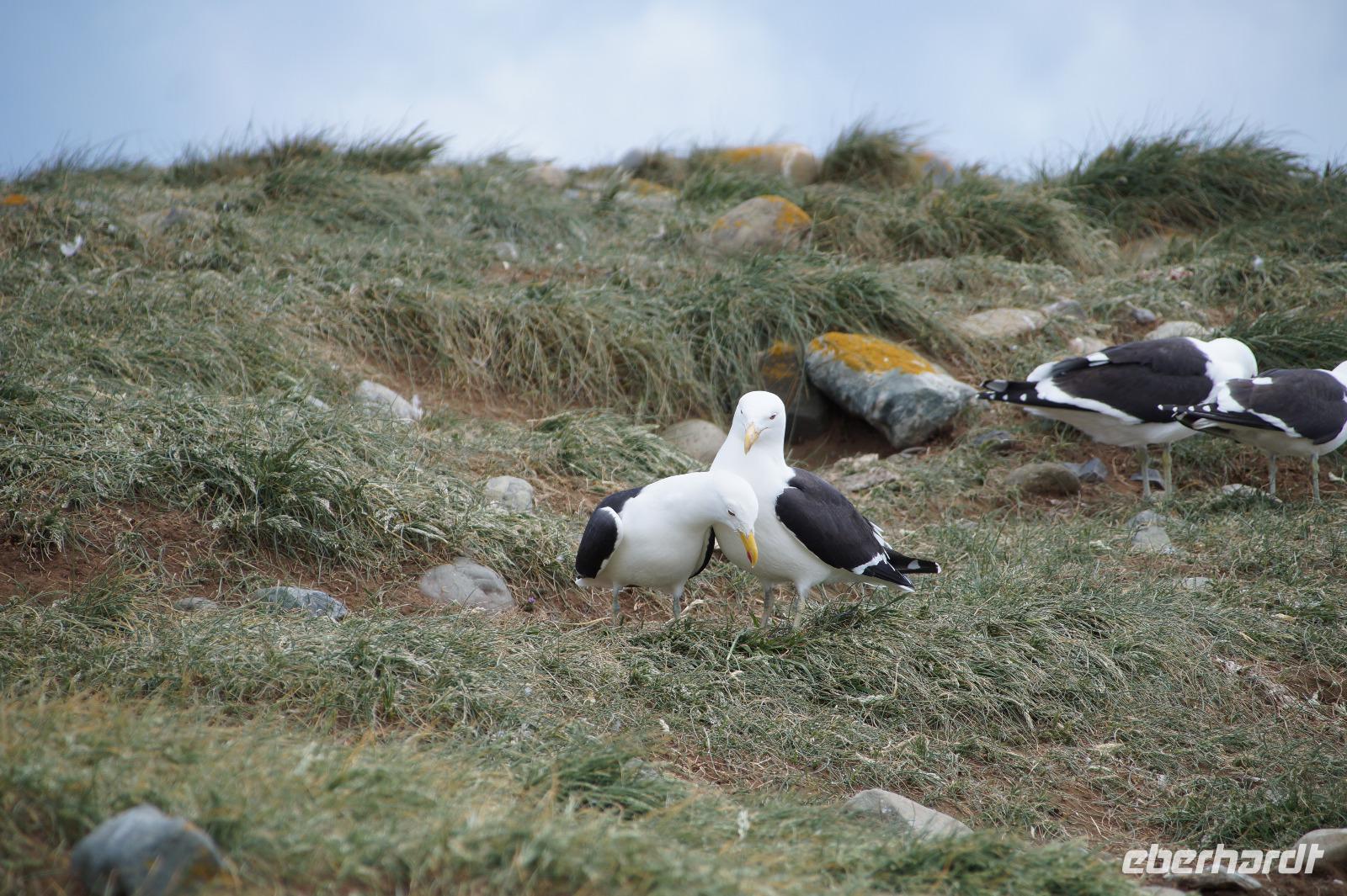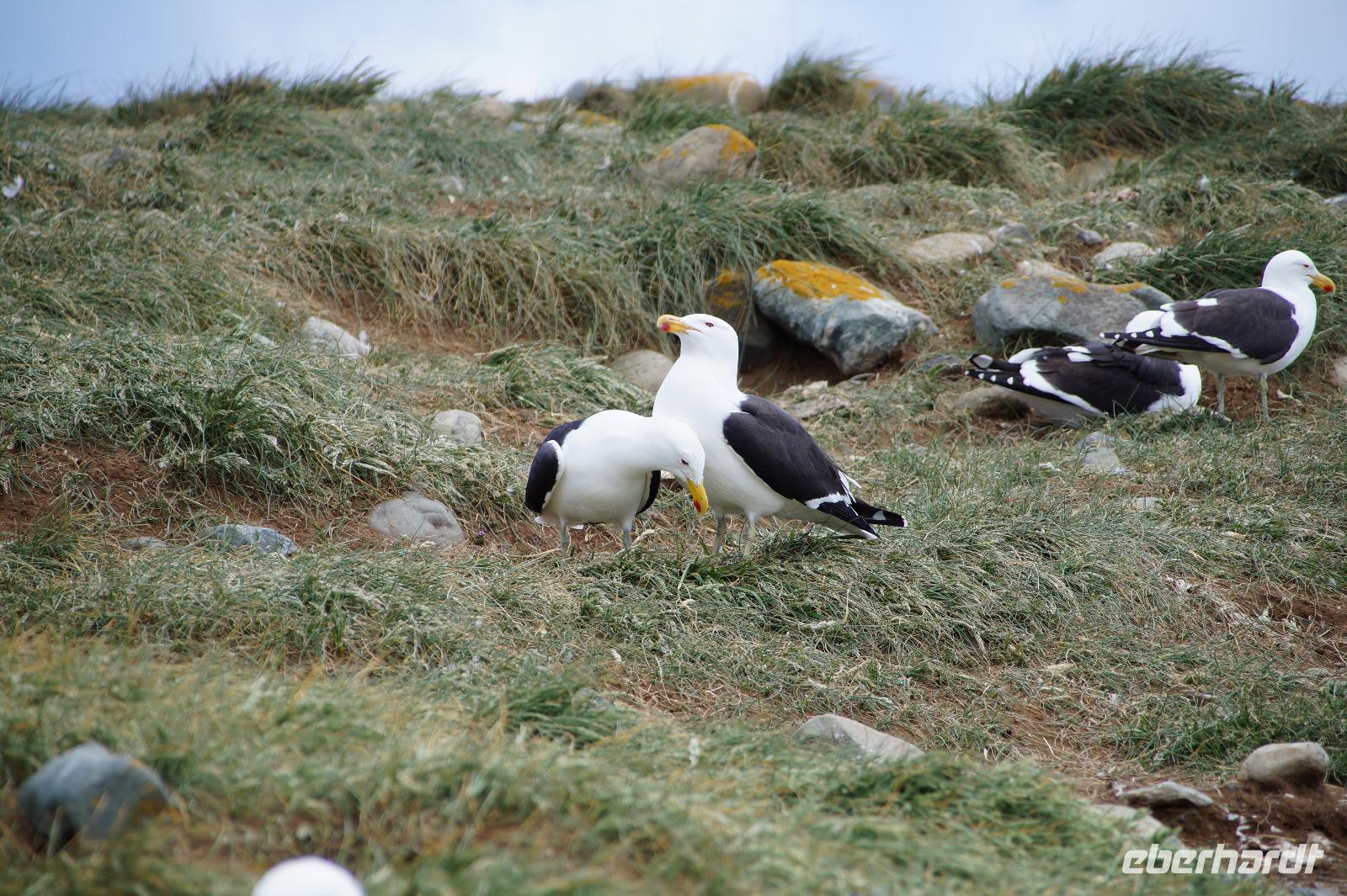 Dann beobachtete Klaus, wie eine Dominikanermöwe einer Artgenossin das Ei aus dem Nest klaute. Mit dem Schnabel hackte es die Schale auf und labte sich an Dotter und Küken. Aber der gegenseitige Eierklau ist nicht das einzige, was die Isla Magdalena zur Kannibaleninsel macht. Häufig stürzen Jungmöwen bei ihren ersten Flugversuchen ab. Dann stürzen sich die in der Absturzzone brütenden Möwen auf die Artgenossin zerhacken diese und verfüttern sie an den eigenen Nachwuchs. Für die Pinguine stellen die Dominkanermöwen jedoch keine Gefahr dar. Deren Nachwuchs wird allenfalls vom Skúa bedroht, der großen Raubmöwe. Diese gilt als der gefährlichste Räuber auf Magdalena, die Eier und Jungtiere aller Vogelarten hier verzehrt.