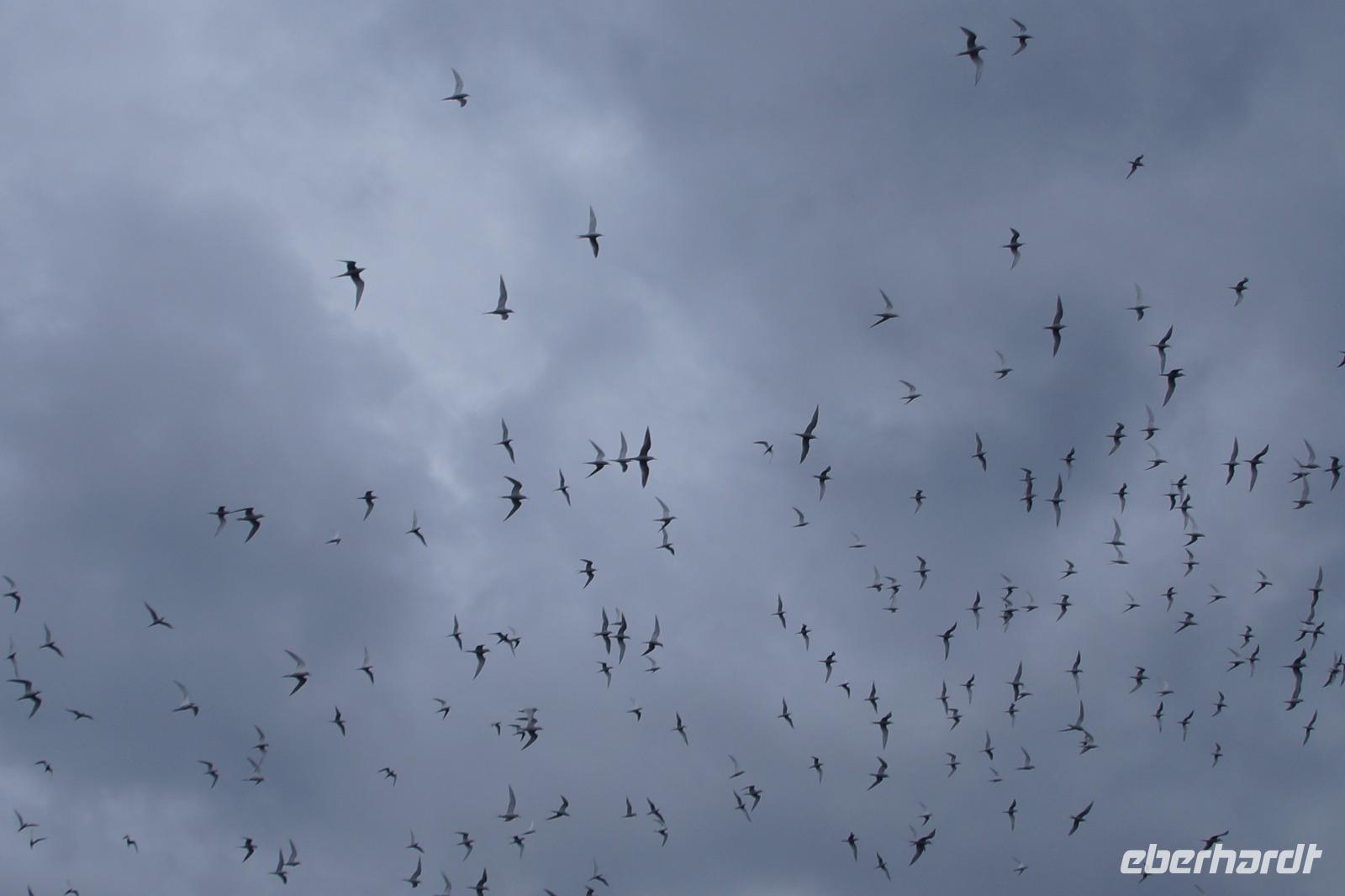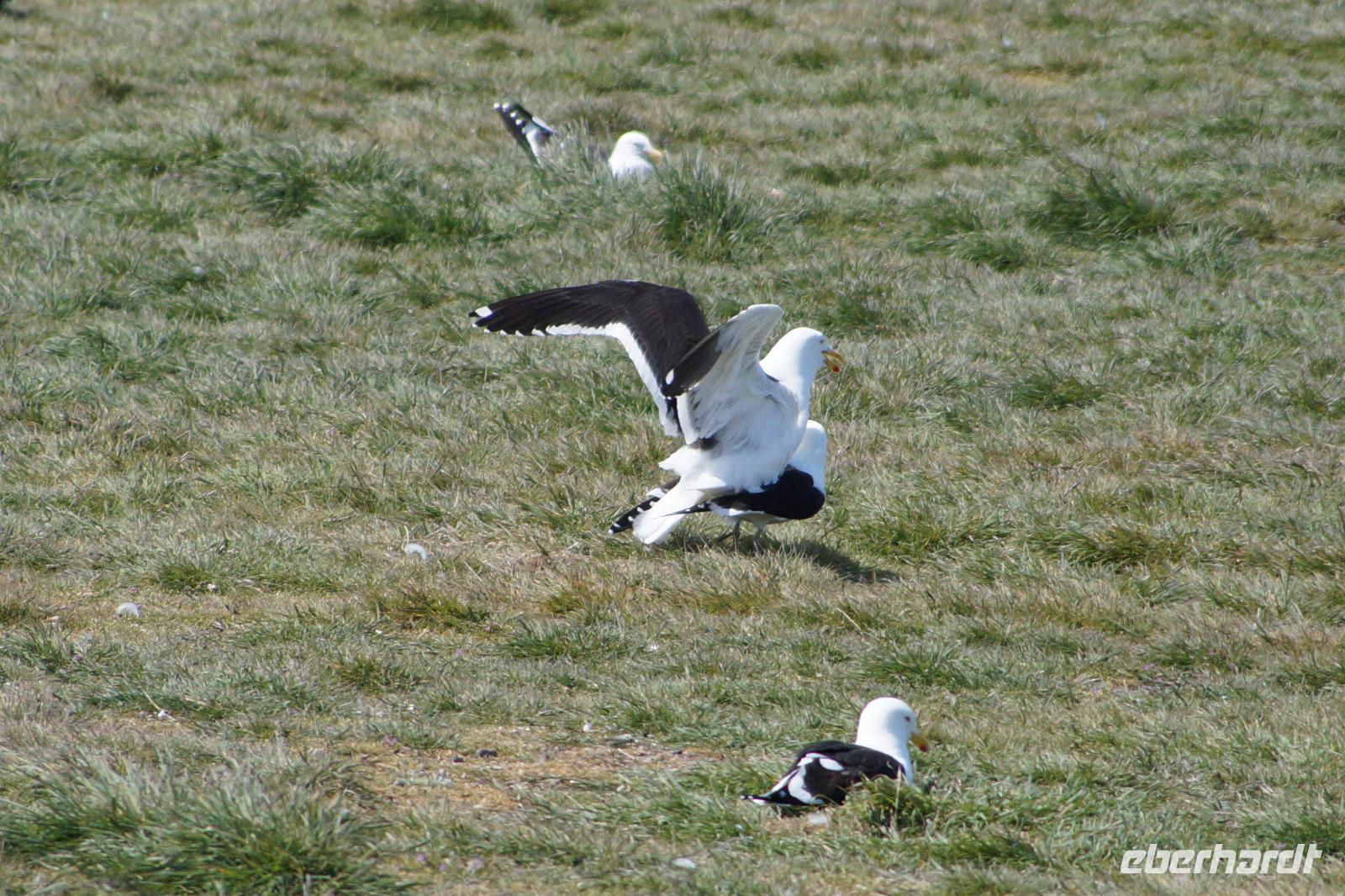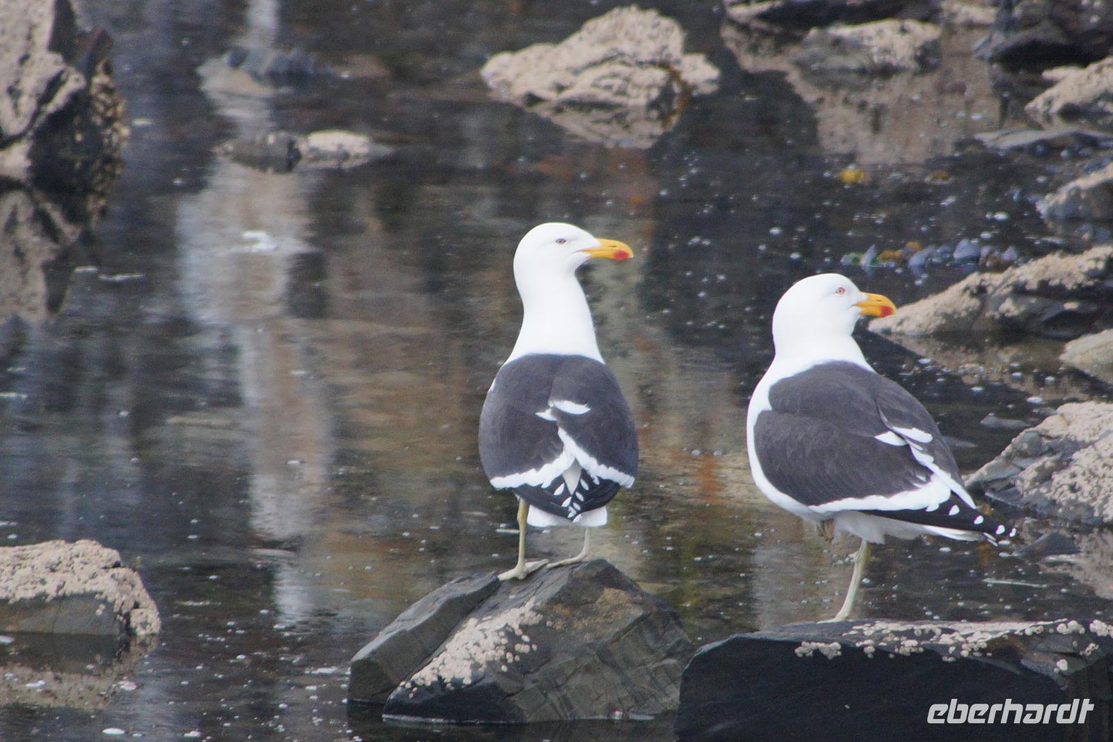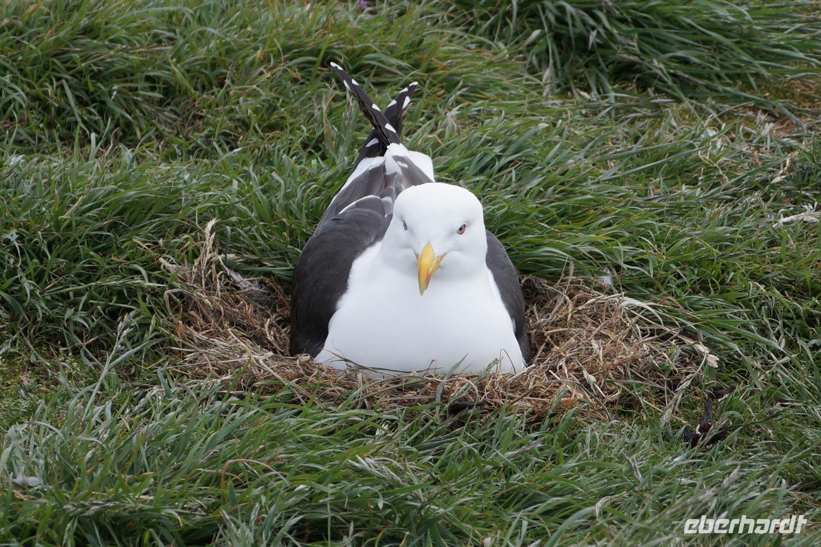 Dann beobachtete Klaus, wie eine Dominikanermöwe einer Artgenossin das Ei aus dem Nest klaute. Mit dem Schnabel hackte es die Schale auf und labte sich an Dotter und Küken. Aber der gegenseitige Eierklau ist nicht das einzige, was die Isla Magdalena zur Kannibaleninsel macht. Häufig stürzen Jungmöwen bei ihren ersten Flugversuchen ab. Dann stürzen sich die in der Absturzzone brütenden Möwen auf die Artgenossin zerhacken diese und verfüttern sie an den eigenen Nachwuchs. Für die Pinguine stellen die Dominkanermöwen jedoch keine Gefahr dar. Deren Nachwuchs wird allenfalls vom Skúa bedroht, der großen Raubmöwe. Diese gilt als der gefährlichste Räuber auf Magdalena, die Eier und Jungtiere aller Vogelarten hier verzehrt.