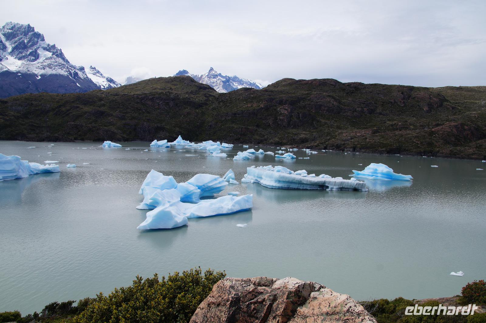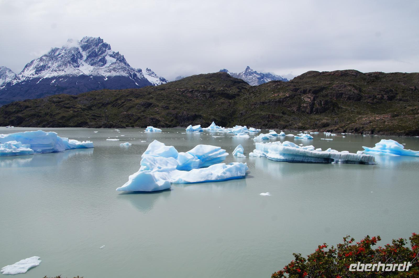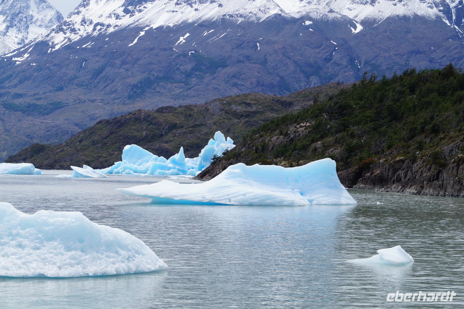 Wir fuhren nun zur Gletscherlagune des Grey-Gletschers, ich fand, dass die Farbe des Wassers der Lagune zum Namen des Sees passte, wenn der Gletscher und seine Lagune auch nicht daher ihren Namen hatten.