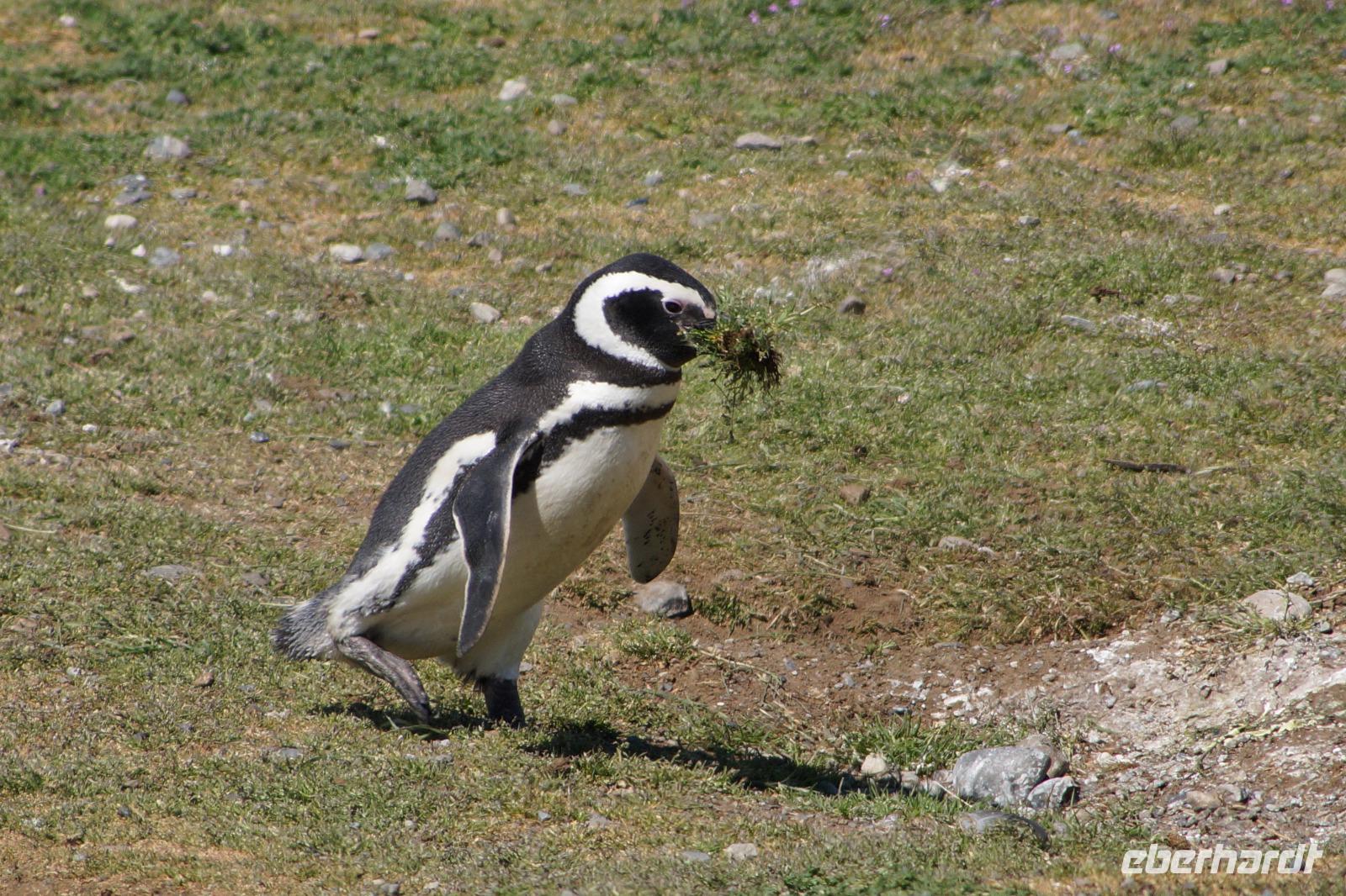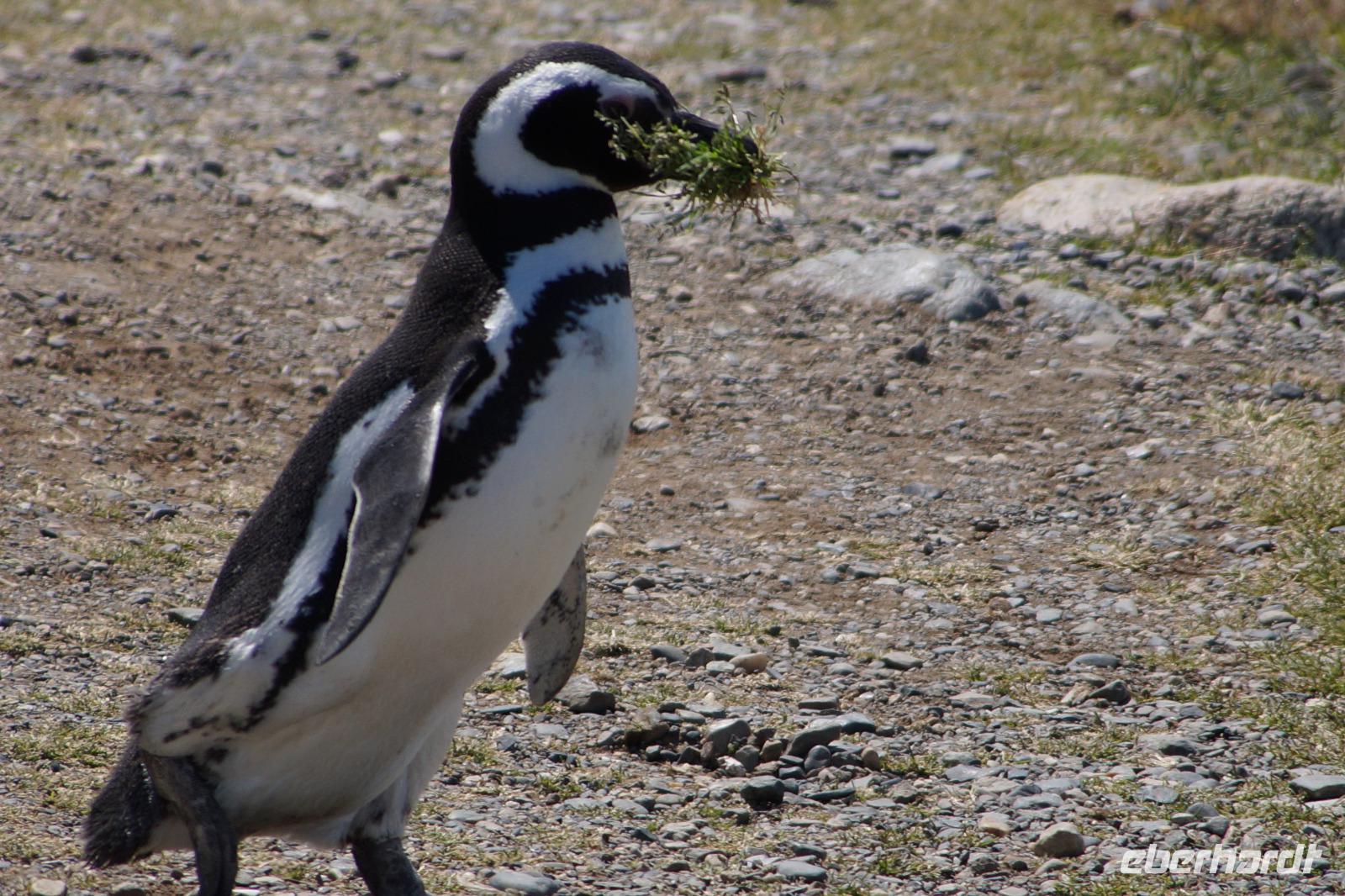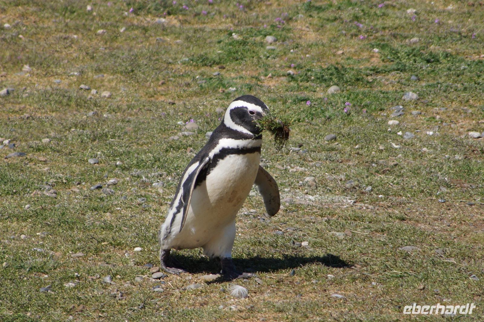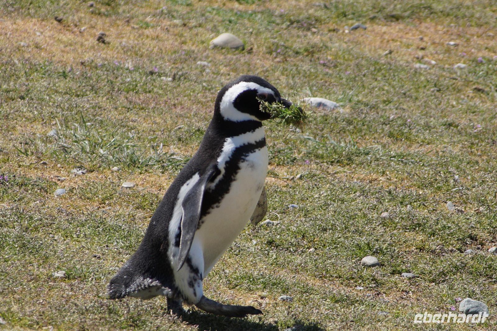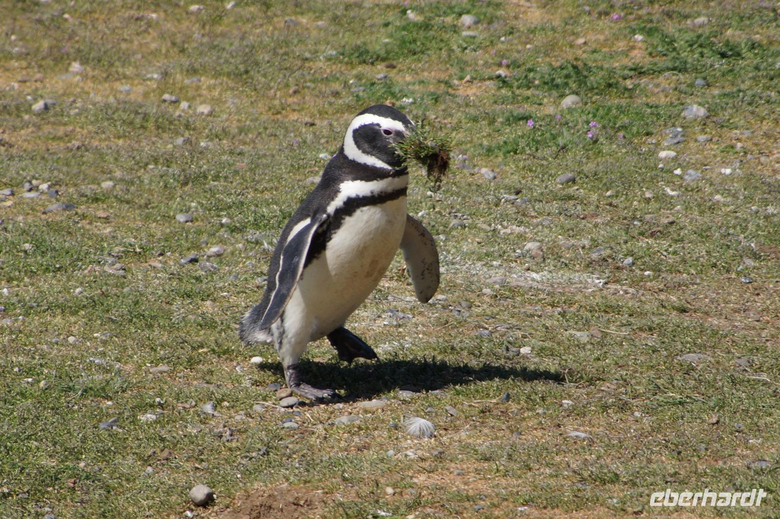 Manche der Pinguine riefen nach ihren Partnern, andere polsterten die Bruthöhlen mit Gras aus. Mit den Bruthöhlen verhält es sich so. Das Pinguinmännchen buddelt eine Bruthöhle. Dann kommt seine Partnerin - Pinguine sind treu - und reißt diese entweder ein und beide bauen gemeinsam eine neue Höhle, oder akzeptiert diese und zieht ein.