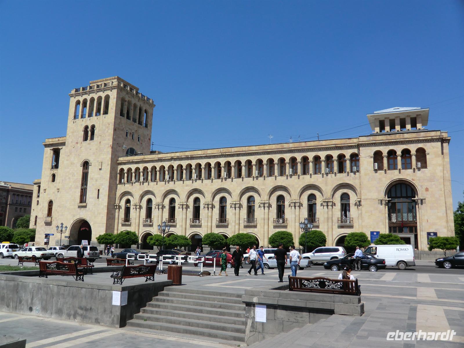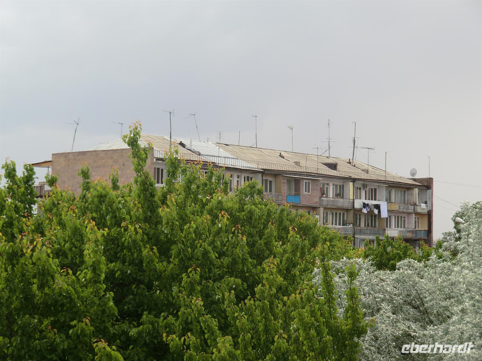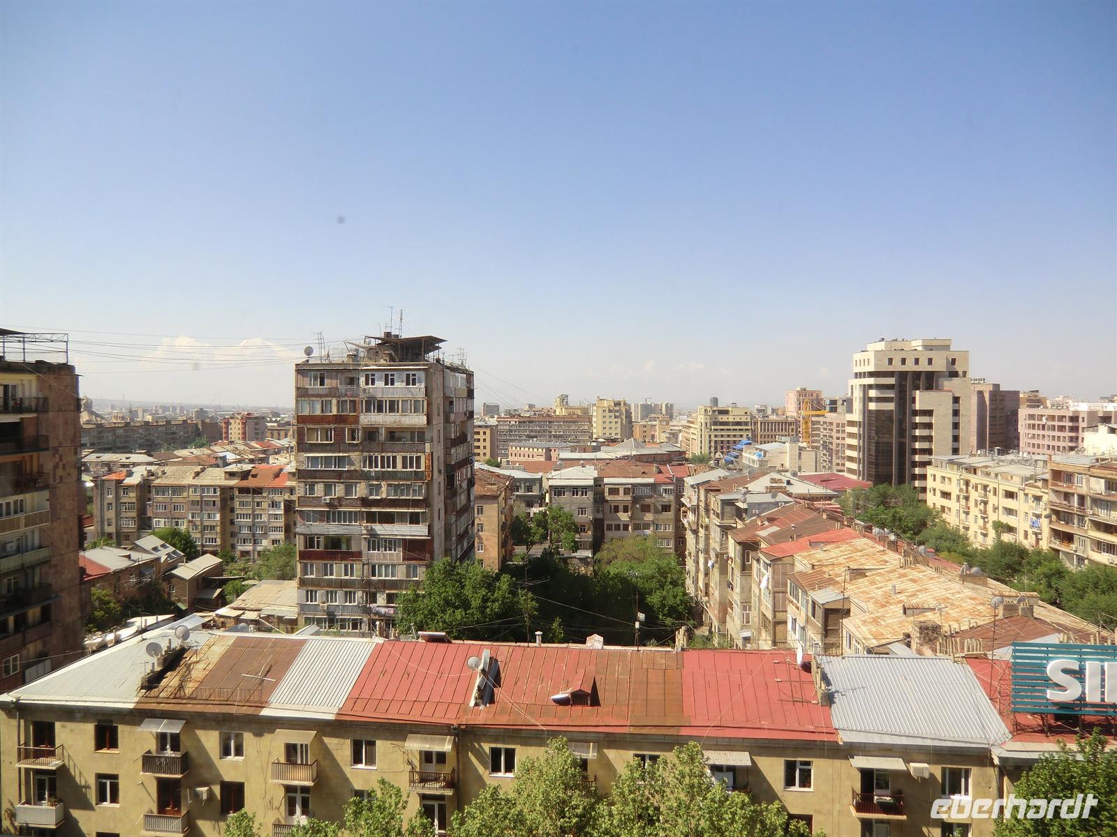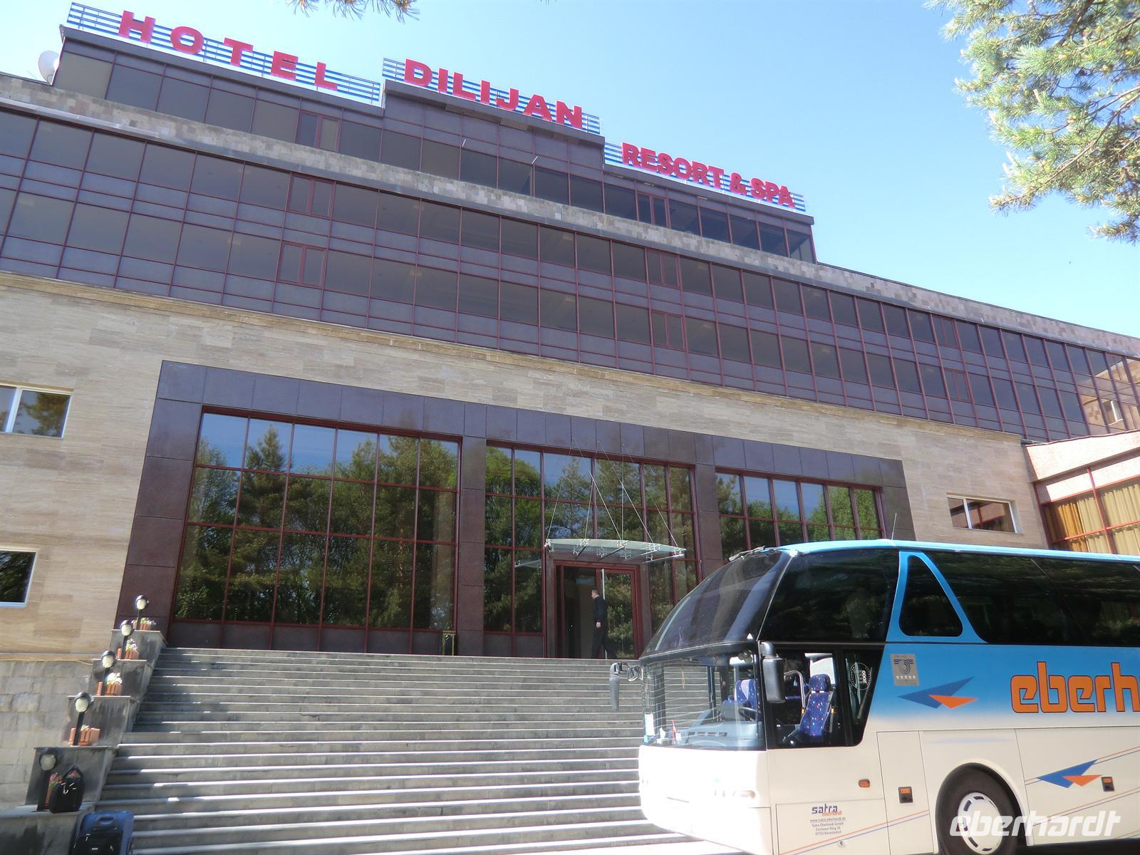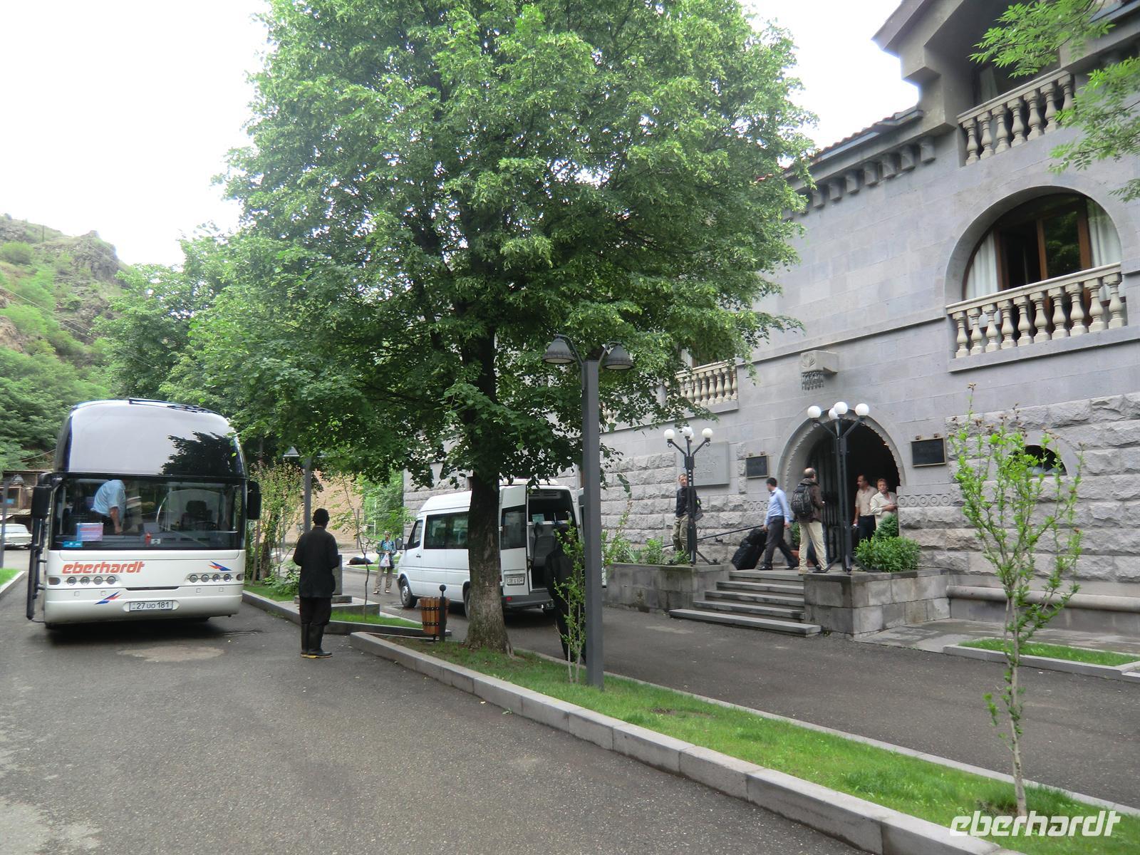 Der Flug verlief frei von Turbulenzen und pünktlich und so wurden wir 4 Uhr von unserer armenischen Reiseleiterin Narine empfangen und in einem komfortablen 5-Sterne Eberhardt-Reisebus zu unserem 4-Sterne Hotel „Ani Plaza“ im Zentrum von Yerevan gebracht. Unsere