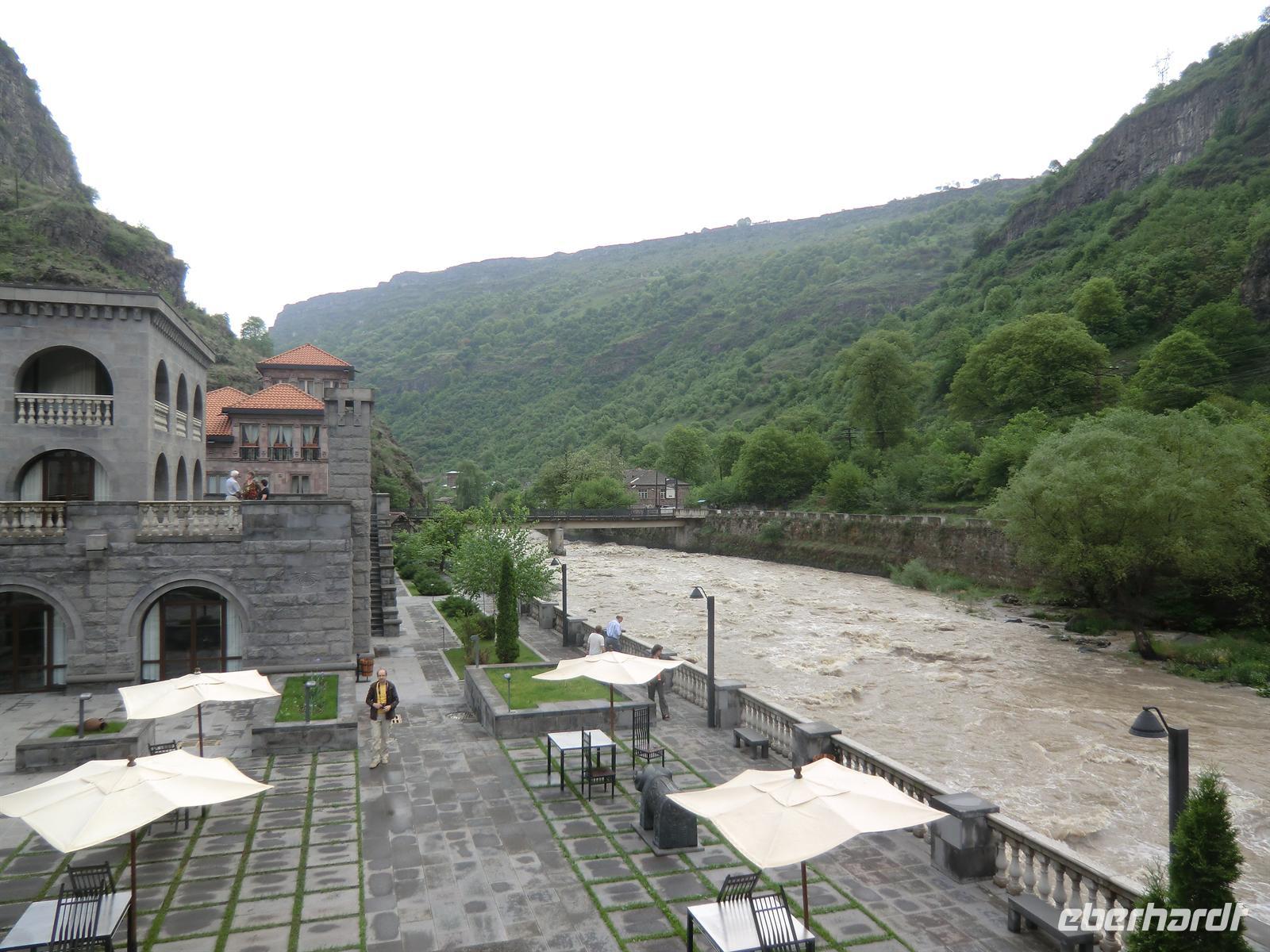 Beschwingt durch diese liebevolle Darbietung fuhren wir entlang grüner Wiesen und imposanter Basaltfelsen über abenteuerliche Serpentinen hinauf zur Festung Amberd und genossen einen wunderbaren Ausblick auf die äußerst idyllische Landschaft. Auf der Weiterfahrt nach Dzoraget legten wir einen Halt in der Bäckerei von Araban ein und staunten nicht schlecht als wir sahen, auf welche kuriose Art und Weise das hiesige Fladenbrot gebacken wird. Wiederum staunten wir am späten Abend über das grandiose4-Sterne Hotel „Avan Dzoraget“, welches uns im Stil eines armenischen Schlosses als Übernachtungsdomizil dienen sollte. Nach einem fürstlichen Abendbrot schlummerten wir begleitet vom Rauschen des prall gefüllten Gebirgsbaches.