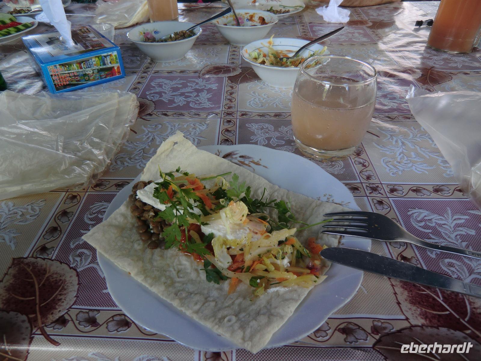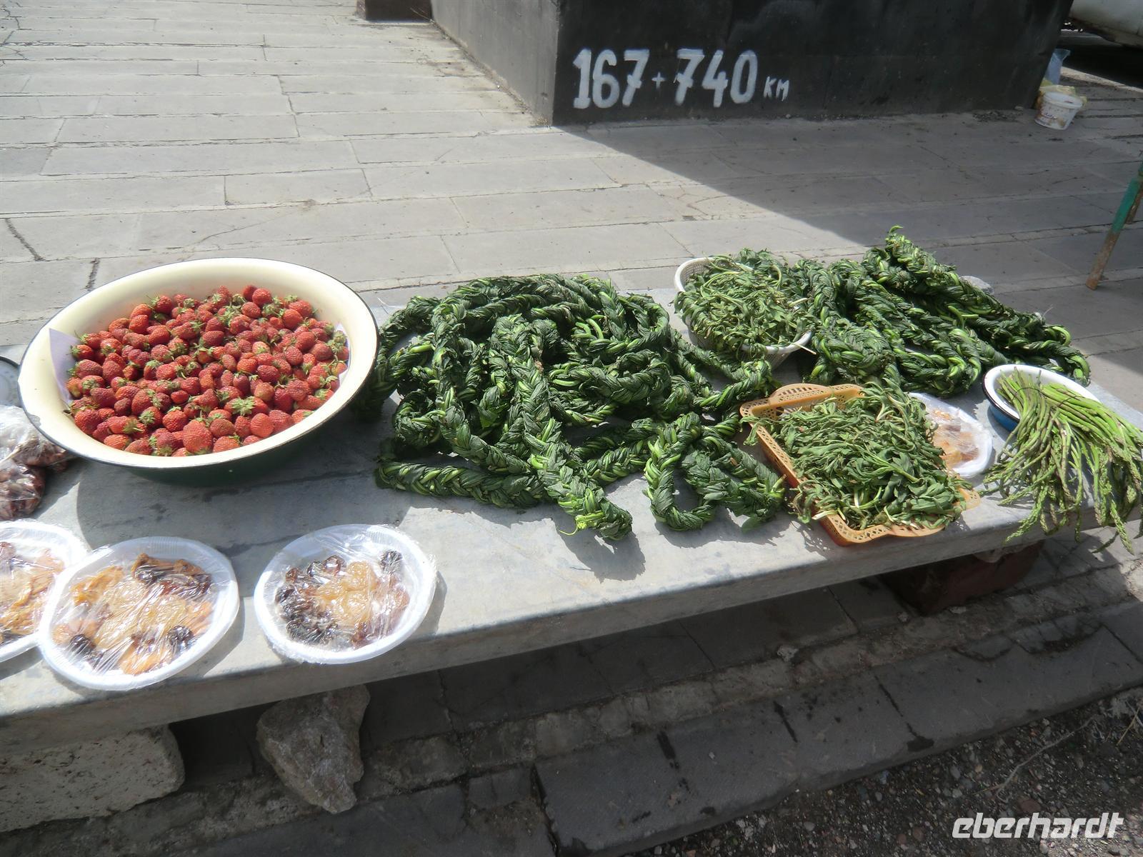 befindet sich in der Geburtsstadt des Flugzeugkonstrukteurs Artjom Iwanowitsch Mikojan, dessen wohl bekannteste Erfindung die eines der meistgebauten Düsenjagdflugzeuge der Welt ist, die „MiG-21“. Auf der Fahrt über die russischen Dörfer mit Fotostopp an der ältesten Brücke Armeniens gab es heute eine kleine süße Bordverpflegung in Form von Konfekt. Lustig ist die Tatsache, dass der Preis von kleinen Schokoriegeln, Konfekt und Bonbons ähnlich wie Obst und Gemüse pro Kilo angegeben wird und die einzelnen Leckerbissen somit je nach Preiskategorie unterschiedlich abgewogen werden müssen. Unser aller Favorit ist war eine Art Praline bestehend aus einer mit Nuss gefüllten Trockenfrucht umhüllt von Schokolade.
