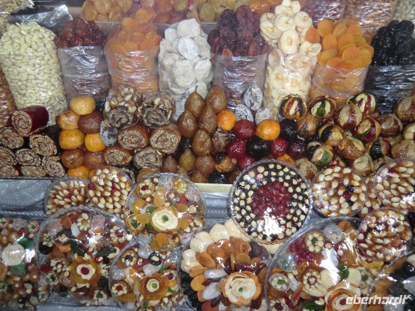 Zu den weiteren Besichtigungspunkten des heutigen Nachmittags zählten die Kaskade und der Obstmarkt mit seinen unzähligen Variationen an köstlichem Trockenobst- und Nussmischungen.