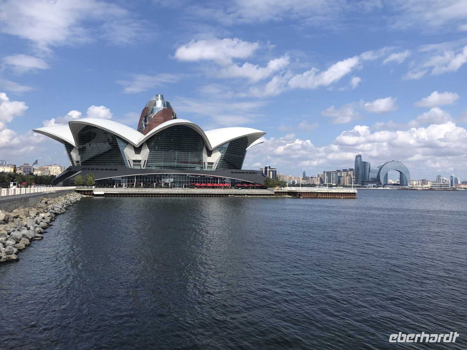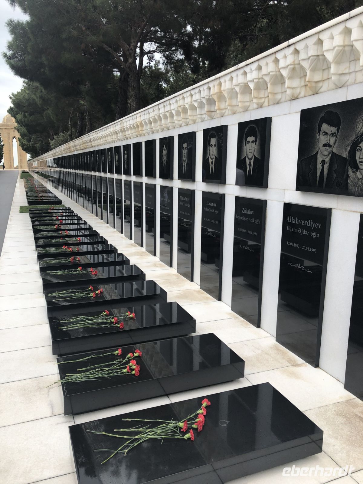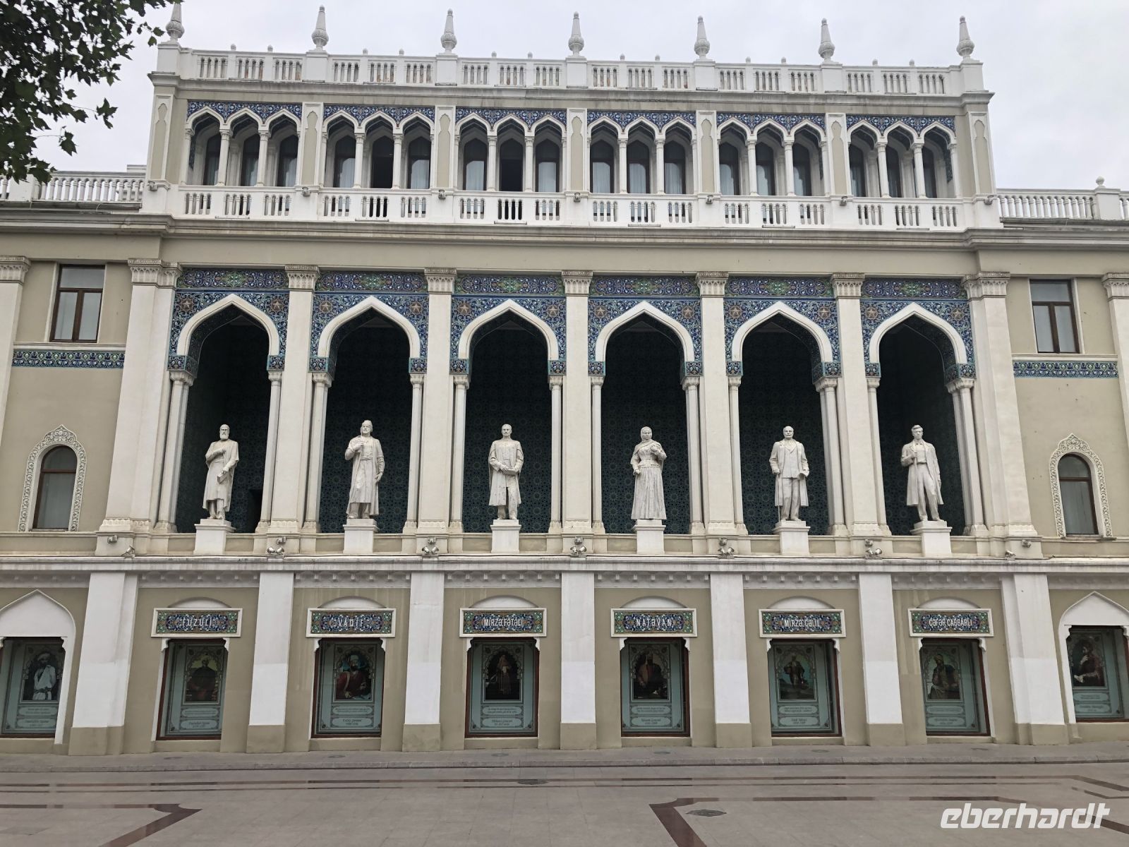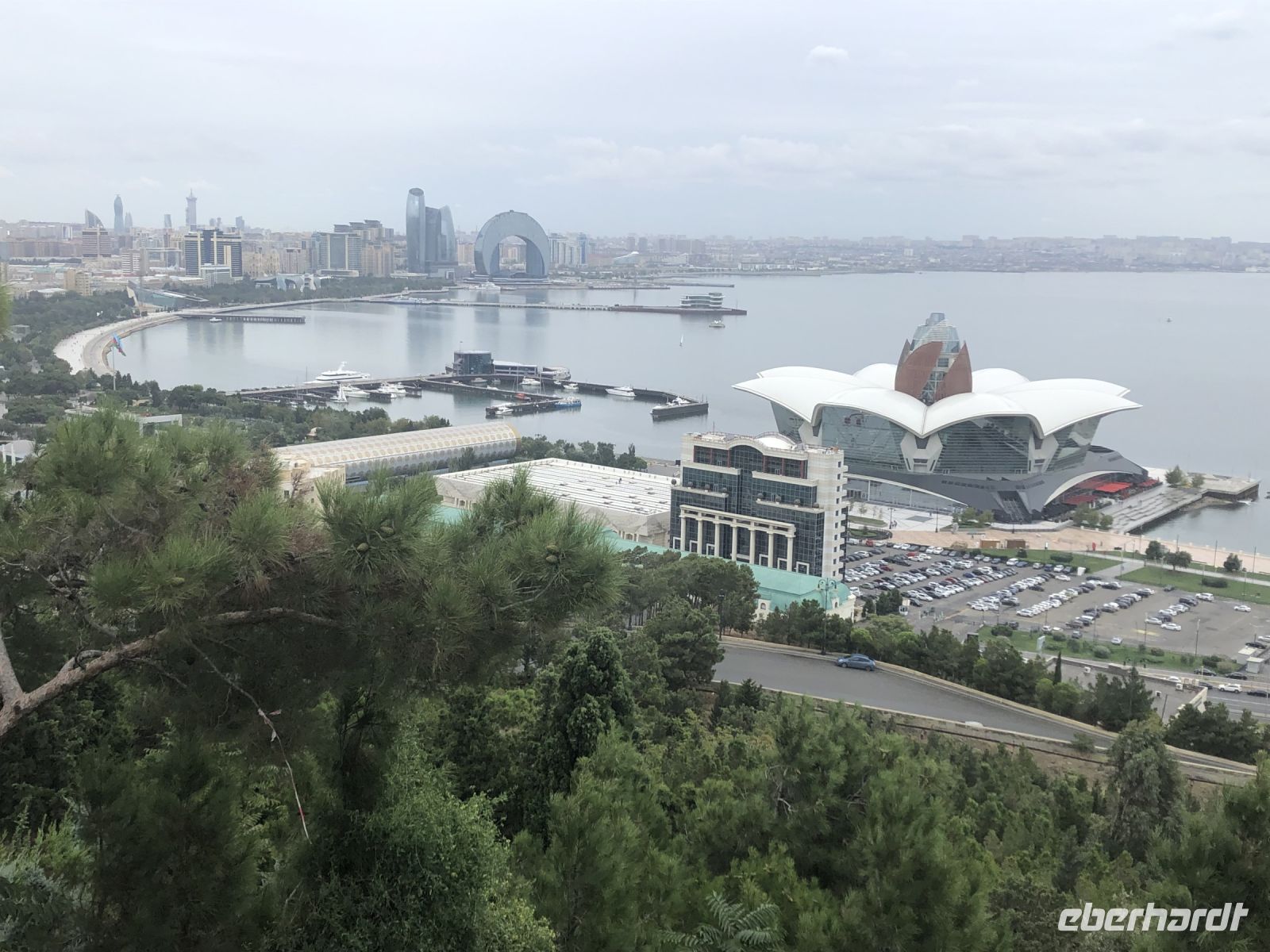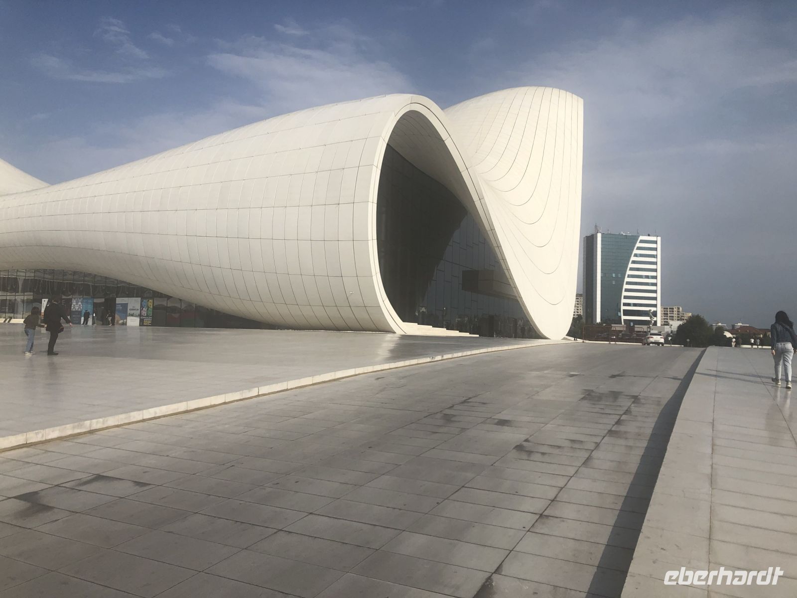 Als nächstes steht der nicht allzu weit entfernte gewaltige Gebäudekomplex des dem früheren Präsidenten gewürdigte Heydar-Aliyev-Kulturzentrums auf unserem Programmzettel: Wellen, Wölbungen und Spitzen des atemberaubenden Bauwerks scheinen miteinander zu verschmelzen. Im Innern genießen wir die Dauerausstellung "Schätze von Aserbeidschan" und erhalten viele anschauliche Informationen über die Geschichte des Landes im 20. Jahrhundert.