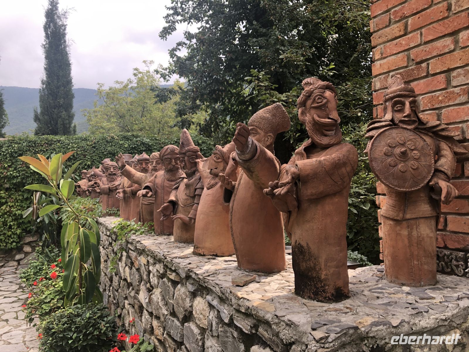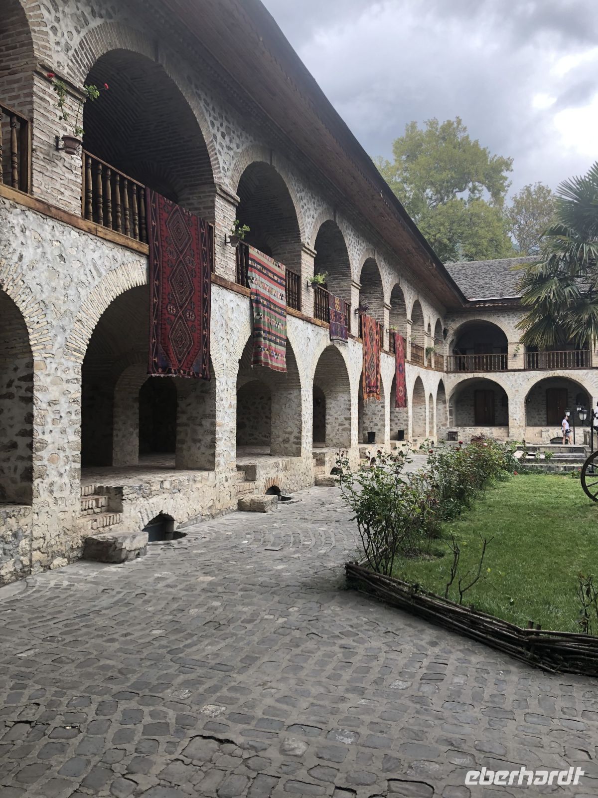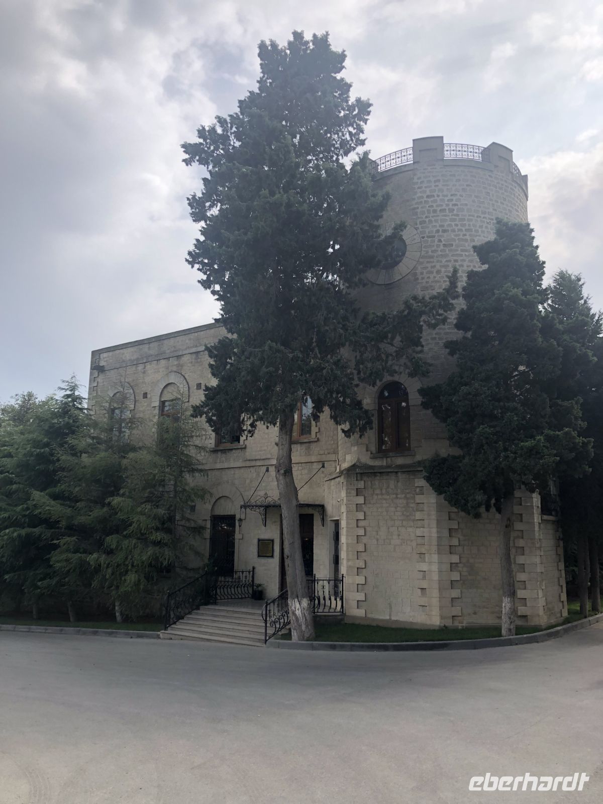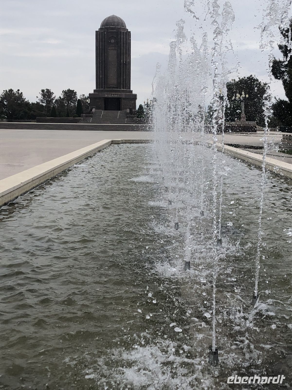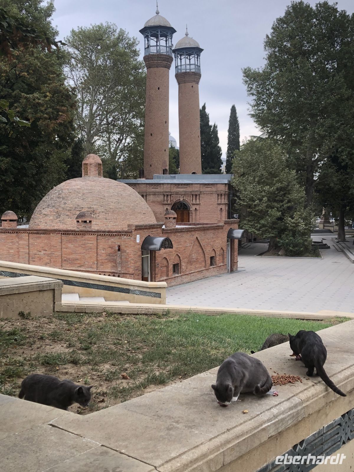 Dann geht es weiter Richtung Ganja, einstmals blühender Handeslplatz an der Seidenstraße nach Tiflis und heute mit über 300000 Einwohnern zweitgrößte Stadt Aserbeidschans - bekannt auch als Lager Kirovabad für deutsche Kriegsgefangene. An der breiten Zufahrtsstraße in die Stadt mit ihren repräsentativen Backsteintoren machen wir längeren Halt am weitläufigen Mausoleum des berühmten mitelalterlichen persischen Dichters Nizami Ganjevi. In der Stadt dann selbst bestaunen wir das mit Tausenden von Flaschen dekorierte "Flaschenhaus" und besuchen eine ältere russisch-orthodoxe Kirche. Wie schon in Baku erwartet uns entlang der Flaniermeile das schön renovierte Zentrum mit dem Rathaus und am eindrucksvollen zentralen Platz die Schah-Abbas-Moschee mit Hamam sowie die wunderschöne Philharmonie, neben der sich gleich unser Vego Hotel befindet.