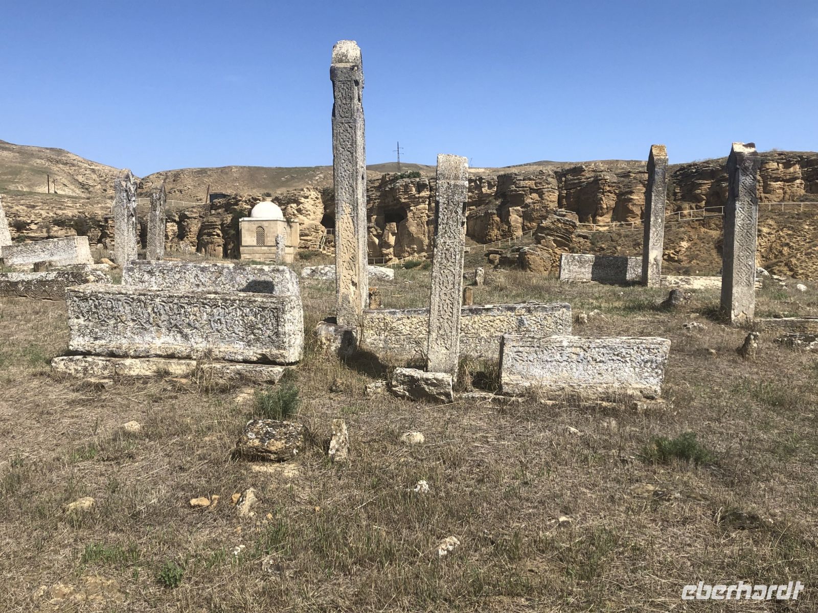 Zunächst geht es aber nach Verlassen der Metropole nach Westen in die Transkaukasische Senke und dabei teilweise entlang der historischen Seidenstraße. Wir fahren durch beeindruckende Wüsten- und Halbwüstenlandschaften und besuchen in Maraza das in einer Hügelhöhle gelegene Mausoleum des Diri-Baba ("Lebendiger Großvater"), eines islamischen Mystikers des 14. Jahrhunderts, sowie den angrenzenden mittelalterlichen Friedhof mit mehreren hundert Grabsteinen.