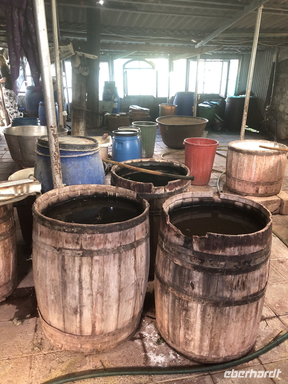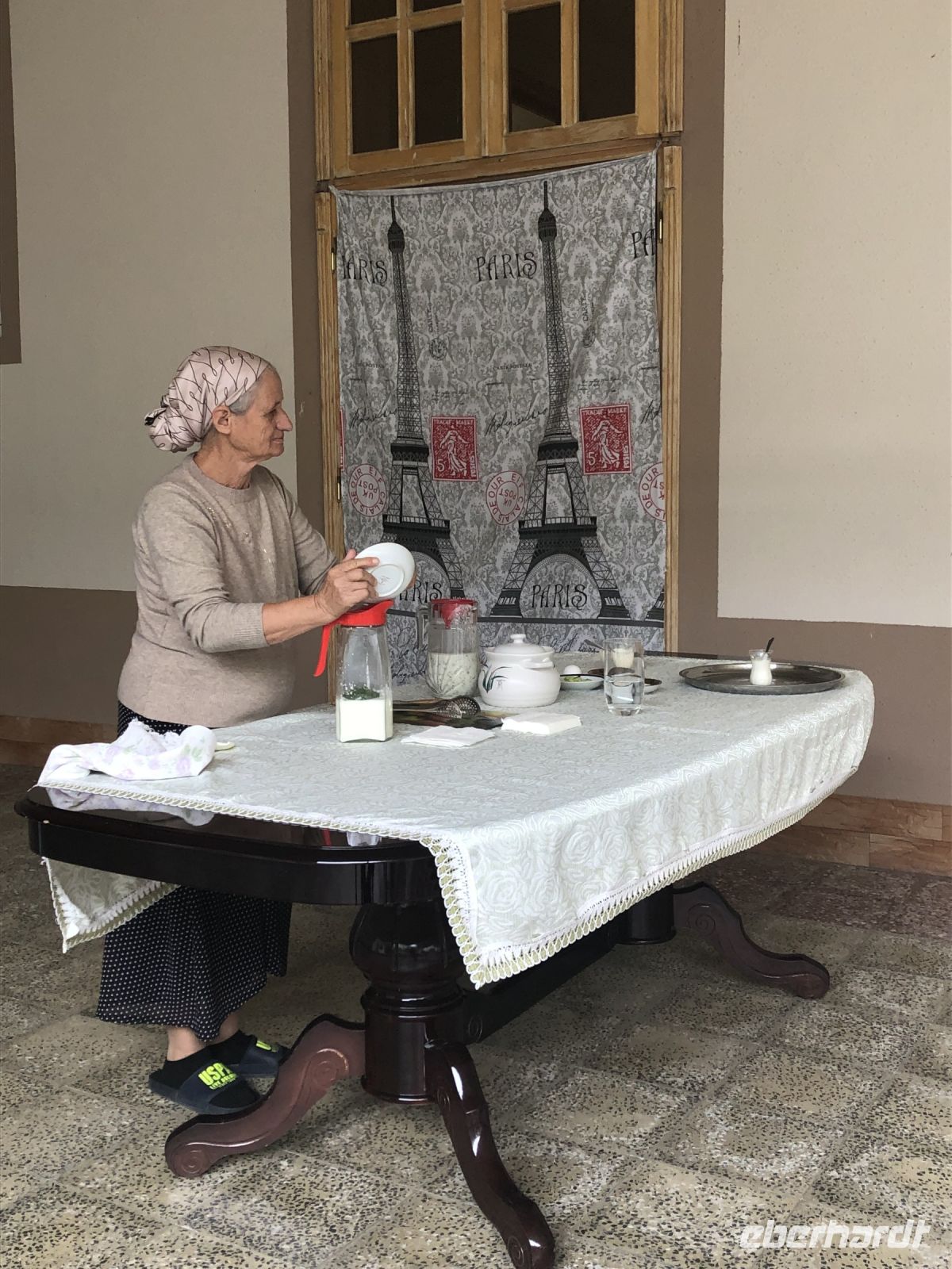 Im Hof des Hauses einer Familie erfahren wir anschließend wie auf traditionelle Weise Joghurt hergestellt wird.