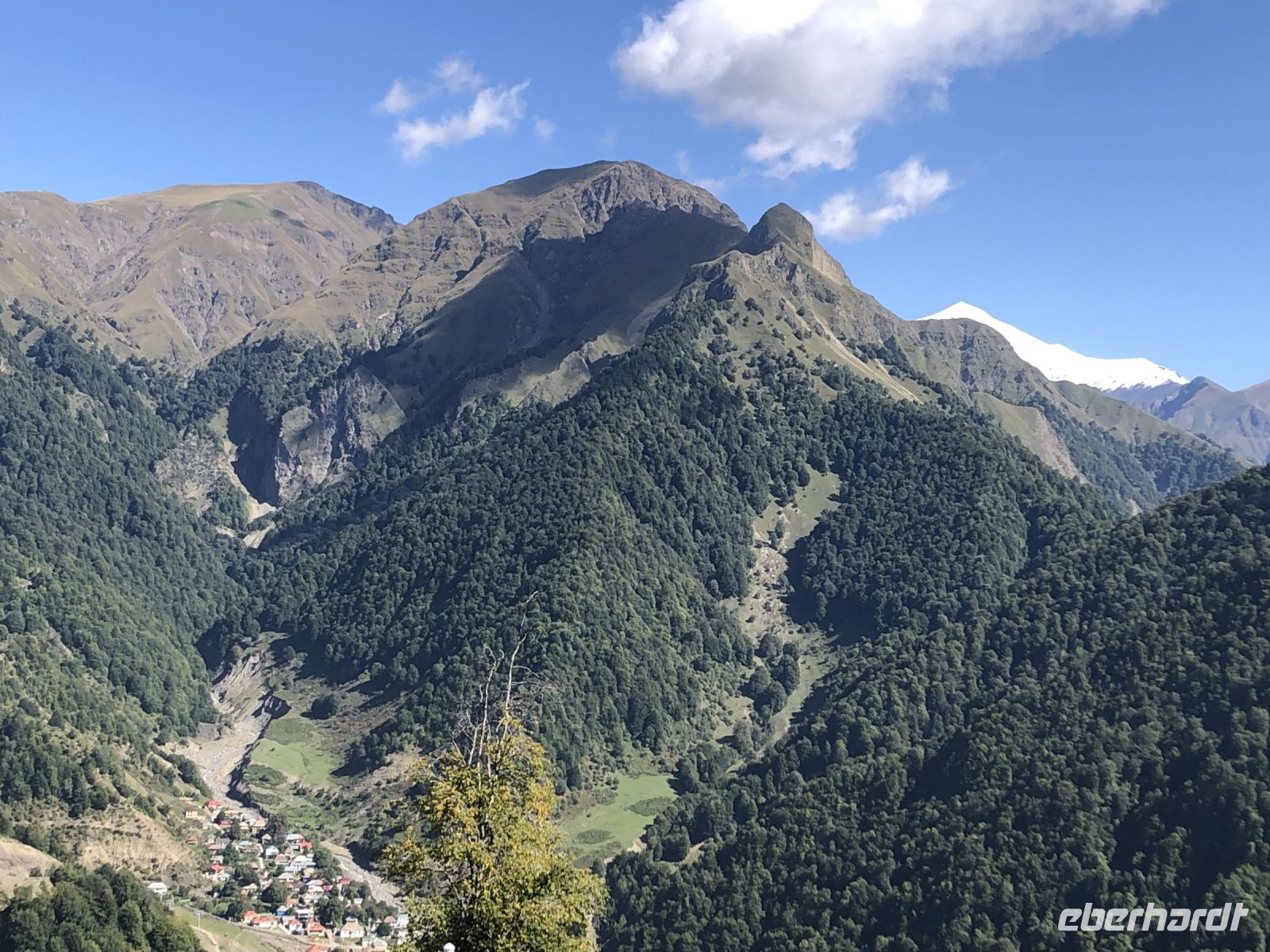 Herrliches Gebirgspanorama und ein Bergdorf mit uralter christlicher Kirche