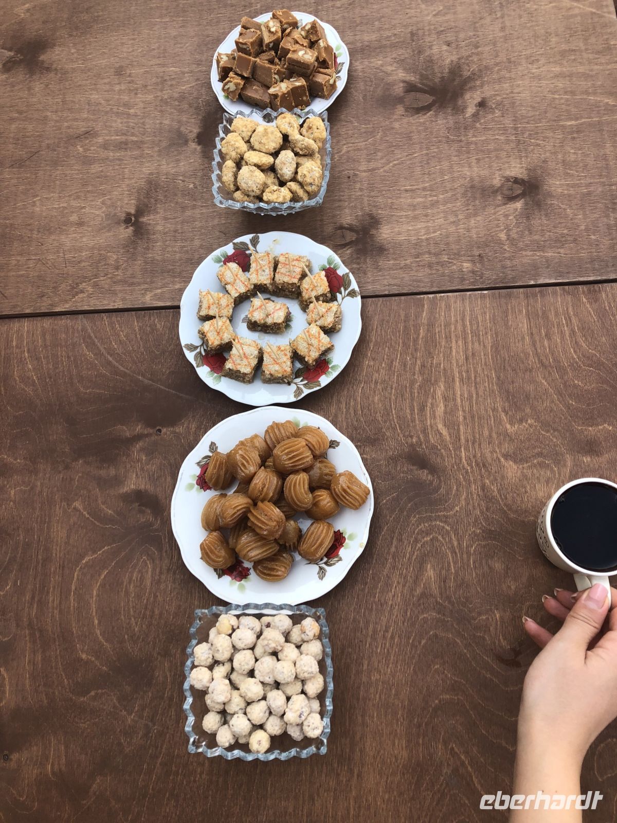 Am Vormittag besuchen wir den großen farbenprächtigen orientalischen Basar mit seinen überdachten Ständen voll mit Gewürzen, Früchten und anderen landwirtschaftlichen Produkten. Auch Textilien und Haushaltsartikel sind zu finden. Gleich anschließend lernen wir in einem kleinen Familienbetrieb die Herstellung der Süßwarenspezialität Halva kennen und verkosten verschiedene Sorten gemütlich zum dargereichten Tee.