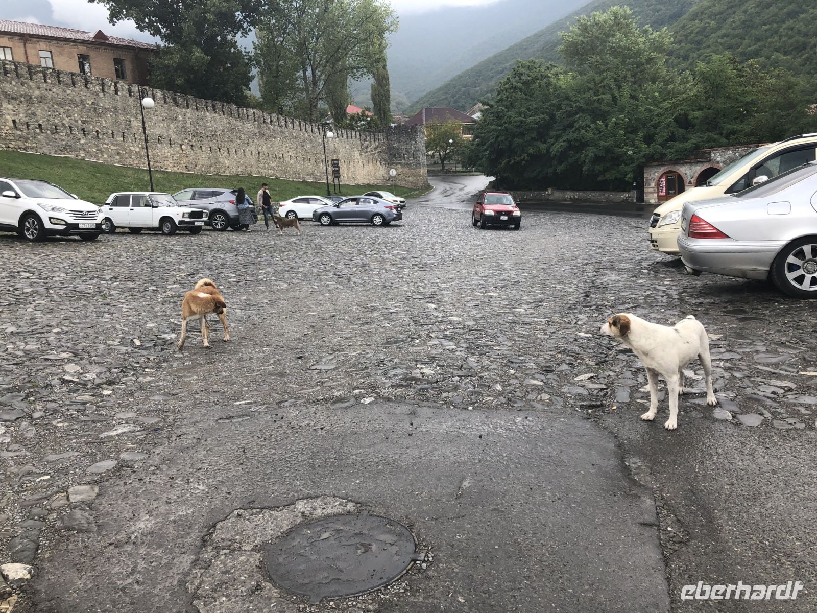 Der ganze heutige Tag gehört Sheki, der ältesten Stadt des Landes. Im ersten nachchristlichen Jahrhundert war sie einer der größten Orte im damaligen Albanien mit christlichen Tempeln und Kirchen wie in Kis. Eingebettet in die naheliegenden bewaldeten Berge wirkt sie trotz ihrer knapp 70000 Einwohner rundum ländlich: Wunderschöne alte Steingebäude mit Ziegeldächern, auf den Straßen sind fast nur Männer zu sehen sowie zahlreiche herumstreunende Hunde.