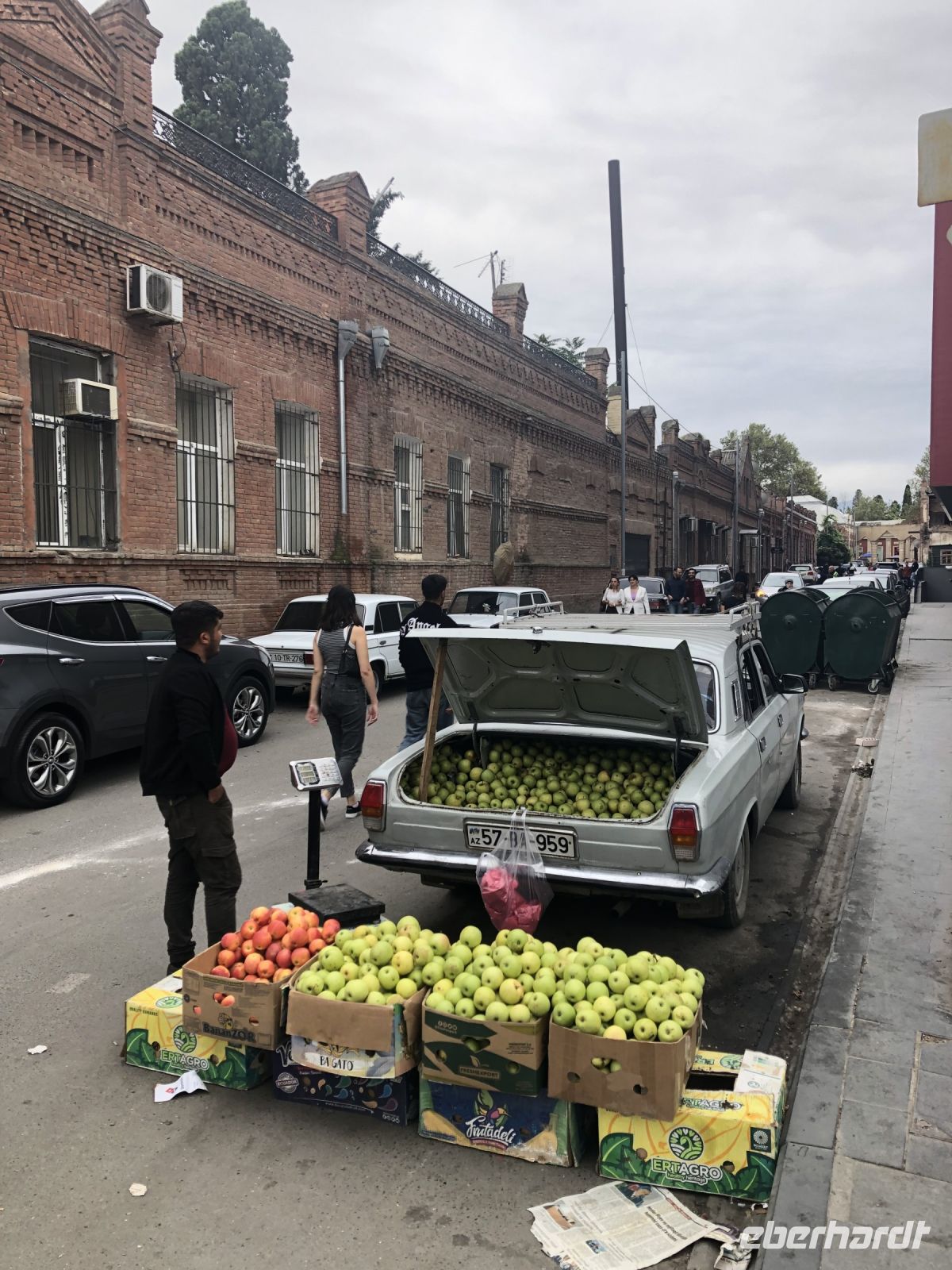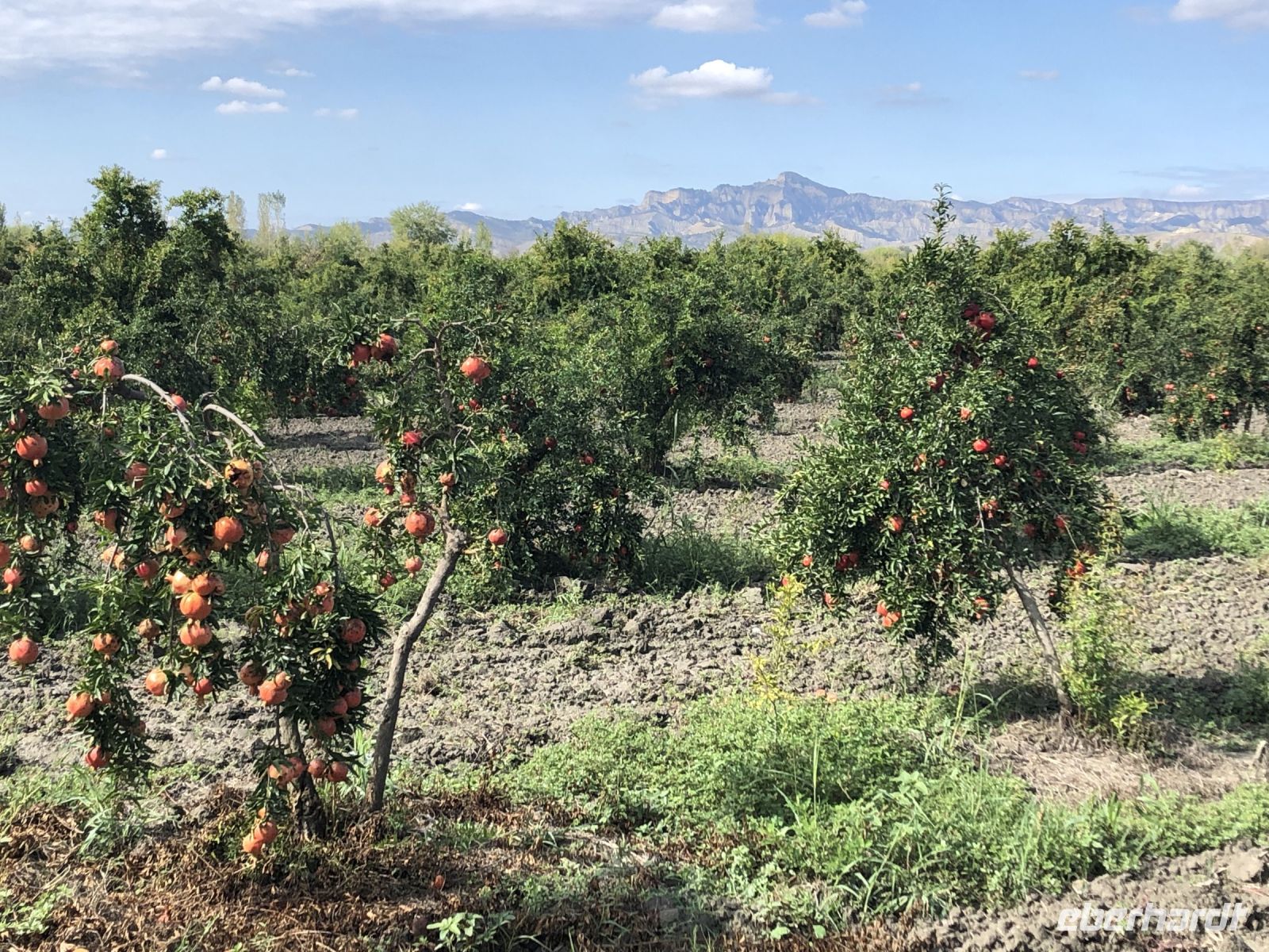 Unsere weitere lange und etwas eintönige Reise durch die Transkaukasische Ebene wird dann aufgelockert durch den Besuch einer riesigen Granatapfel-Plantage in der Region Göytchay, wo wir alles über diese Frucht erfahren und auch geschmacklich bewerten dürfen.