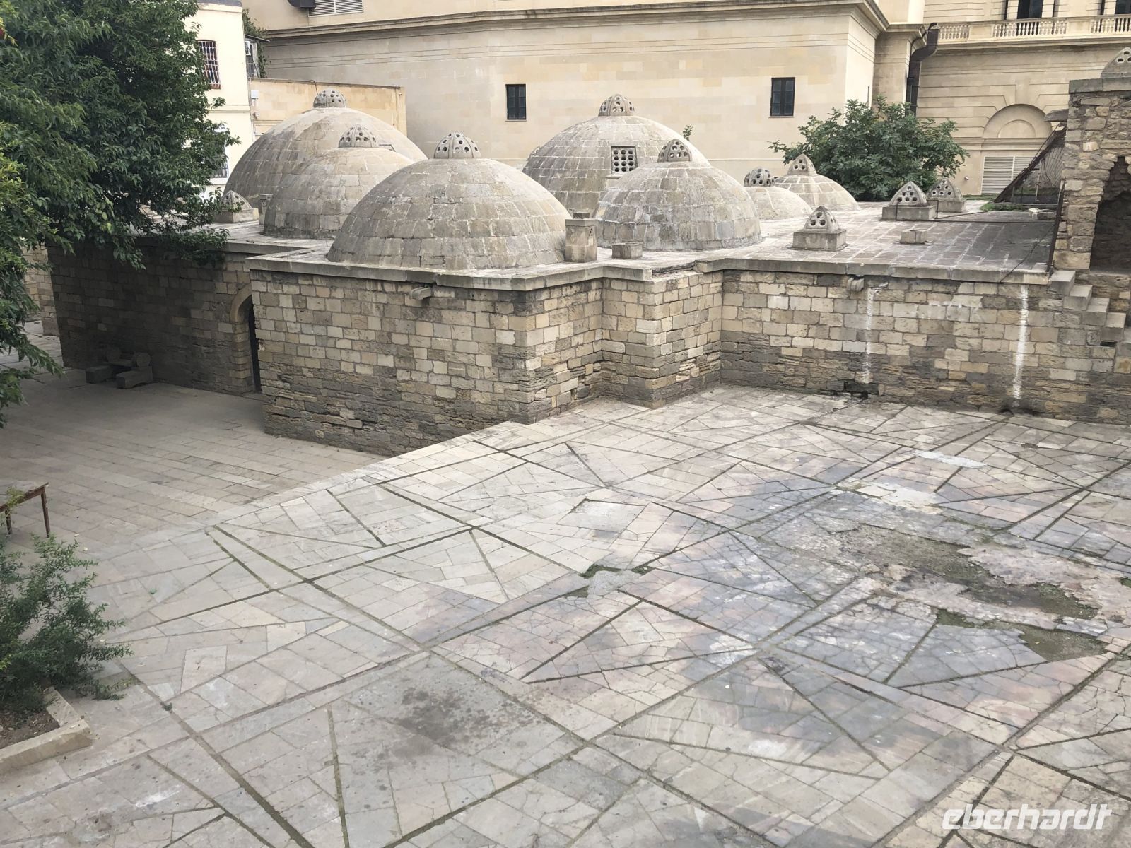 Einige nutzen die Zeit bis zum Abendessen zu Spaziergängen oder gehen in die nahegelegene moderne Shopping Mall. Und zu unserer Überraschung werden wir zum einzigen Mal in Aserbeidschan von dem einen oder anderen Bettler angesprochen.