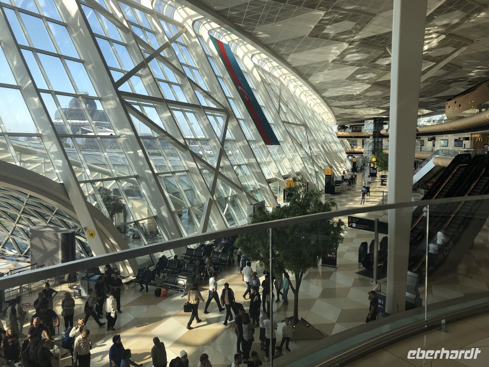 Von Turkish Airlines weiterhin mit einer Mahlzeit gut versorgt erreichen wir nach weiteren zweieinhalb Stunden am Abend Baku.