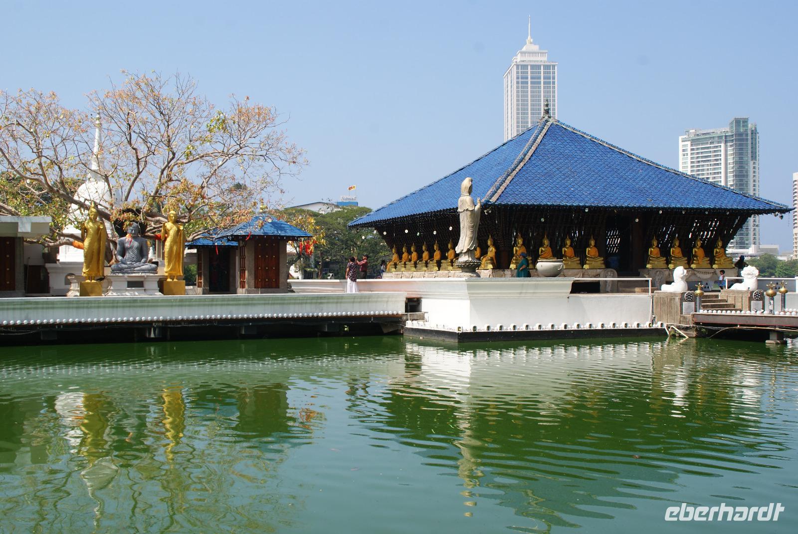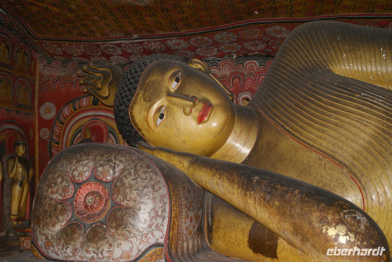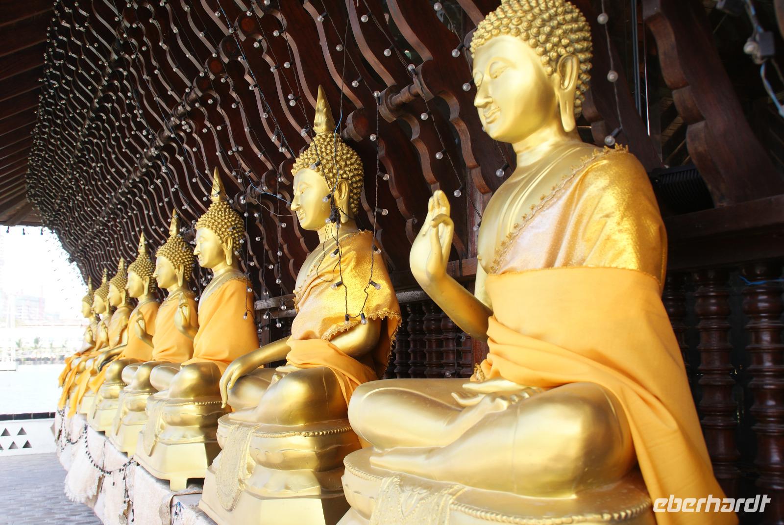 Bestens geschlafen und königlich gefrühstückt begeben wir uns auf Citytour Colombo. Wir lernen unseren gut gelaunten und sehr zuvorkommenden Busfahrer Chandara kennen, der uns sicher durch die Stadt fährt. Vorbei am hektischen Großstadtleben (850.000 Menschen leben im Zentrum) huschen wir zwischen endlosen Tuk Tuks, Minibussen, Motorradfahrern und Passanten hindurch und Wilson, unser sehr gut deutsch sprechender Reiseleiter informiert uns ausführlich über Land und Leute. Wir erfahren, dass man sich in Sri Lanka mit „Ayubowan" begrüßt, sich somit ein langes und gesundes Leben wünscht. Es u.a. in Sri Lanka Singhalesen und Tamilen gibt und die Singhalesen übersetzt das „Löwenvolk" sind. Wir stoppen verschiedene Male um beispielsweise die Promenade in der Nähe des Containerhafens anzuschauen, halten am Leuchtturm und staunen über die 260 Hektar Neuland, die hier dem Meer abgewonnen werden. Weiter geht es entlang verschiedener Bankgebäude, der Residenz des Präsidenten, dem Hafengebäude und dem historischen 1. Kaufhaus Sri Lankas „Cargills", welches einst von den Briten gebaut wurde. Am Hindutempel Kowila entstehen tolle Aufnahmen und anschließend verweilen wir im berühmten Gangarama Tempel und staunen über viele Exponate, die dort aus der ganzen Welt zusammengetragen wurden. Eine stille Oase im Großstadtdschungel. Bevor wir unsere Rückfahrt antreten, besichtigen wir noch die Unabhängigkeitshalle. Wilson erzählt uns die schöne Geschichte zu unserem Hotel, welches Sir Maitland, einst seiner Geliebten, einer einheimischen Tänzerin namens Lavinia widmete. Leider nahm die Liebesgeschichte kein Happy End, nach Bekanntgabe deren Liebschaft, wurde Sir Maitland nach England zurückbeordert. Im Hotel zurückgekehrt erwartet uns Eberhardt Gäste ein exklusives Schaukochen und es werden 5 Gerichte mit frisch gebratenem Reis für uns und vor unseren Augen mit vielen Erklärungen gekocht. Wir staunen über die vielen einheimischen Gewürze, die den Speisen zugeführt werden... All dies dürfen wir anschließend verzehren und genießen danach geruhsame Nachmittagsstunden, bevor wir uns zum Abendessen im Hotelrestaurant wiedersehen. Heute Abend sind wir uns einig, bei der guten Kost muss morgen der Höhlentempel auf jeden Fall erklommen werden! Beim Rauschen des Meeres, welches bis zu unseren Zimmern durchdringt, finden wir schnell einen wohlverdienten Schlaf...