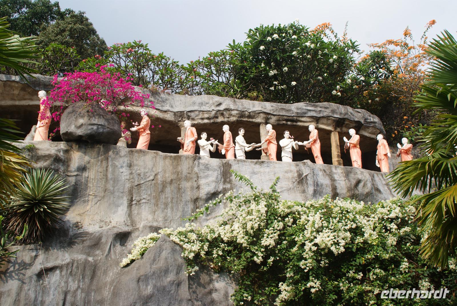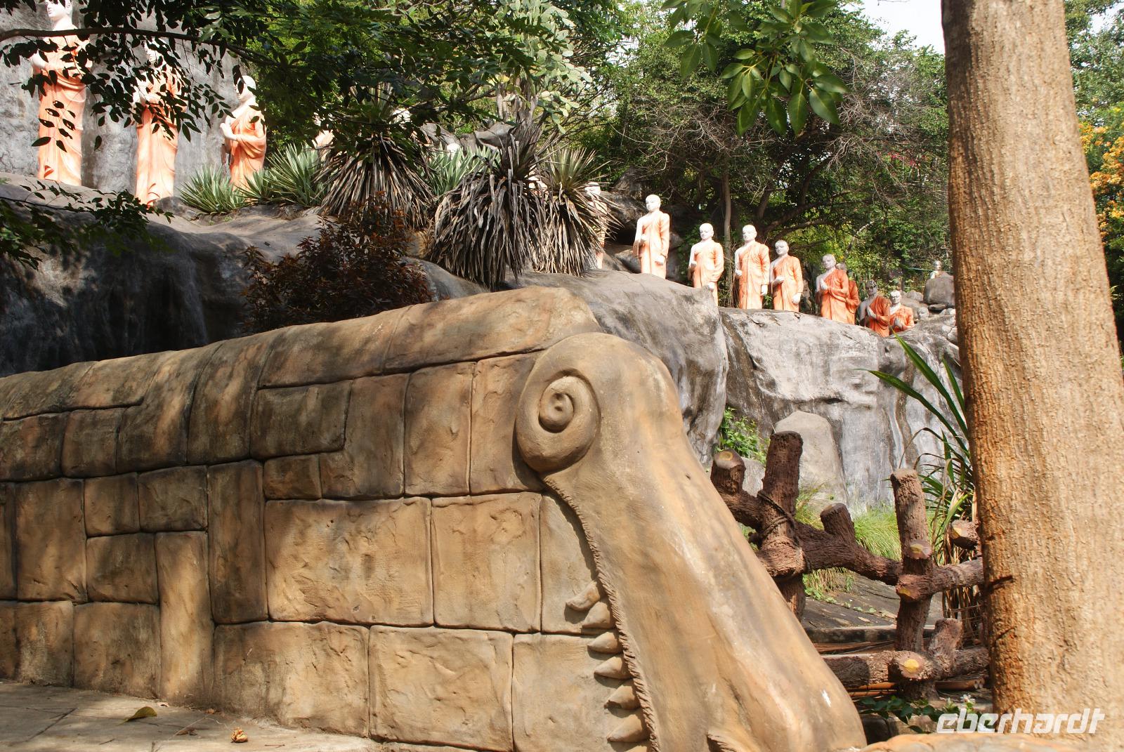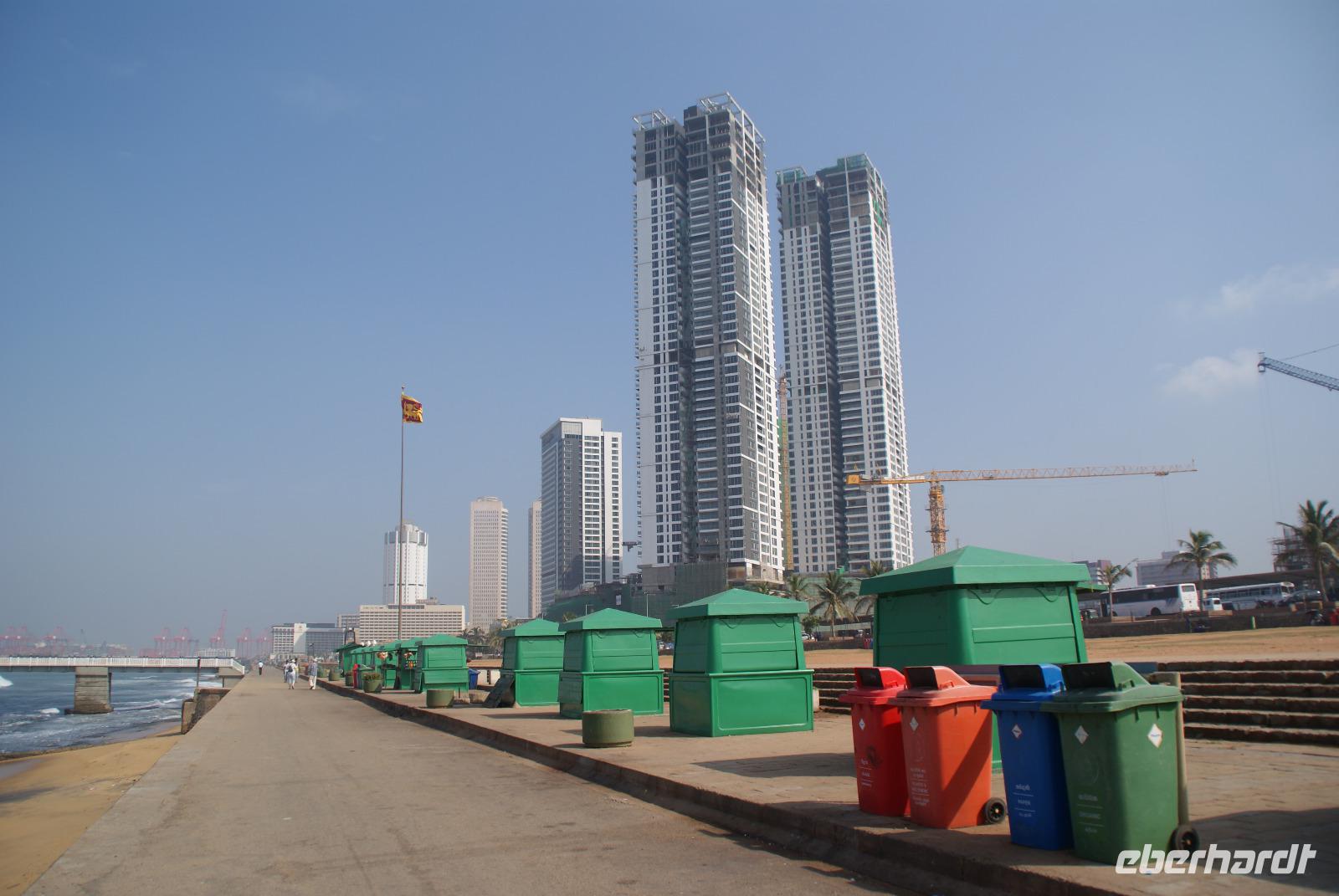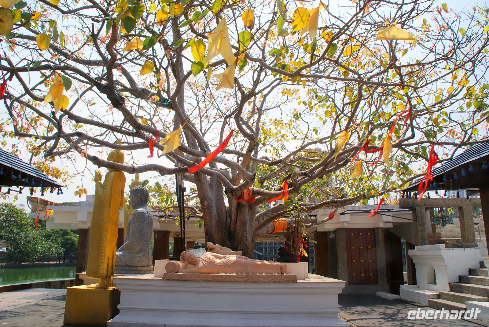 Bestens geschlafen und königlich gefrühstückt begeben wir uns auf Citytour Colombo. Wir lernen unseren gut gelaunten und sehr zuvorkommenden Busfahrer Chandara kennen, der uns sicher durch die Stadt fährt. Vorbei am hektischen Großstadtleben (850.000 Menschen leben im Zentrum) huschen wir zwischen endlosen Tuk Tuks, Minibussen, Motorradfahrern und Passanten hindurch und Wilson, unser sehr gut deutsch sprechender Reiseleiter informiert uns ausführlich über Land und Leute. Wir erfahren, dass man sich in Sri Lanka mit „Ayubowan" begrüßt, sich somit ein langes und gesundes Leben wünscht. Es u.a. in Sri Lanka Singhalesen und Tamilen gibt und die Singhalesen übersetzt das „Löwenvolk" sind. Wir stoppen verschiedene Male um beispielsweise die Promenade in der Nähe des Containerhafens anzuschauen, halten am Leuchtturm und staunen über die 260 Hektar Neuland, die hier dem Meer abgewonnen werden. Weiter geht es entlang verschiedener Bankgebäude, der Residenz des Präsidenten, dem Hafengebäude und dem historischen 1. Kaufhaus Sri Lankas „Cargills", welches einst von den Briten gebaut wurde. Am Hindutempel Kowila entstehen tolle Aufnahmen und anschließend verweilen wir im berühmten Gangarama Tempel und staunen über viele Exponate, die dort aus der ganzen Welt zusammengetragen wurden. Eine stille Oase im Großstadtdschungel. Bevor wir unsere Rückfahrt antreten, besichtigen wir noch die Unabhängigkeitshalle. Wilson erzählt uns die schöne Geschichte zu unserem Hotel, welches Sir Maitland, einst seiner Geliebten, einer einheimischen Tänzerin namens Lavinia widmete. Leider nahm die Liebesgeschichte kein Happy End, nach Bekanntgabe deren Liebschaft, wurde Sir Maitland nach England zurückbeordert. Im Hotel zurückgekehrt erwartet uns Eberhardt Gäste ein exklusives Schaukochen und es werden 5 Gerichte mit frisch gebratenem Reis für uns und vor unseren Augen mit vielen Erklärungen gekocht. Wir staunen über die vielen einheimischen Gewürze, die den Speisen zugeführt werden... All dies dürfen wir anschließend verzehren und genießen danach geruhsame Nachmittagsstunden, bevor wir uns zum Abendessen im Hotelrestaurant wiedersehen. Heute Abend sind wir uns einig, bei der guten Kost muss morgen der Höhlentempel auf jeden Fall erklommen werden! Beim Rauschen des Meeres, welches bis zu unseren Zimmern durchdringt, finden wir schnell einen wohlverdienten Schlaf...