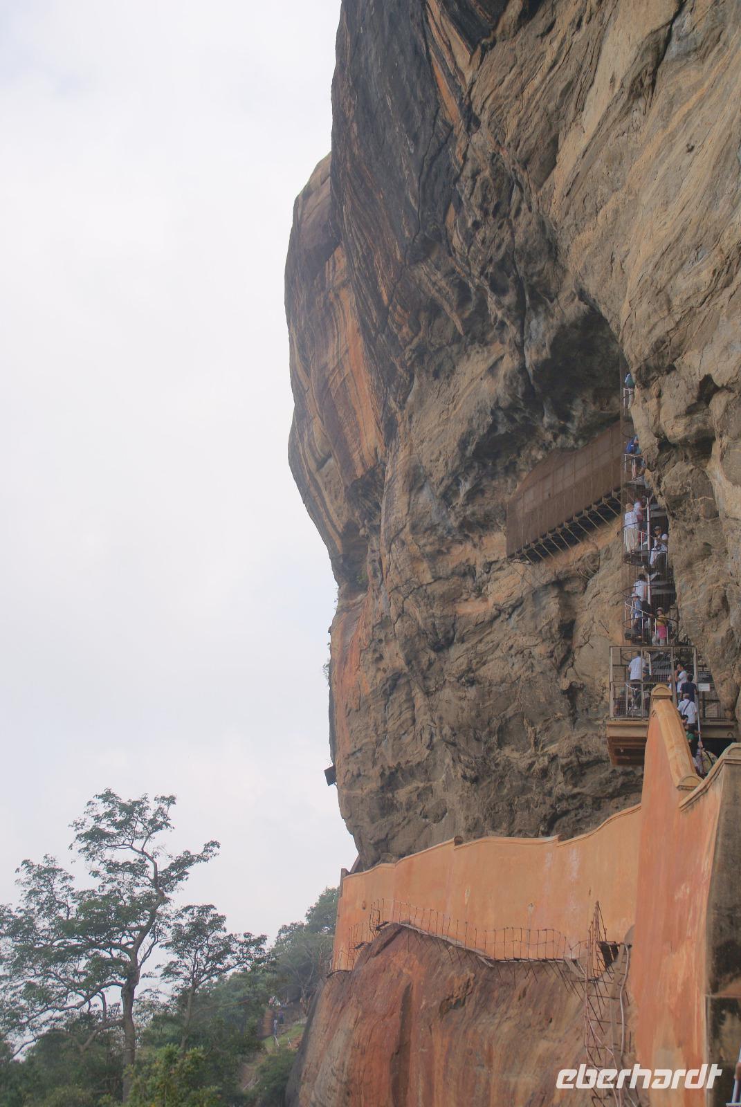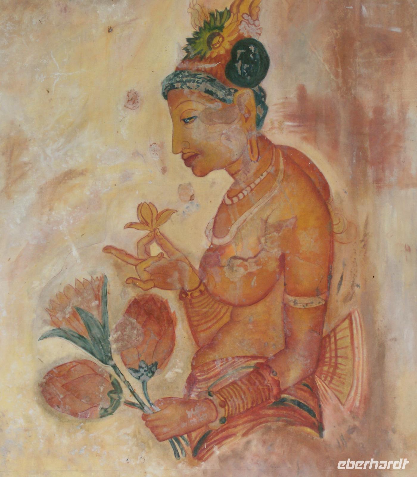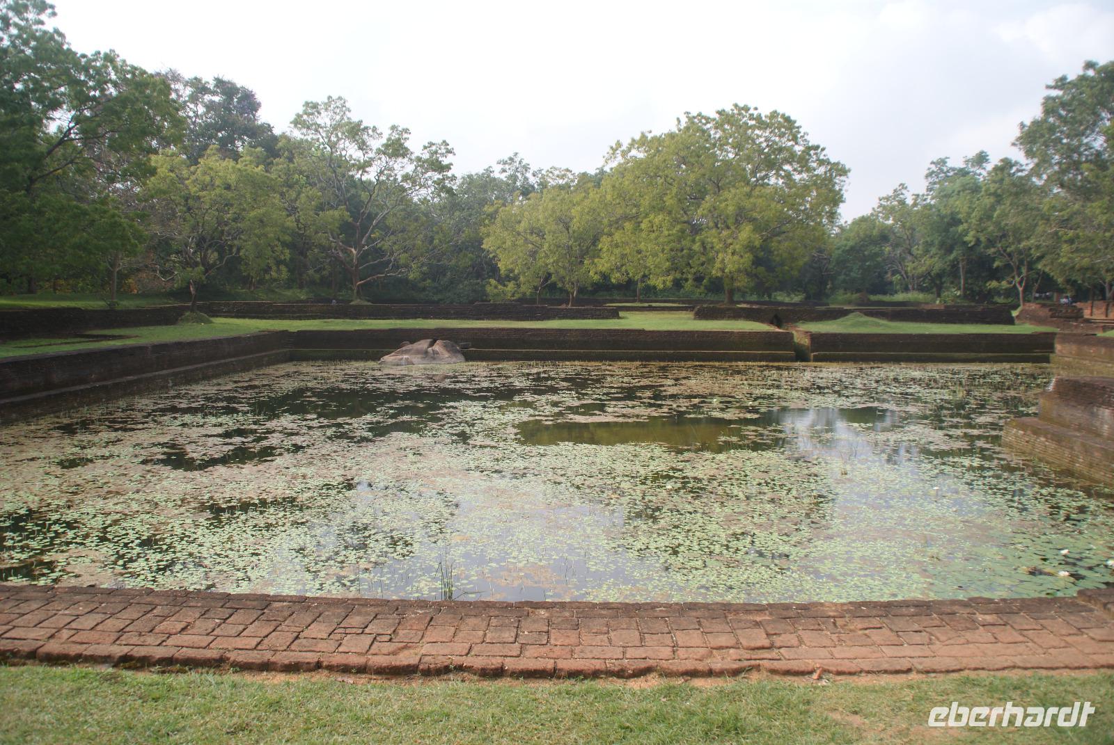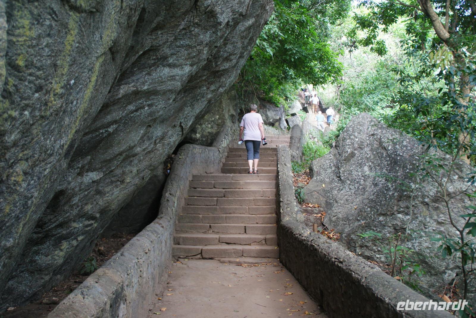 Der heutige Tag startet sportlich. Nach einem genüsslichen Frühstück fahren wir nach Sigiriya um den berühmten Löwenfelsen zu bezwingen. Leider sind wir mit dem Gedanken nicht alleine und so machen sich vor und hinter uns weitere Touristen auf den Weg. Wir bestaunen nach dem ersten etwas schweißtreibenden Aufstieg die bekannten Wolkenmädchen. 1500 Jahre alte Malereien finden wir noch sehr gut erhalten an einer Wand. Fotografieren dürfen wir leider nicht und so bleibt uns nur die Erinnerung. Weiter geht es zum Aufstieg des Plateaus und großes Kompliment an alle, die sich mit auf den Weg gemacht und es bis zum Ziel geschafft haben. Oben werden wir mit einem grandiosen Ausblick und einem angenehmen Wind belohnt. Nachdem wir alles in Ruhe genossen haben, geht es wieder hinunter ins Tal. Wir sind mittags froh über die Gelegenheit zum Hotel zurückzukehren, uns frisch zu machen, Kleidung zu wechseln und einen kleinen Snack zu genießen. Am Nachmittag geht es auf einen nah gelegenen See per Katamaran. Auf einer Insel angekommen zeigen uns zwei einheimische Damen, was es mit der Reisgewinnung auf sich hat. Wir dürfen auch Tee und die ein oder andere hausgemachte Köstlichkeit probieren. Anschließend erwarten uns zwei Ochsenkarren in denen wir Platz nehmen und diese uns auf urige Art und Weise durch die Natur befördern. Welch ein abwechslungsreicher Tag, so auch das Wetter, aber alles in allem haben wir viel Glück gehabt. Zurück im Hotel nutzt so mancher die freien Stunden um im wunderschönen Pool zu baden oder einfach mal die Eindrücke des Tages auf sich wirken zu lassen. Heute dürfen wir das Buffet stürmen, denn wir haben uns reichlich sportlich betätigt.
