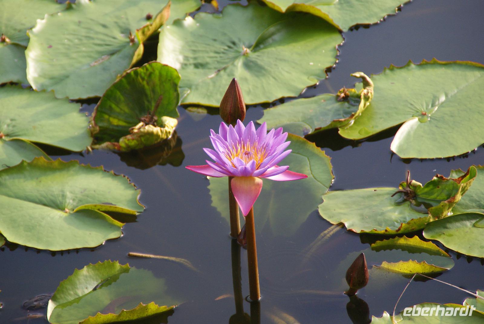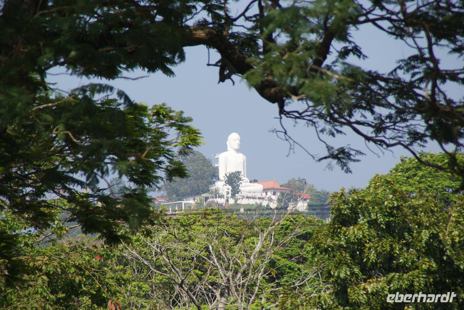 Heute Morgen verlassen wir Habarane nach einem ruhigen Frühstück und halten nochmals in Dambulla um den goldenen Buddha mit passendem Licht aufnehmen zu können. Wir sehen den Goldenen Tempel in ganzer Pracht und haben das Glück, dass sich zu der Zeit nur wenige Menschen aufhalten. Weiter geht die Fahrt nach Kandy. Unterwegs stoppen wir an einem Obststand und probieren die leckere Jackfrucht, die wir schon an so manchem Baum bestaunt haben. Spontan halten wir am Lichttempel um den Goldenen Buddha zu fotografieren, der beindruckend oben auf dem Berg vor uns thront. Als nächstes sehen wir ein Reisfeld, schauen uns die Rispen aus der Nähe an und kosten leckere Babybananen vom benachbarten Gemüsestand. Wilson zeigt uns das einheimische Gemüse, von dem uns so manches bekannt vor kommt und doch vieles fremd ist. Bald überqueren wir den Mahaweli Fluss, der 332 Km lang ist und die natürliche Grenze zwischen der Trocken-und Feuchtregion Sri Lankas bildet. Am späten Mittag erreichen wir Kandy, welches von 1592-1815 die Hauptstadt der Insel war bevor sie von Colombo ersetzt wurde. Wir finden ein idyllisches Restaurant für unseren Mittagsstopp und speisen mit Blick auf den Mahaweli Fluss, welch herrliche Oase der hektischen Großstadt. Spontan entscheiden wir mit Wilson, dass wir heute lieber zuerst den Botanischen Garten besuchen und so schlendern wir die nächsten Stunden gemütlich durch dieses wunderbare Stück Natur und bestaunen die vielen exotischen Pflanzen und Bäume, die hier aus der ganzen Welt zusammengetragen wurden. Natürlich darf abschließend das Orchideenhaus nicht fehlen und voller schöner Eindrücke des heutigen Tages checken wir in unser 5 Sterne Hotel Earl's Regency ein. Hier verbringen wir die nächsten beiden Nächte und staunen über das tolle Ambiente und genießen ein unglaubliches Abendessen mit unzähligen Köstlichkeiten.