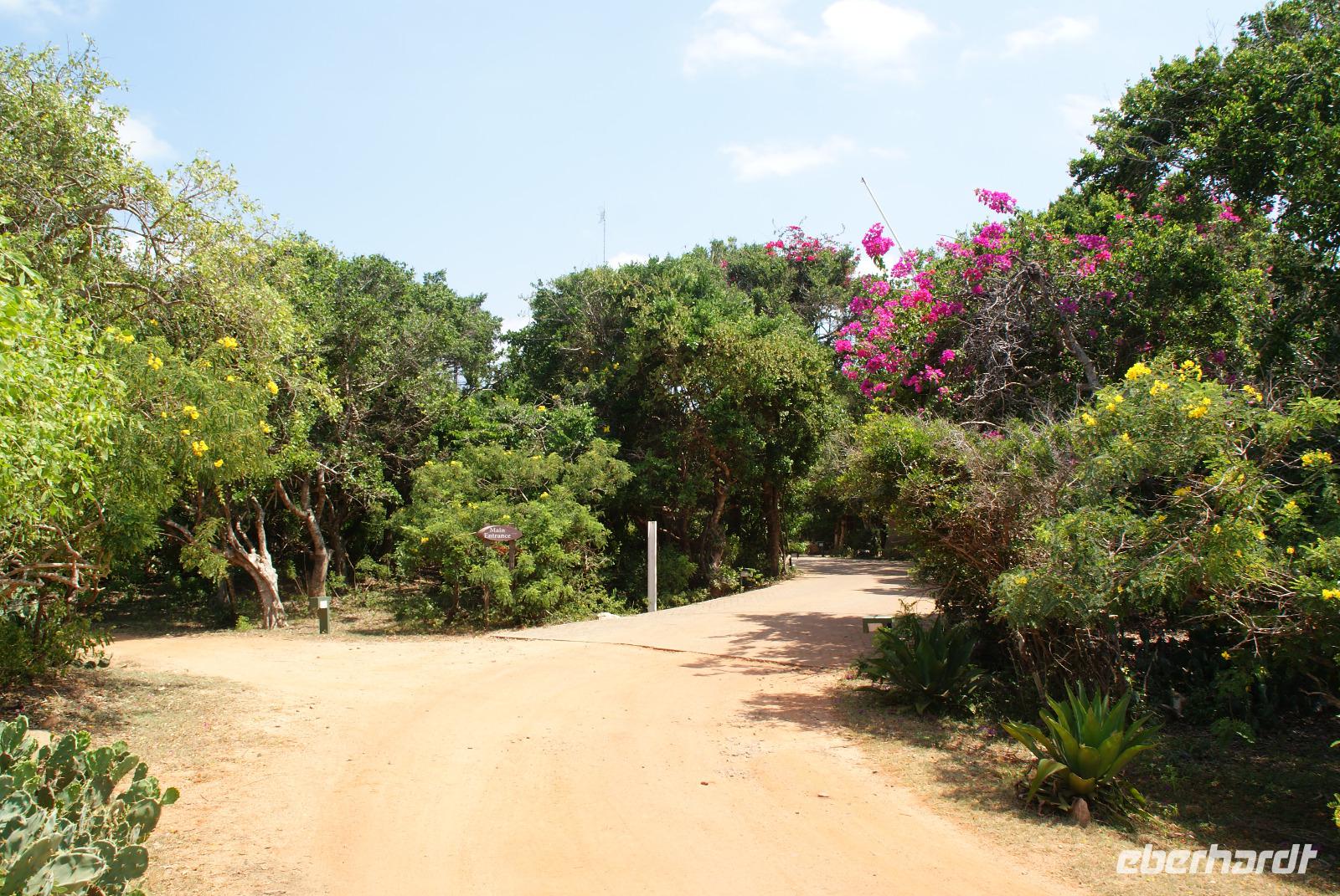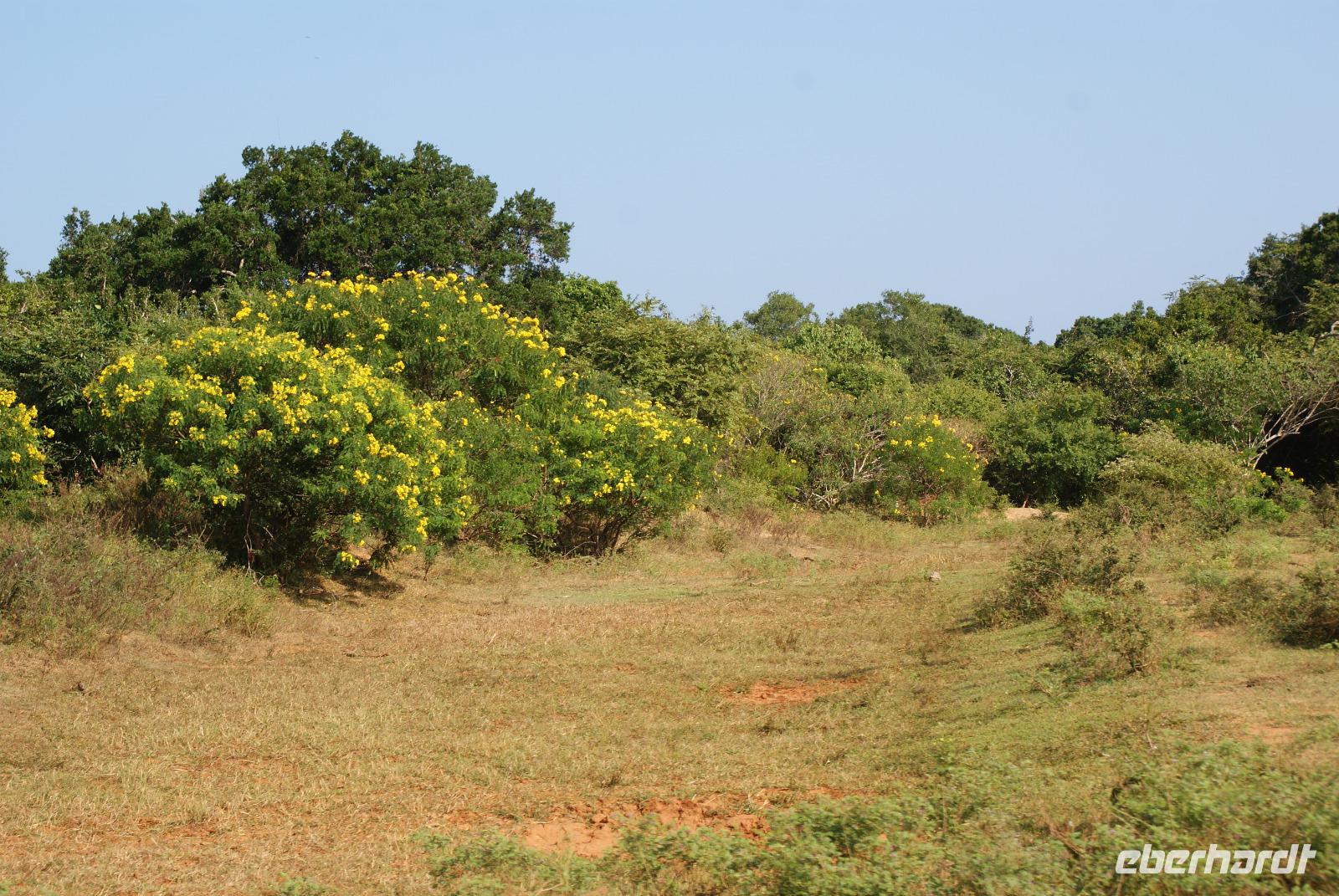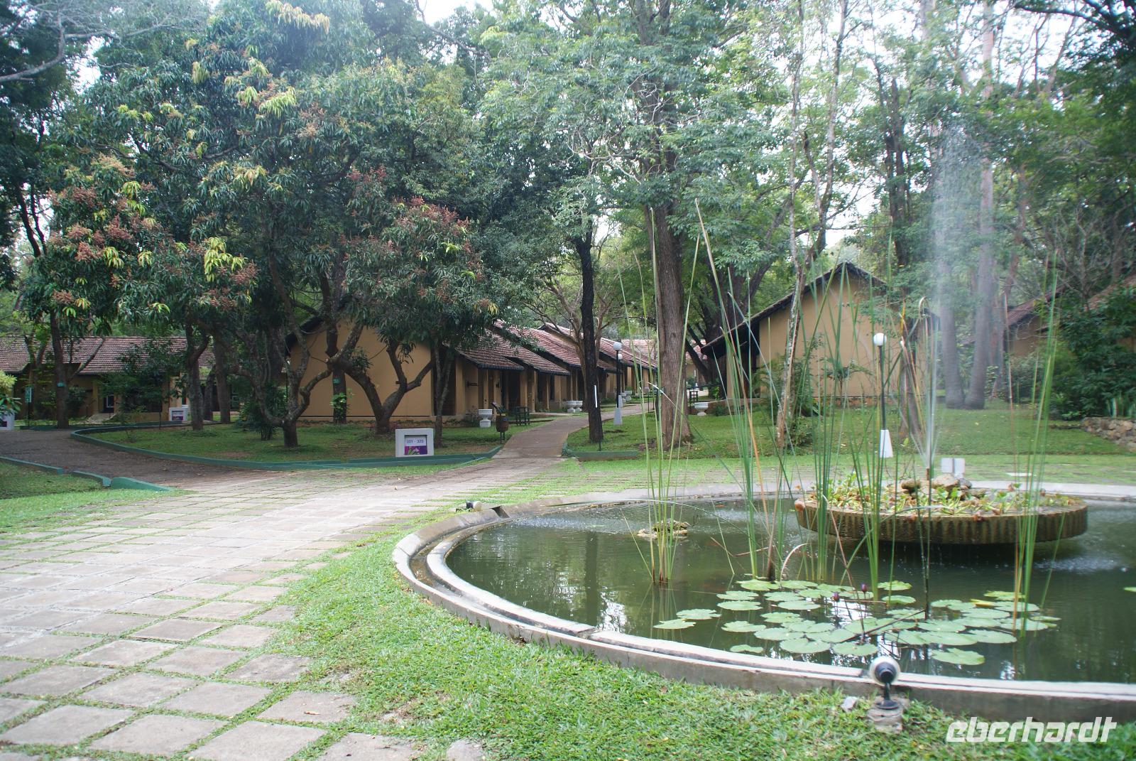 Beim gemeinsamen Frühstück sehen wir uns nach einer herrlich kühlen Nacht wieder. Es ist Bilderbuchwetter. Blauer, wolkenloser Himmel, strahlender Sonnenschein, was wollen wir mehr. Es erfolgt unser morgendliches Blumenritual seitens unseres einzigartigen Busfahrers und wir machen uns auf den Weg nach Ella. Auf der Strecke halten wir um den schönen See von Nuwara Eliya zu fotografieren, den wir gestern per Tuk Tuk umrundet haben. Weitere Fotostopps sollen folgen mit schönen Ausblicken in die wunderbare Natur und den imposanten Hindutempel Sita Amman Kovil, zu dem jährlich hunderttausende Hindus pilgern. Bevor wir Ella erreichen, decken wir uns in Bandarawela im Mlesna Tea Shop ein und eine gute Tasse Tee darf hier natürlich auch nicht fehlen. Punkt 12 Uhr erreichen wir Ella und starten unsere Wanderung zum Little Adams Peak. Entlang der schönen Teeplantagen staunen wir über die schöne Bergwelt, die uns umrahmt, das alles bei Kaiserwetter-haben wir ein Glück. Wunderschöne Bilder entstehen, nicht zuletzt von der Teepflückerin, die für Fotos posiert und der wir sehr gerne ein Trinkgeld dafür geben. Ein Teil unserer Gruppe schafft es bis zum Gipfel und wir genießen die tolle Atmosphäre hoch oben angekommen. Auf dem Rückweg kaufen wir noch etwas von dem liebevoll aus Schoten selbstgemachtem Schmuck am Wegesrand und kehren anschließend in ein nettes Restaurant mit toller Terrasse zum Mittagssnack ein. Nachmittags begeben wir uns wieder ins Tiefland und nehmen die letzte Etappe unserer Tagesfahrt bis zum Cinnamon Wild Hotel auf uns, welches direkt an den bekannten Yala Nationalpark grenzt. Da wir uns schon im Naturschutzgebiet mit Tierwelt befinden, werden wir von und zu unseren Zimmern von Wächtern begleitet. Ein Abendessen in herrlich ruhiger Atmosphäre erfolgt und den Klängen der Natur lauschend schlummern wir schnell in einen wohlverdienten Schlaf ein.