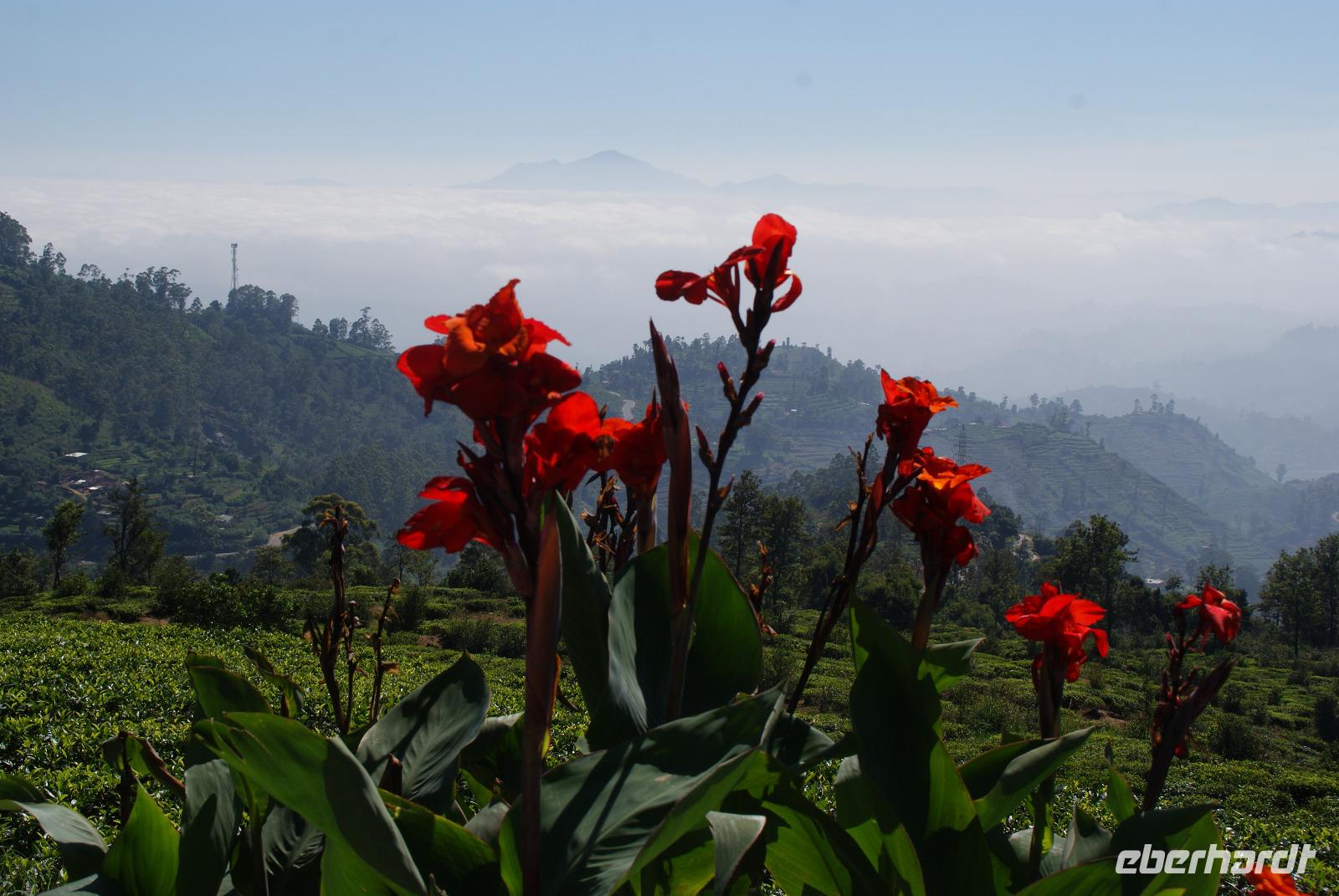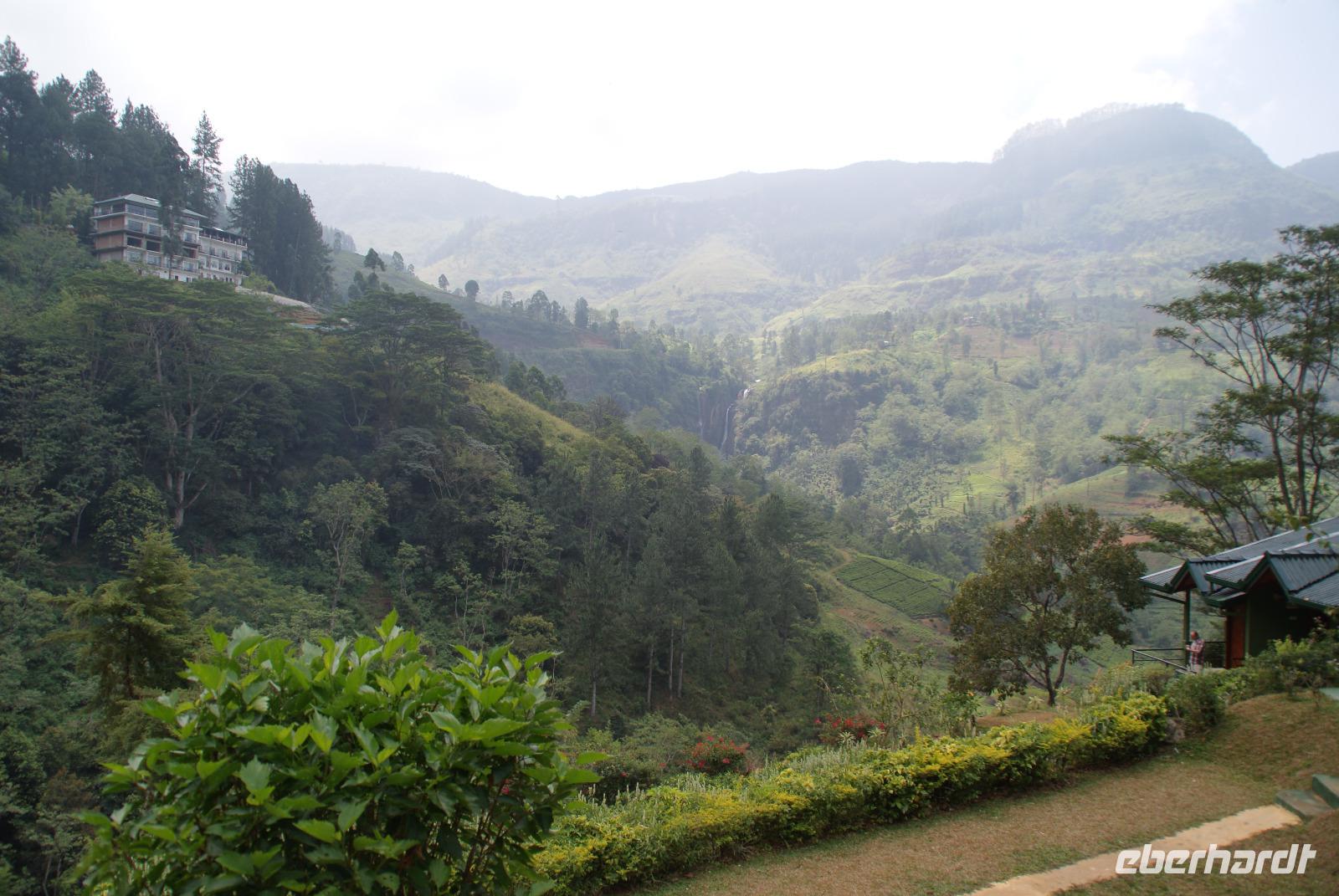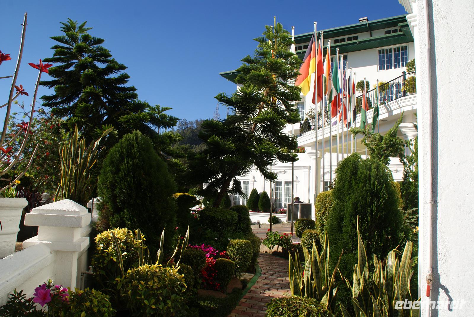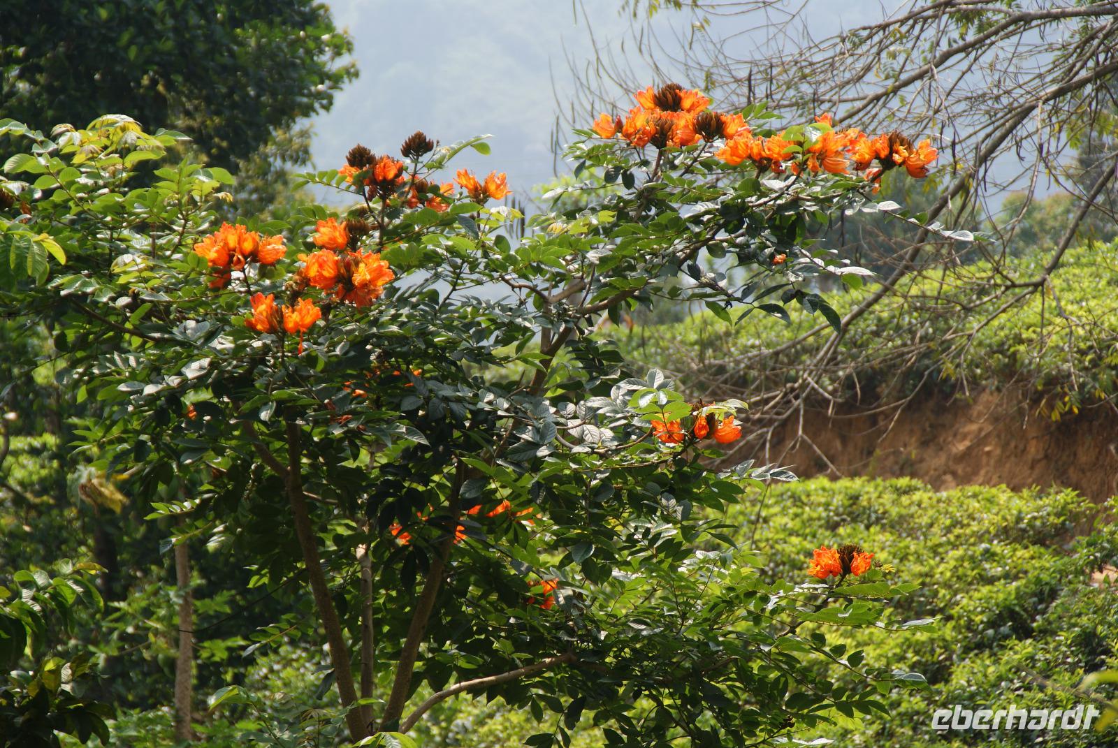 Ein letztes fürstliches Frühstück in wunderbarem Ambiente und nach dem Auschecken geht die Reise weiter für uns. Natürlich erhalten wir auch heute den täglichen Blumengruß unseres Fahrers Chandara und machen uns auf zu einem schönen Aussichtspunkt, von wo wir nochmals einen schönen Blick auf Kandy und den Zahntempel samt See haben. Hier greifen auch die Händler zu und so manches T-Shirt wechselt den Besitzer. Auf der Fahrt erzählt uns Wilson von den Besonderheiten der Mönche, deren Lebens-und Essgewohnheiten und wir erfahren, dass diese nur zwei Mal am Tag essen, Frühstück und Mittagessen, danach gibt es nur noch Getränke. Einige sammeln Almosen und werden von der einheimischen Bevölkerung mit Essensgaben versorgt. Wir verlassen die Stadt Richtung Hochland und es geht immer höher hinaus. Schöne und sehr gepflegte Teeplantagen ziehen an uns vorbei und erneut zeigt Sri Lanka ein neues Gesicht. Mittags kehren wir in ein idyllisches Lokal an den Ramboda Wasserfällen ein und genießen die Ruhe, denn wir sind vor den anderen Touristen gruppen dort. Gut gestärkt halten wir kurz darauf für einen kleinen Spaziergang durch eine Teeplantage und nun sind wir die Attraktion für die einheimischen Teepflücker, die sich über die andersartigen Besucher freuen. Informativ geht es weiter auf der Blue Field Teeplantage und ein einheimischer Führer erklärt uns die Teegewinnung anschaulich in der Fabrik. Natürlich dürfen wir diesen auch bei einer Tasse Tee kosten. Nachmittags dann Ankunft in Nuwara Eliya auf 1860m Höhe und es ist schon merklich kühler. Wir schlendern durch die Geschäftsstraße und die Markthalle, wo Wilson uns Obst und Gemüse näher bringt. Auf einer Anhöhe sehen wir noch das alte Postamt von 1903. Als Überraschung und auf Einladung von Eberhardt TRAVEL erfolgt nun eine ca. 40 minütige Tuk Tuk Fahrt rund um den schönen See von Nuwara Eliya und mit unseren besonderen Gefährten fahren wir abschließend in unserem Übernachtungshotel vor. Wieder ein erlebnisreicher Tag findet seinen Ausklang bei einem schmackhaften Abendessen im Araliya Hotel.
