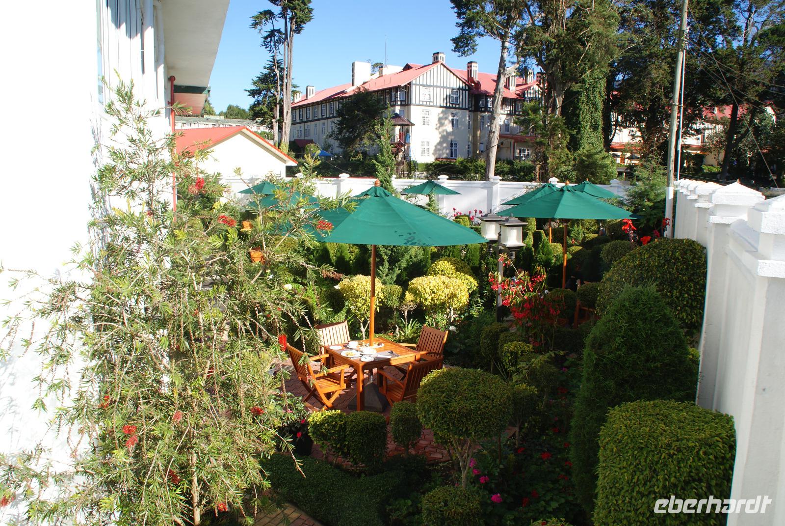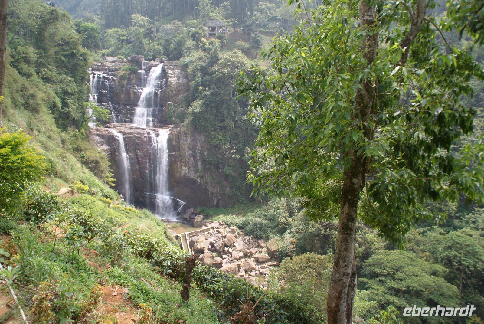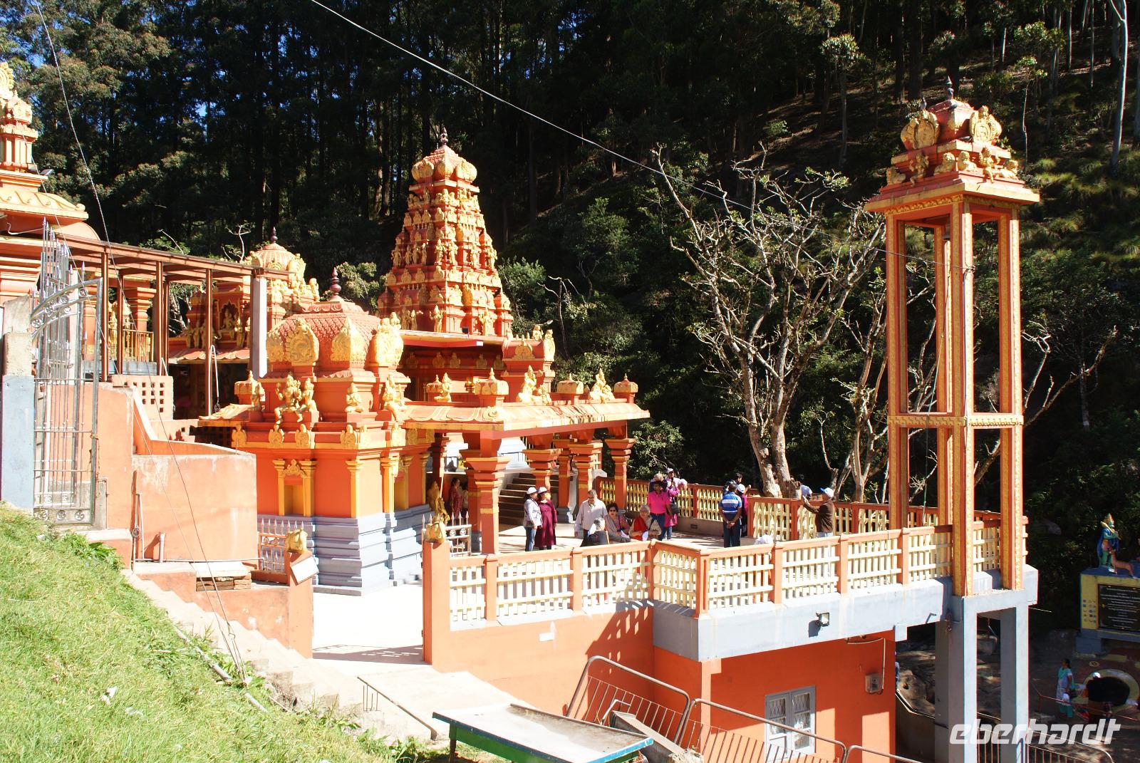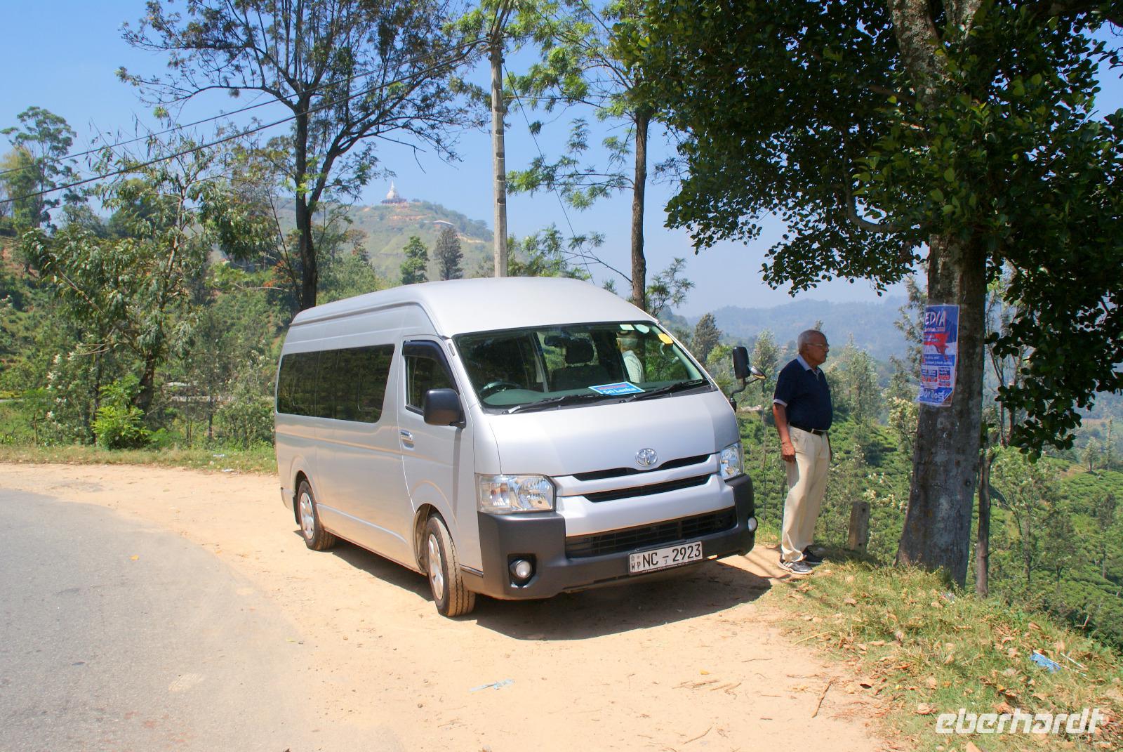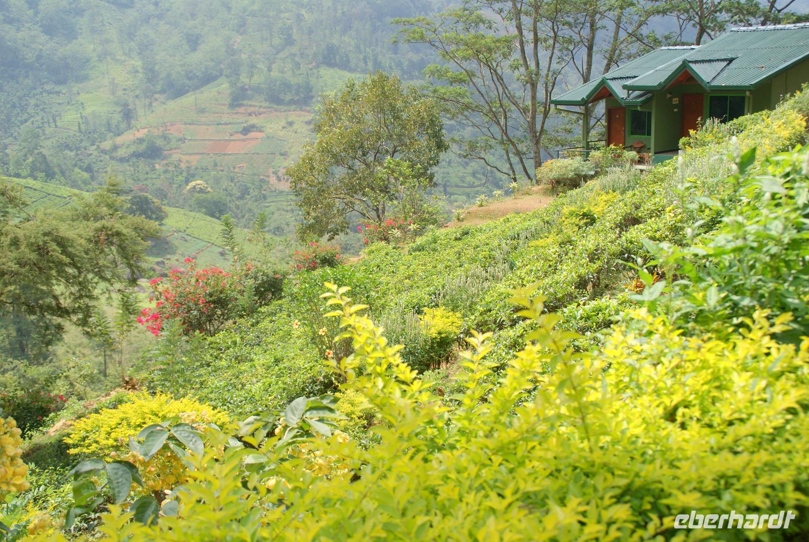 Ein letztes fürstliches Frühstück in wunderbarem Ambiente und nach dem Auschecken geht die Reise weiter für uns. Natürlich erhalten wir auch heute den täglichen Blumengruß unseres Fahrers Chandara und machen uns auf zu einem schönen Aussichtspunkt, von wo wir nochmals einen schönen Blick auf Kandy und den Zahntempel samt See haben. Hier greifen auch die Händler zu und so manches T-Shirt wechselt den Besitzer. Auf der Fahrt erzählt uns Wilson von den Besonderheiten der Mönche, deren Lebens-und Essgewohnheiten und wir erfahren, dass diese nur zwei Mal am Tag essen, Frühstück und Mittagessen, danach gibt es nur noch Getränke. Einige sammeln Almosen und werden von der einheimischen Bevölkerung mit Essensgaben versorgt. Wir verlassen die Stadt Richtung Hochland und es geht immer höher hinaus. Schöne und sehr gepflegte Teeplantagen ziehen an uns vorbei und erneut zeigt Sri Lanka ein neues Gesicht. Mittags kehren wir in ein idyllisches Lokal an den Ramboda Wasserfällen ein und genießen die Ruhe, denn wir sind vor den anderen Touristen gruppen dort. Gut gestärkt halten wir kurz darauf für einen kleinen Spaziergang durch eine Teeplantage und nun sind wir die Attraktion für die einheimischen Teepflücker, die sich über die andersartigen Besucher freuen. Informativ geht es weiter auf der Blue Field Teeplantage und ein einheimischer Führer erklärt uns die Teegewinnung anschaulich in der Fabrik. Natürlich dürfen wir diesen auch bei einer Tasse Tee kosten. Nachmittags dann Ankunft in Nuwara Eliya auf 1860m Höhe und es ist schon merklich kühler. Wir schlendern durch die Geschäftsstraße und die Markthalle, wo Wilson uns Obst und Gemüse näher bringt. Auf einer Anhöhe sehen wir noch das alte Postamt von 1903. Als Überraschung und auf Einladung von Eberhardt TRAVEL erfolgt nun eine ca. 40 minütige Tuk Tuk Fahrt rund um den schönen See von Nuwara Eliya und mit unseren besonderen Gefährten fahren wir abschließend in unserem Übernachtungshotel vor. Wieder ein erlebnisreicher Tag findet seinen Ausklang bei einem schmackhaften Abendessen im Araliya Hotel.