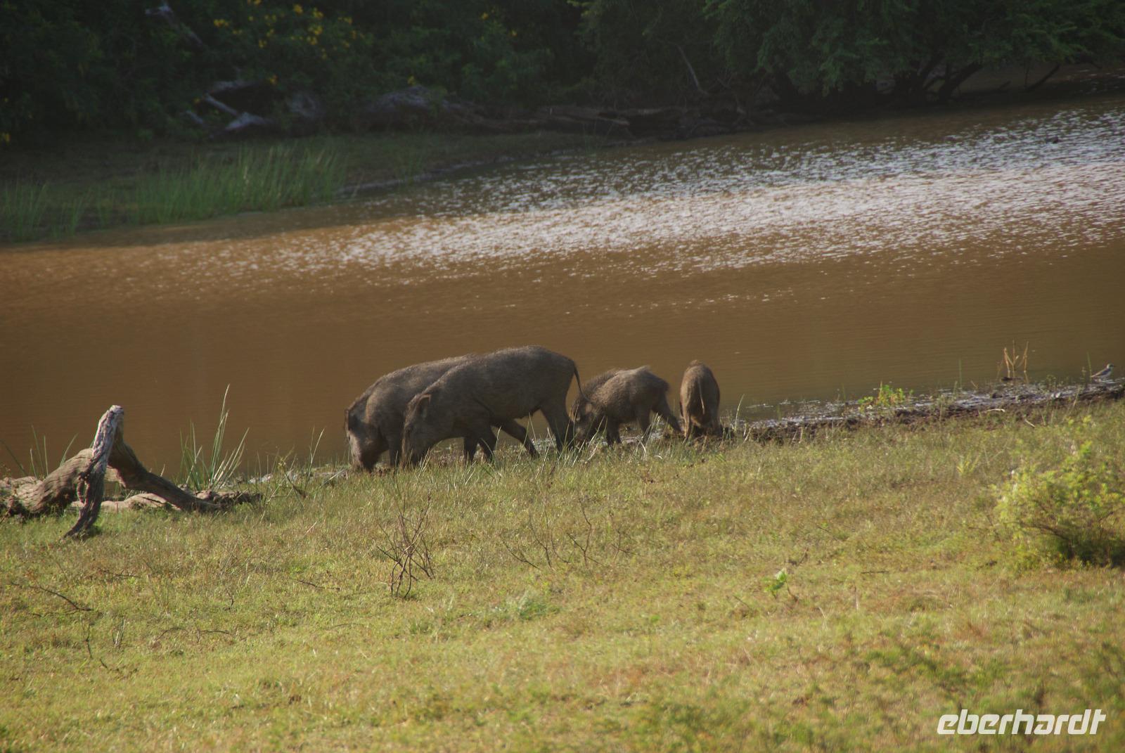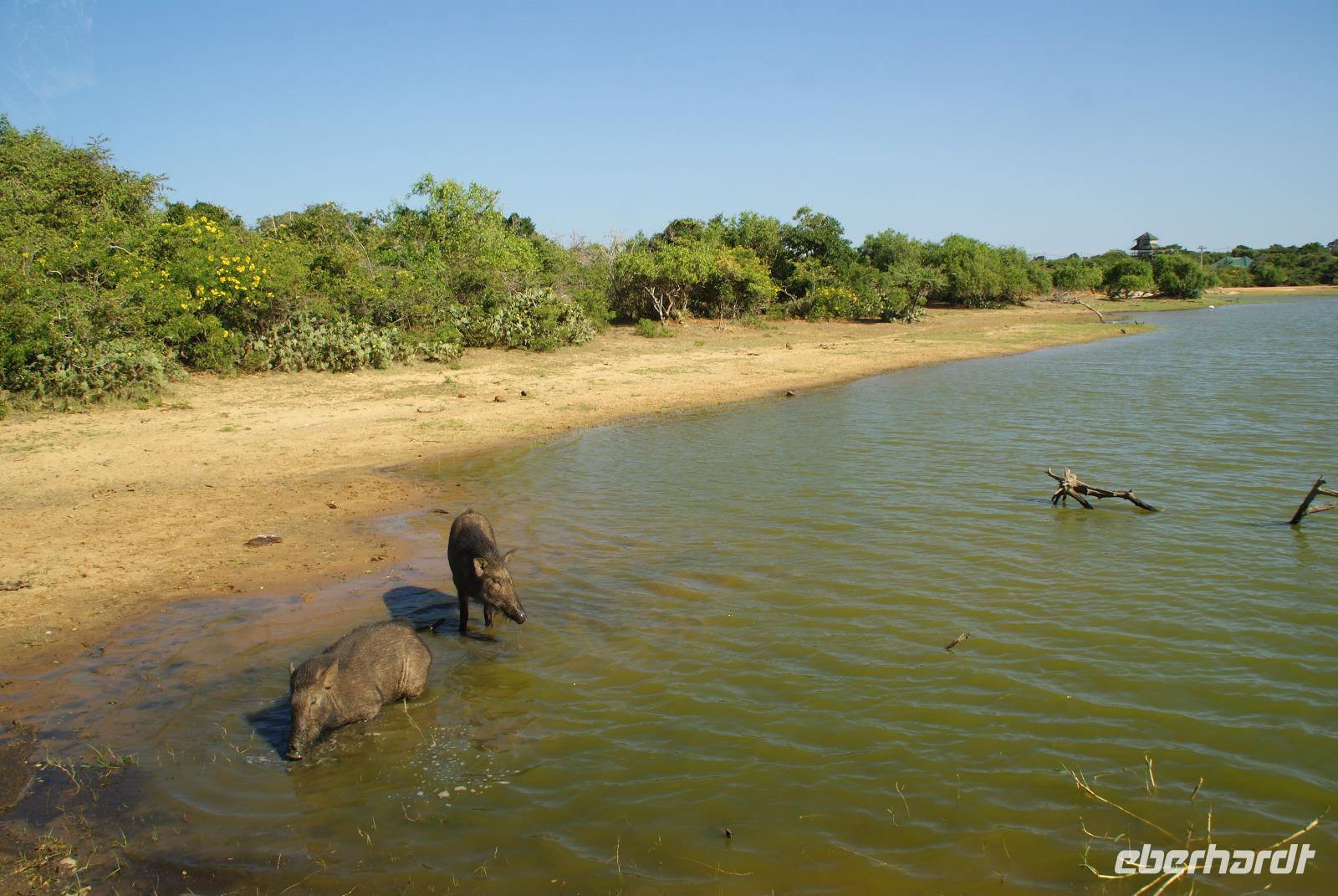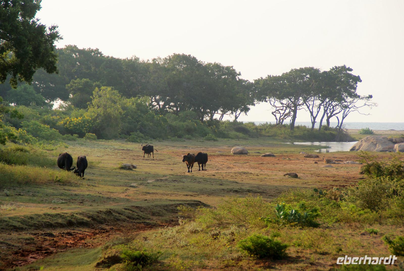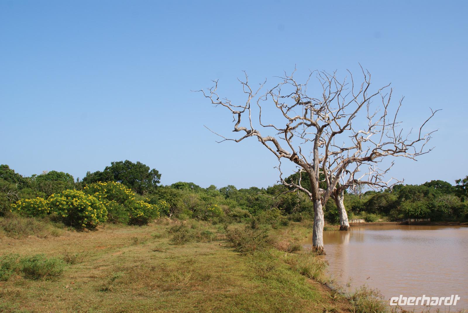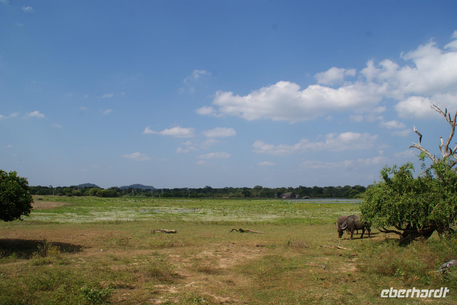 Heute Morgen stehen wir bereits vor den Hühnern auf und begeben uns um 05.45 Uhr auf unsere Morgen-Safari. Leider haben diese Idee auch zig andere Jeeps am Eingang des Parks und so müssen wir uns erst mal geduldig anstellen um die Registrierung abzuschließen. Am Vormittag bekommen wir bereits einige Tiere zu sehen, zu den Buntstörche, Ibise, Büffel, Bienenfresser, Pelikane, Stelzenläufer, Löffelreiher, Mungos, Krokodile und Wildschweine zählen. Der Yala Park ist sehr weitläufig, misst 98.000 Hektar und ist in fünf Abschnitte eingeteilt. Von diesen sind nur Abschnitt eins und zwei für Safaris freigegeben, der Rest ist Naturschutzgebiet für die Tiere und den Forschern vorbehalten. Zum Frühstück kehren wir zurück in unser sehr gut gelegenes Hotel und da der Park neuerdings mittags schließt, legen wir ebenfalls eine Safari Pause ein. So nehmen manche ein kühles Bad im wunderschönen Pool oder lassen einfach die Seele baumeln. Am frühen Nachmittag ziehen wir erneut los und werden für unsere Geduld belohnt. Wir sehen insgesamt 5 Elefanten, sogar Mutter mit Jungtier, welche wutschnaubend den Jeep vor uns „vertrötet", der ihr wohl vorab den Weg versperrt hat. Wir genießen die Wege abseits der großen Straßen, auf denen wir alleine unterwegs und ohne weitere Jeeps sind...herrliche Natur, Farben und Eindrücke lassen wir auf uns wirken. Den letzten Elefant sehen wir unmittelbar vor unserem Hotel, wie er gemütlich im See steht und Lotusblumen verspeist. Idyllischer geht es nicht mehr. Eine leckere Jubiläumstorte und frischer Kaffee runden den Nachmittag ab. Hier nutzen wir die Gelegenheit, um uns schon mal bei unserem örtlichen Reiseleiter Wilson und Busfahrer Chandara zu bedanken und ein gesammeltes Trinkgeld zu überreichen. Unsere Reise ist zwar noch nicht vorbei, aber unsere Wege trennen sich. Ein Teil der Gruppe fliegt auf die Malediven, der andere Teil zieht weiter die Küste entlang bis zu dem gebuchten Strandhotel. Abends erfolgt ein letztes Abendessen in kompletter Runde und wir erfreuen uns über ein gemütliches Beisammensein in diesem wunderschönen Hotel direkt am Yala Park.