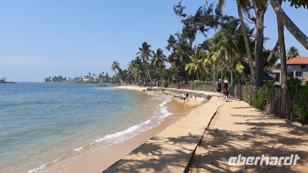 Am frühen Morgen wird ein Teil unserer kleinen Reisegruppe abgeholt, zum Flughafen Colombo gebracht und erreicht am Nachmittag das Urlaubsziel der nächsten Tag, die Malediven. Wir wünschen einen ganz tollen Urlaub und viel Muße, die schönen gemeinsamen Tage in Sri Lanka Revue passieren zu lassen. Der andere Teil unserer Reisegruppe macht sich nach einem gemütlichen Frühstück auf an der Küste entlang, um am Abend den Badeort Beruwela zu erreichen. Wir legen diverse Fotostopps ein, sehen die bekannten Stelzenfischer am Strand und halten an einem sehr modernen Leuchtturm, der heute als Museum fungiert. Einen schönen Kaffeestopp machen wir vormittags an einem wunderbaren Strand, von dem wir am liebsten jetzt schon nicht mehr weg möchten. Kurz darauf halten wir am imposanten Devinuwara Tempel, indem zwei Tempelelefanten zu sehen sind, von denen einer ein genüssliches Bad nimmt und ein schönes Fotomotiv bietet. Unsere Mittagspause legen wir in einem malerischen Lokal am Meer ein, genießen das tolle Essen, den Ausblick und die angenehme Meeresbrise. Nachmittags erwartet uns das Galle Fort der Küstenstadt Galle bei bestem Wetter und endlosen Fotokulissen. Wir spazieren gemütlich durch diesen so besonderen Ort und lassen die Architektur, die Vielfalt der Religionen, Moscheen, Kirchen und Kolonialbauten auf uns wirken. Abends haben wir dann unser Ziel erreicht und checken im Strandhotel Earl's Reef ein. Nach einem erlebnisreichen Tag genießen wir das Abendessen in verkleinerter Runde und vermissen unsere Mitstreiter, die sich nun auf den schönen Malediven befinden.